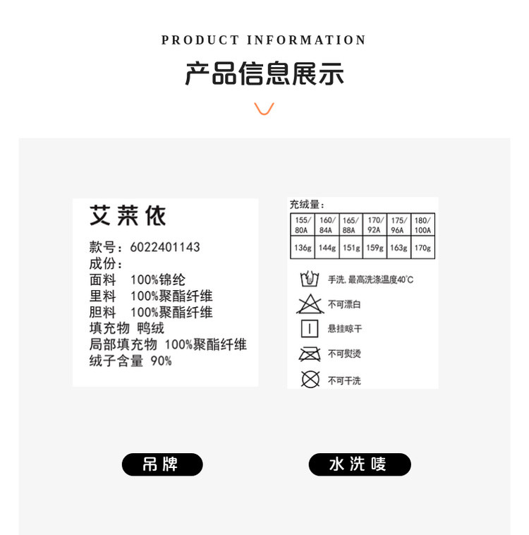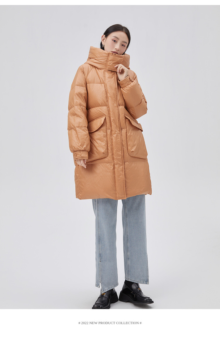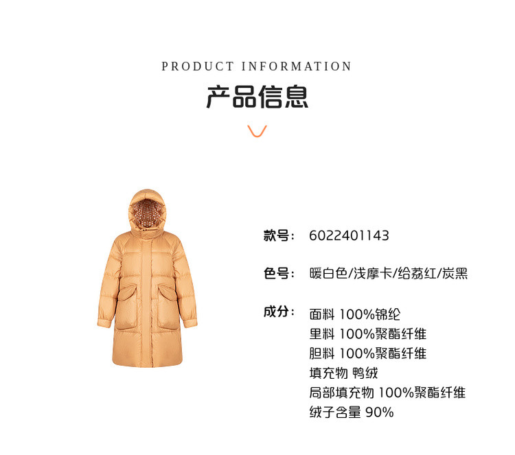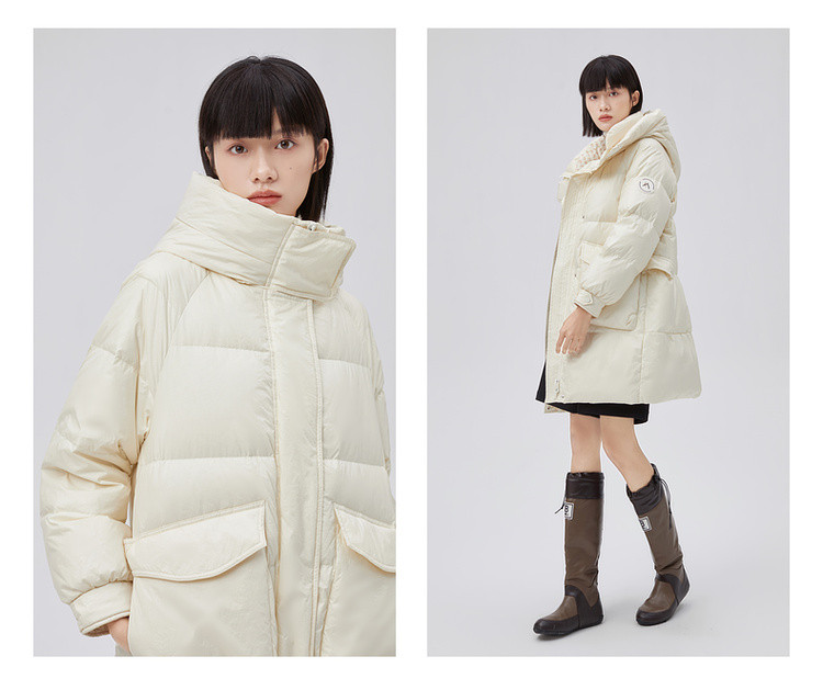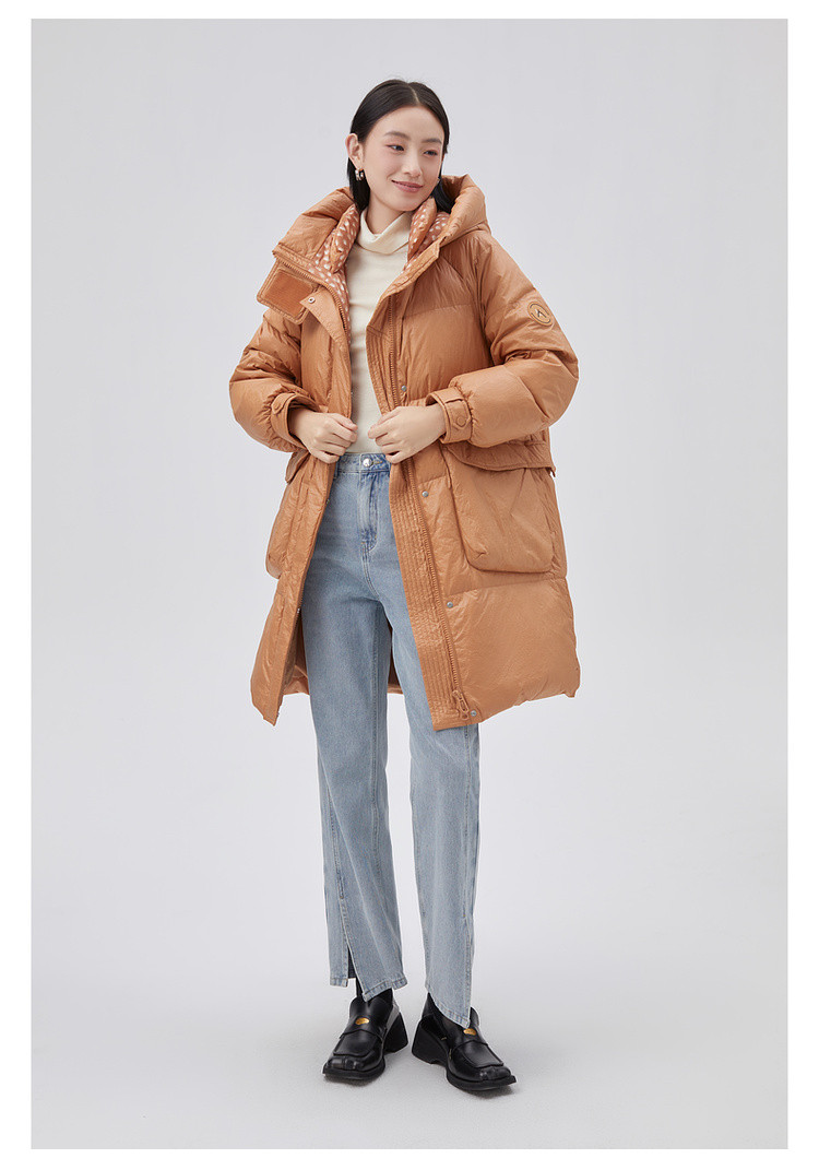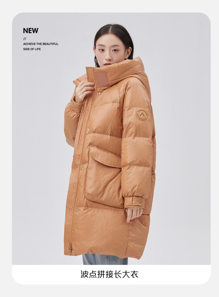 商品名称:【专柜同款】90鸭绒派克服工装外套羽绒服女中长款 235606