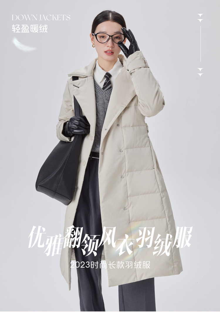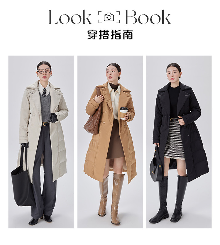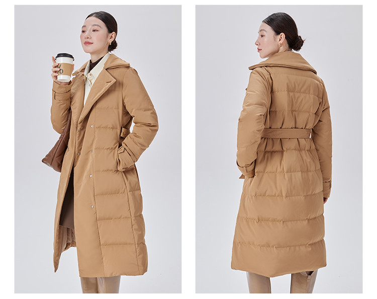 羽绒服女中长款风衣式翻领系带收腰保暖秋冬外套女 354966