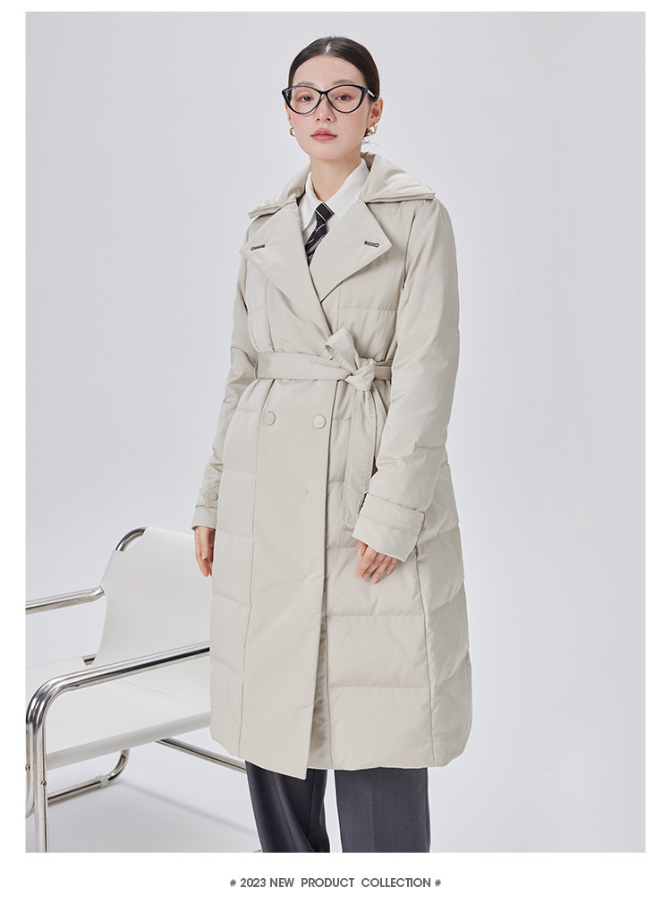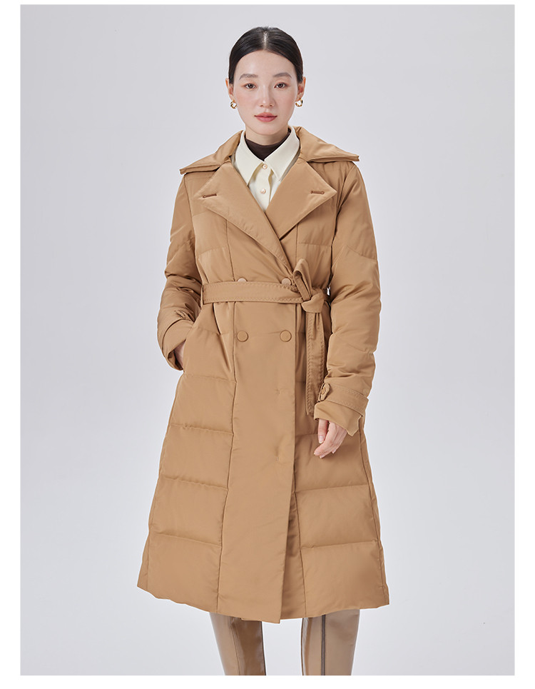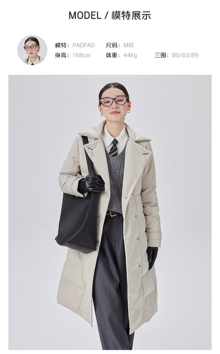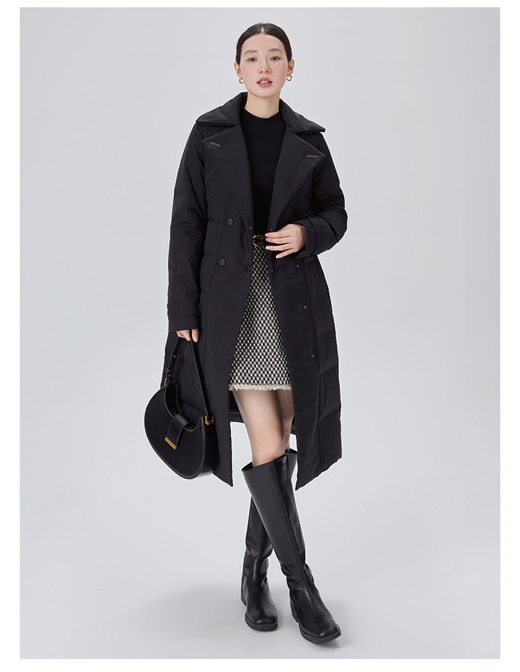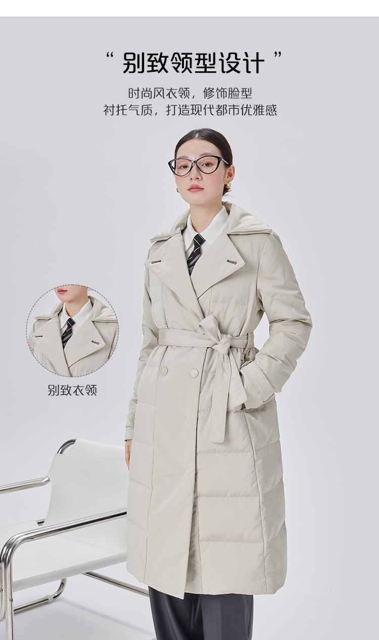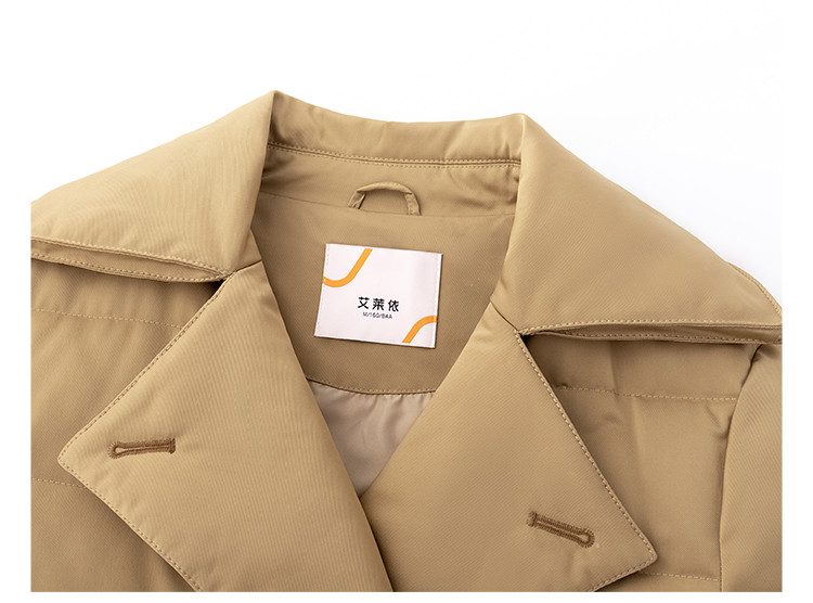 商品名称:羽绒服女中长款风衣式翻领系带收腰保暖秋冬外套女 354966