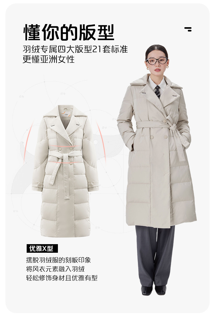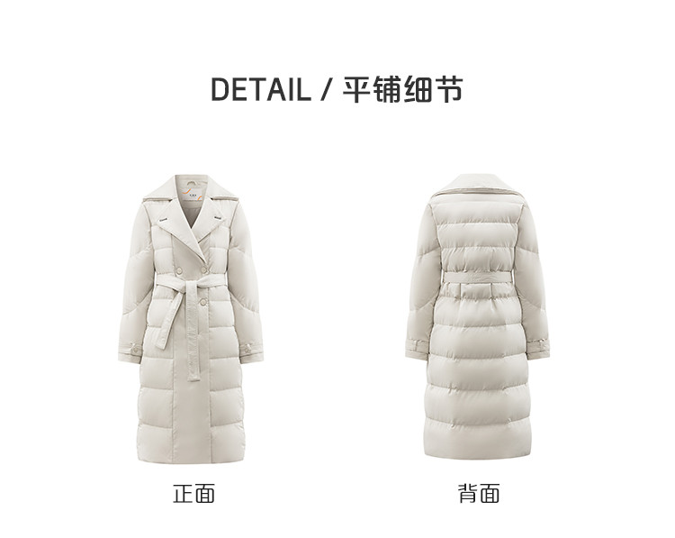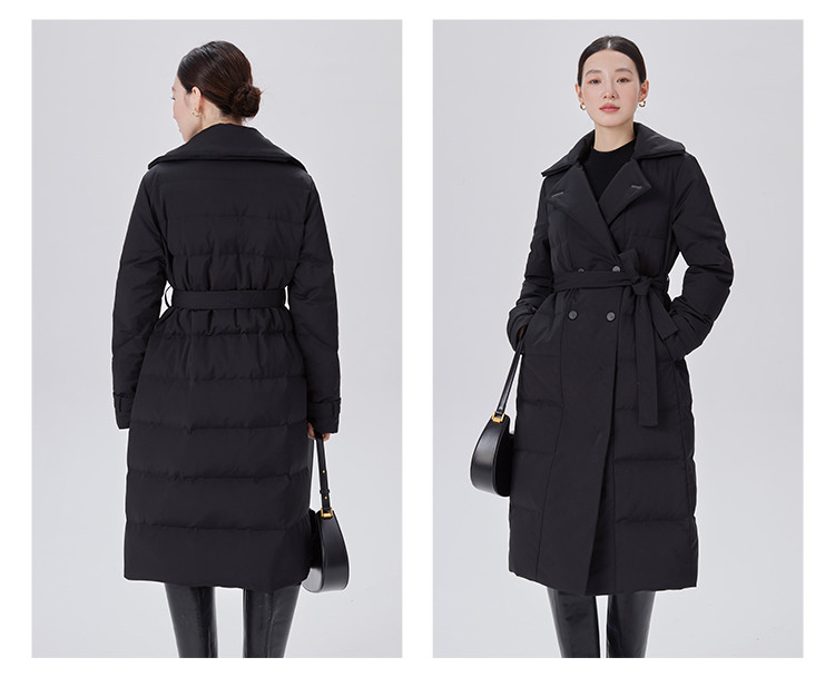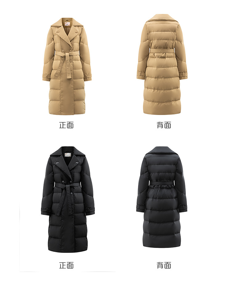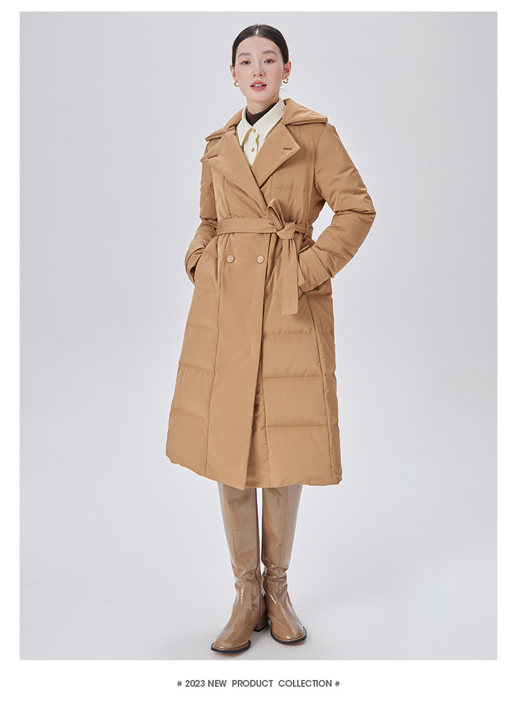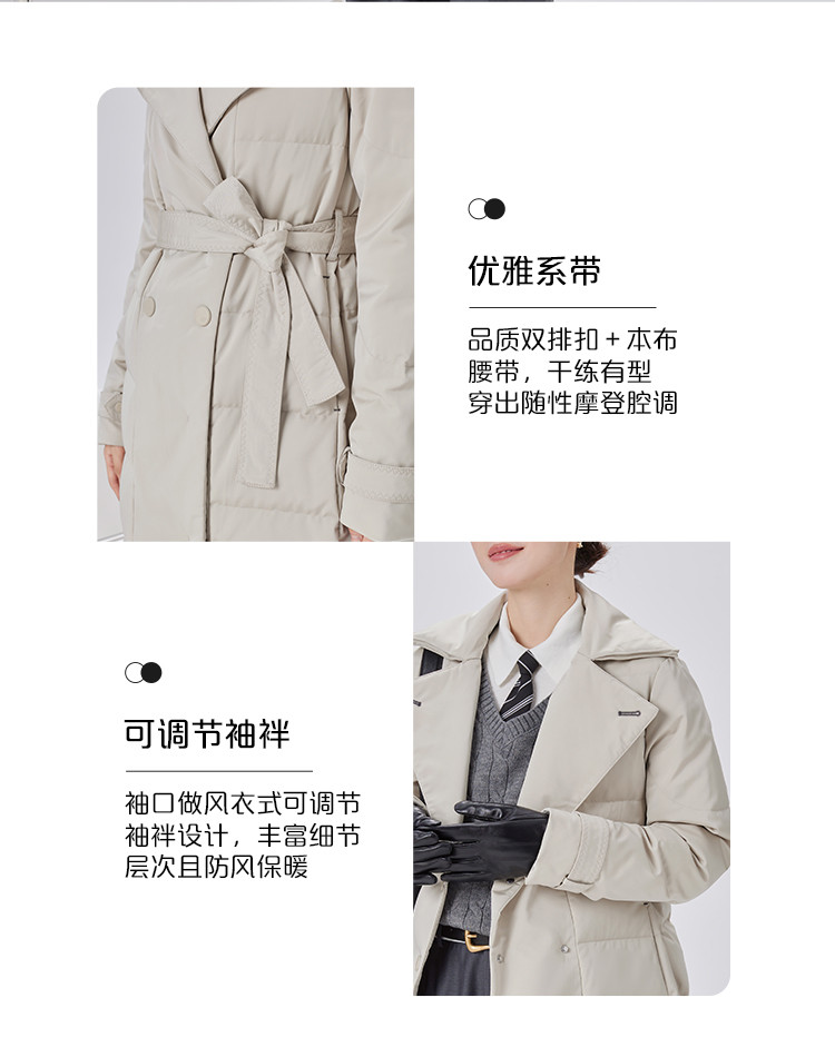 商品名称:羽绒服女中长款风衣式翻领系带收腰保暖秋冬外套女 354966