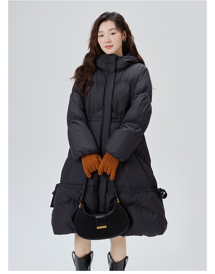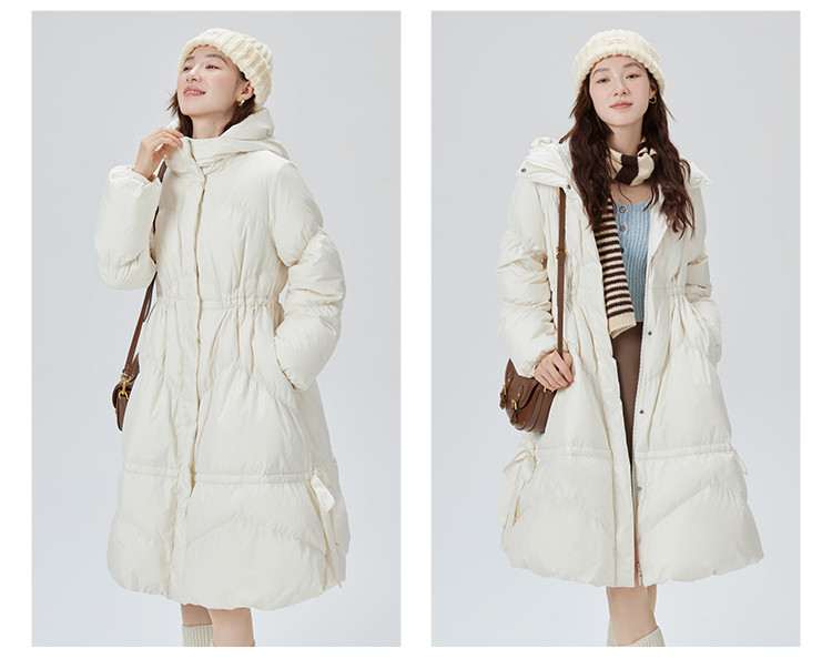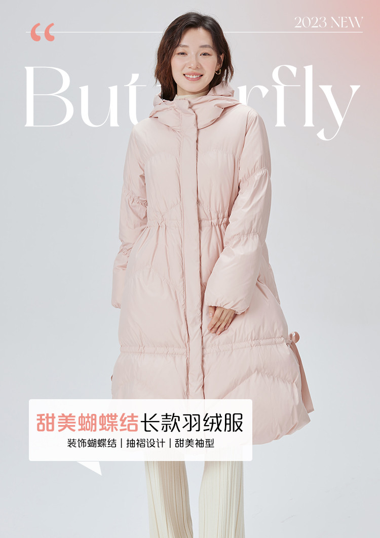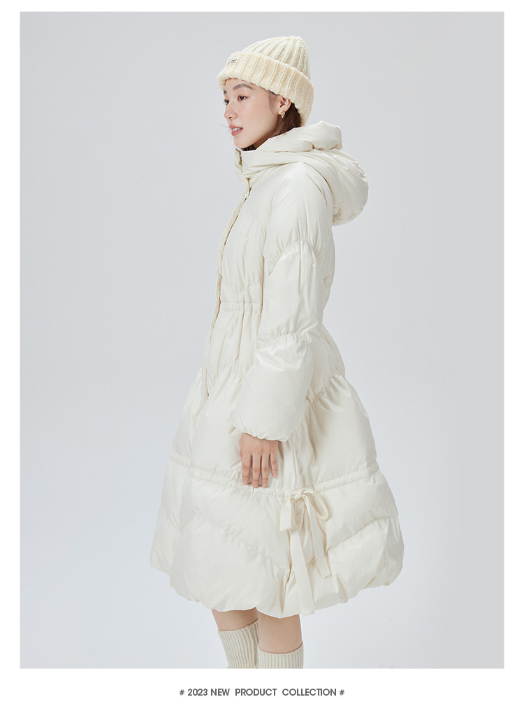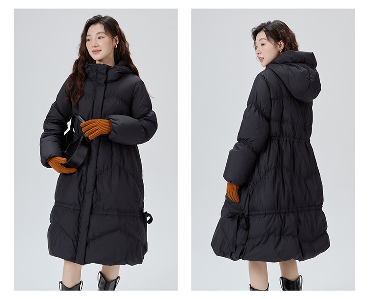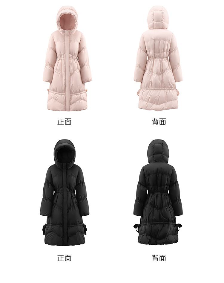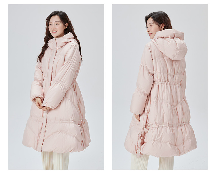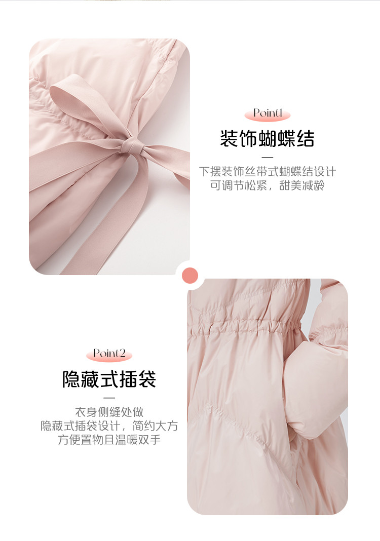 商品名称:蝴蝶结甜美羽绒服女反季特卖过膝长款收腰连帽鸭绒秋冬外套女 558486