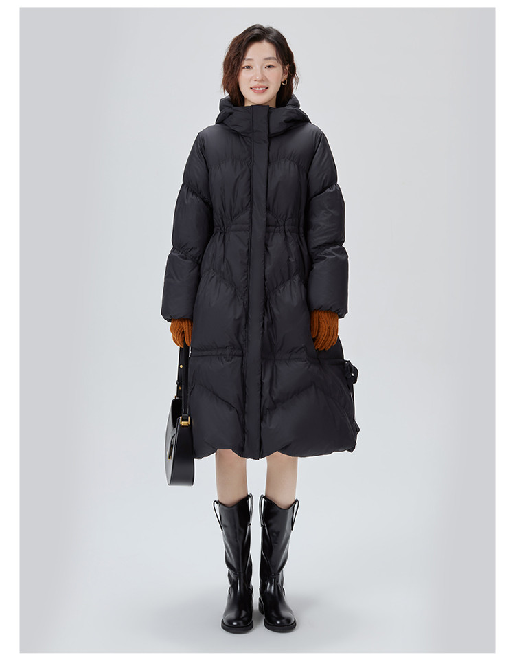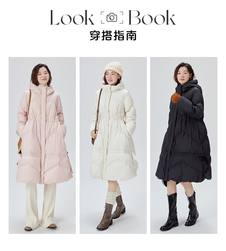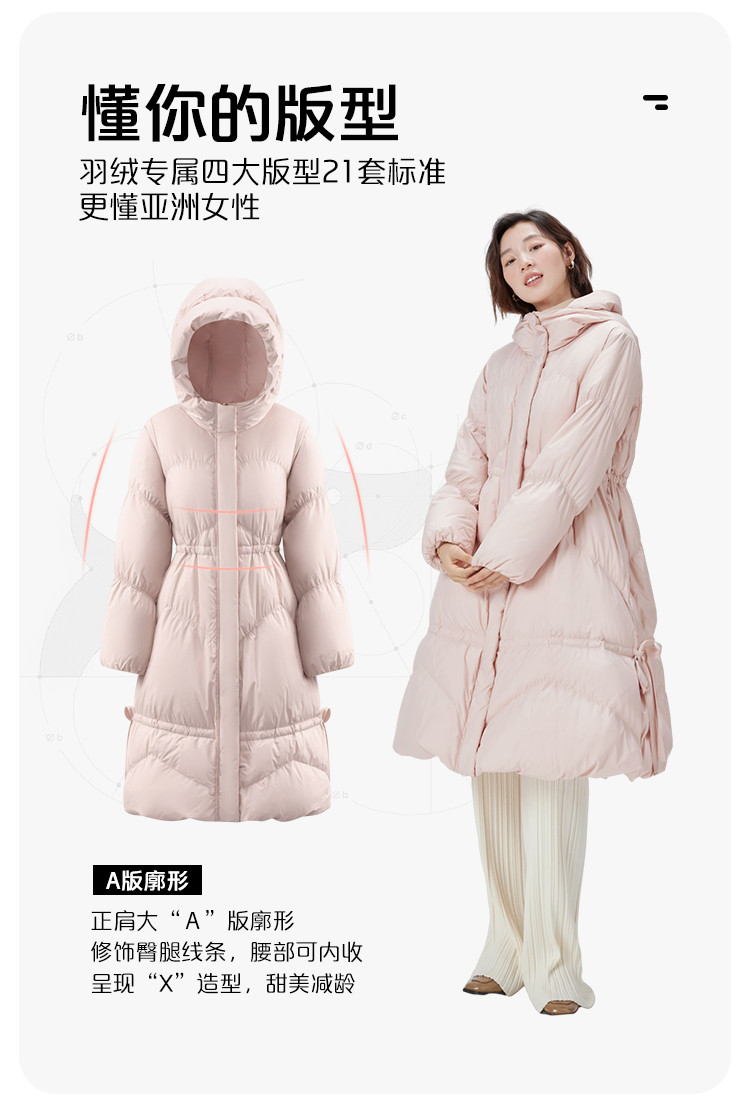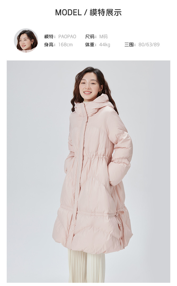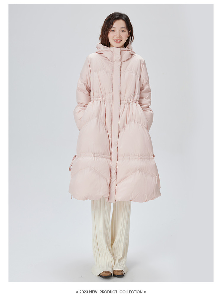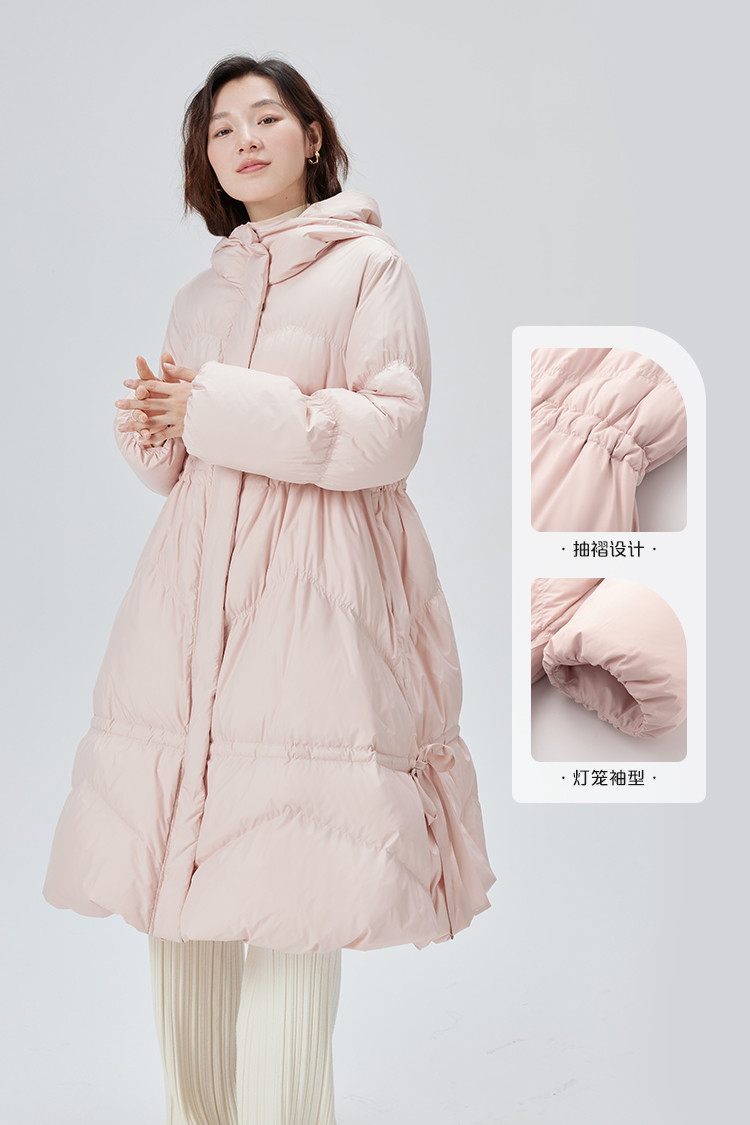 商品名称:蝴蝶结甜美羽绒服女反季特卖过膝长款收腰连帽鸭绒秋冬外套女 558486