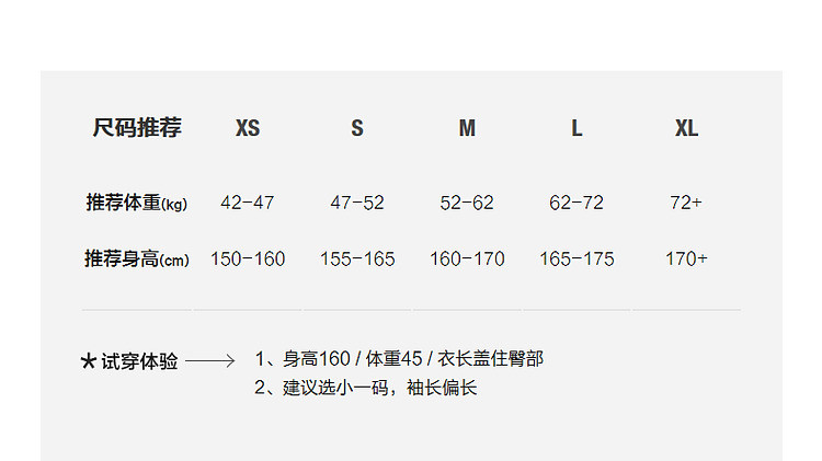 | 尺码 | 衣长(cm) | 肩宽(cm) | 腰围(cm) | 袖长(cm) | 领围(cm) | 胸围(cm) | 下摆围(cm) | 号型 |