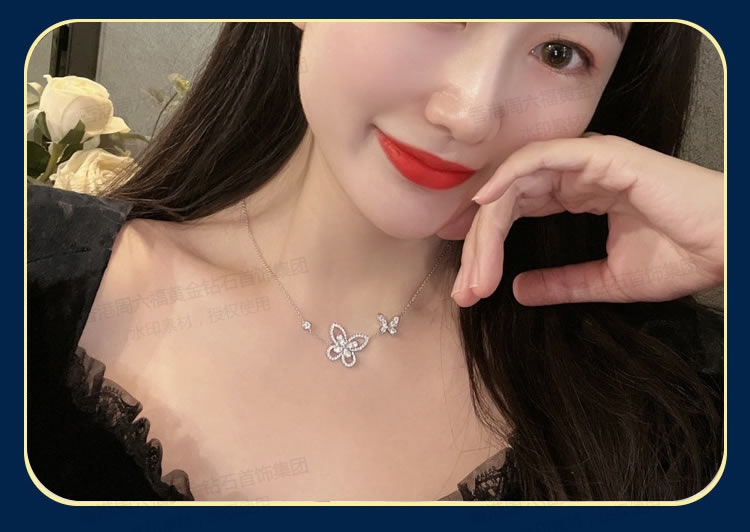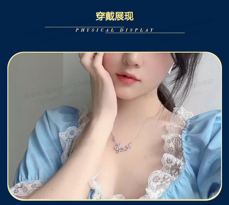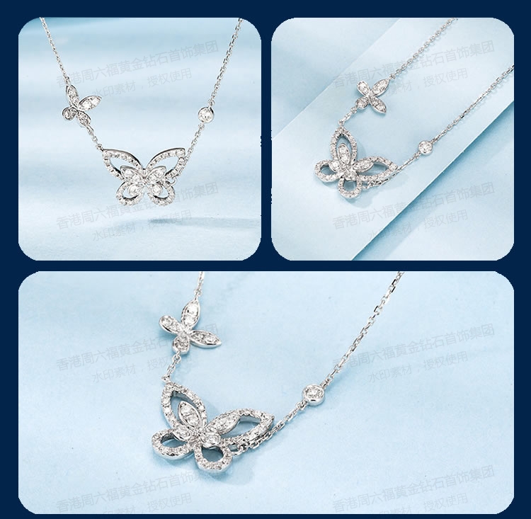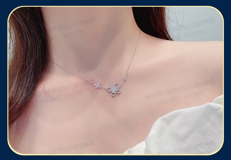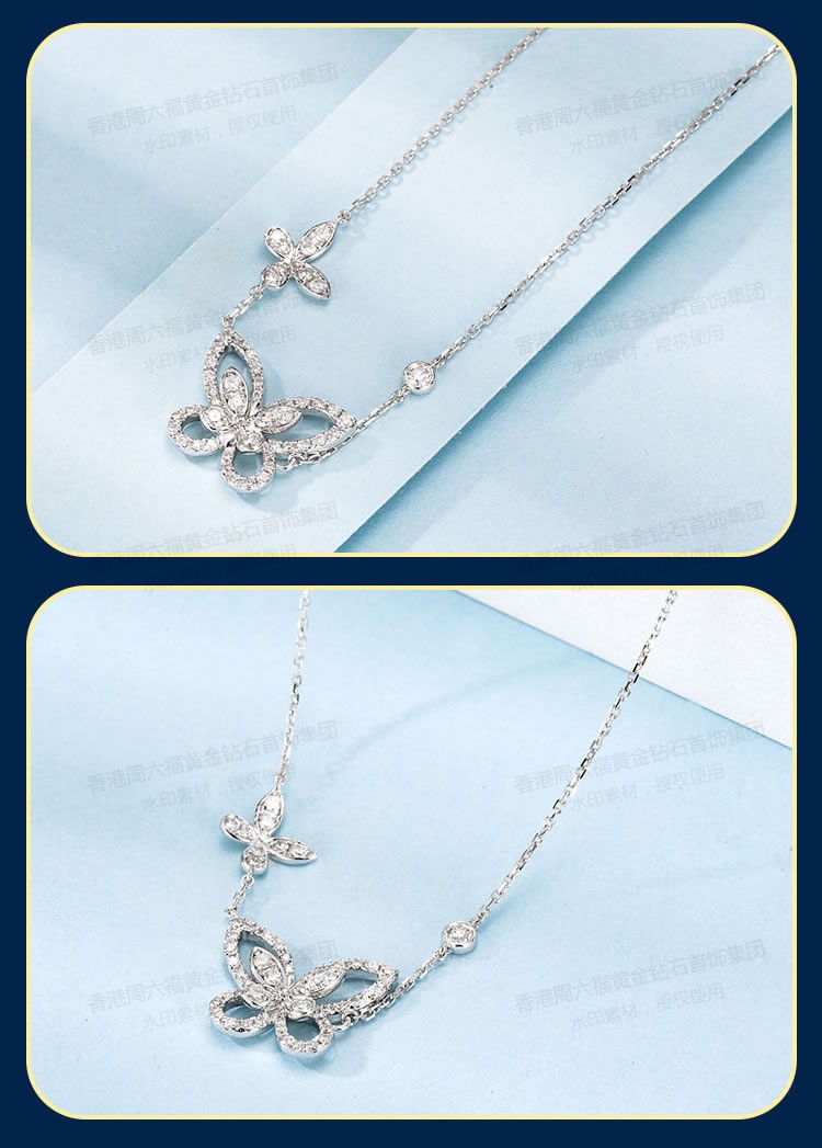 香港周六福铂金钻石蝴蝶项链(2只)(钛铂金、锆钻)
