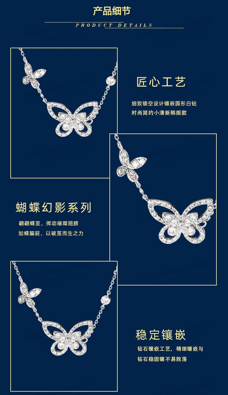 商品名称:香港周六福铂金钻石蝴蝶项链(2只)(钛铂金、锆钻)