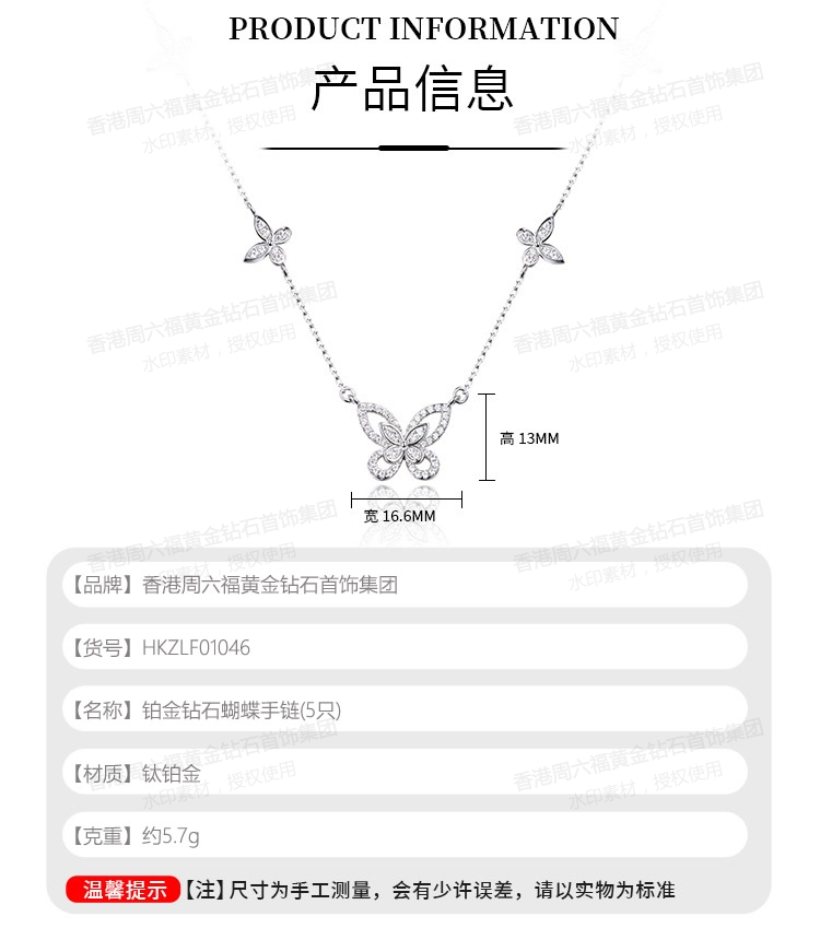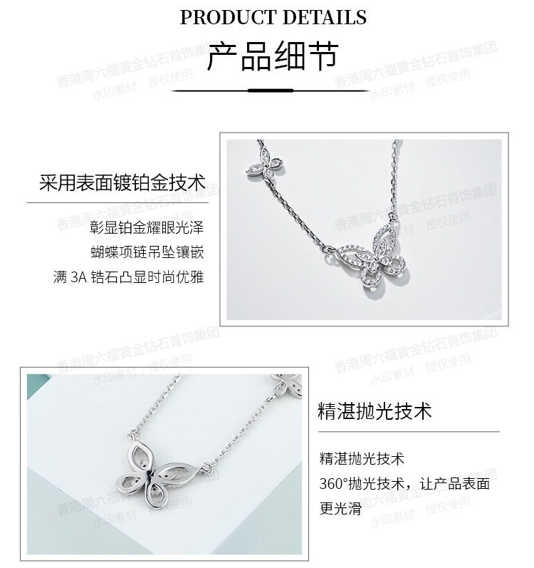 商品名称:香港周六福铂金钻石蝴蝶项链(5只)(钛铂金、锆钻)