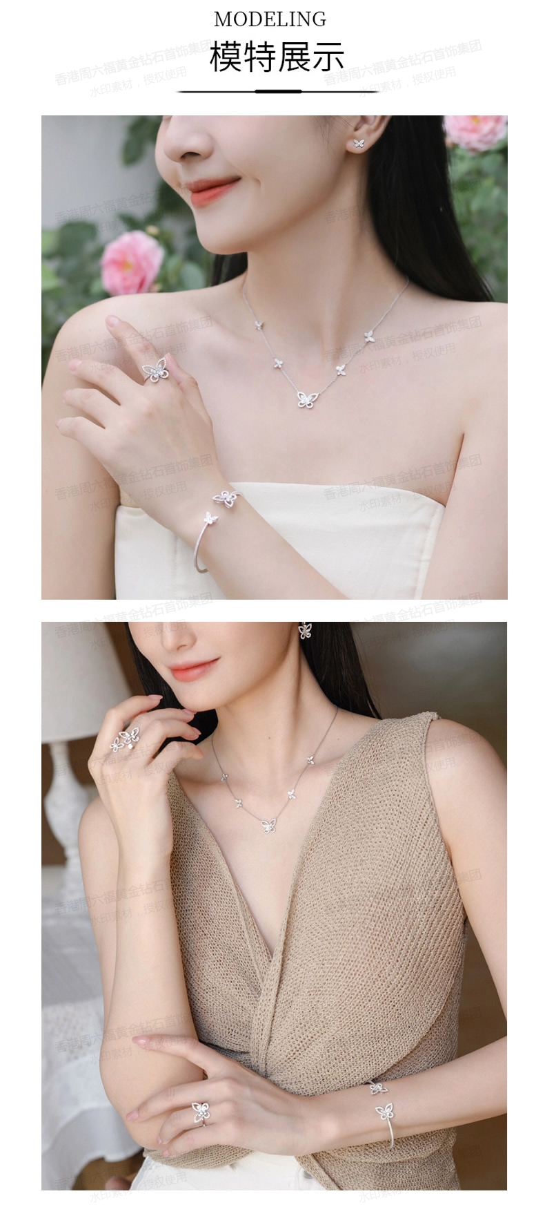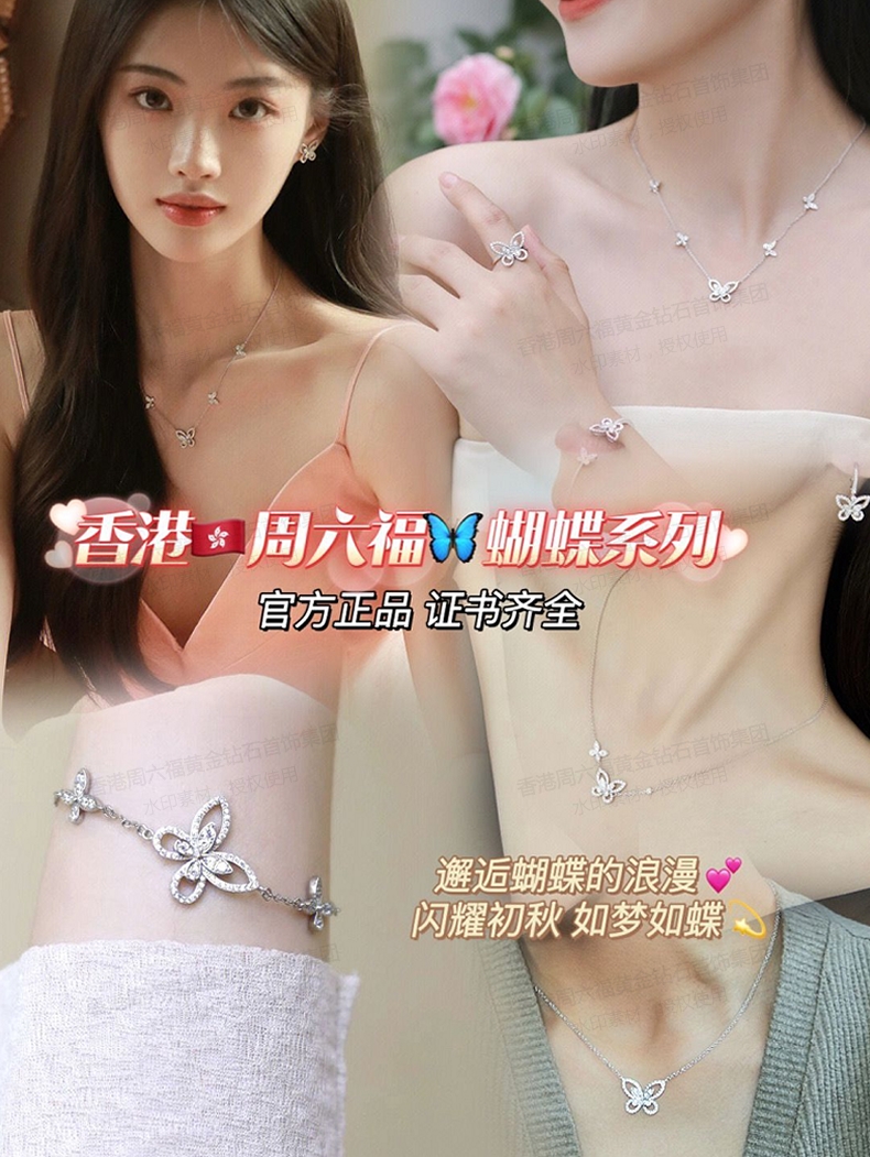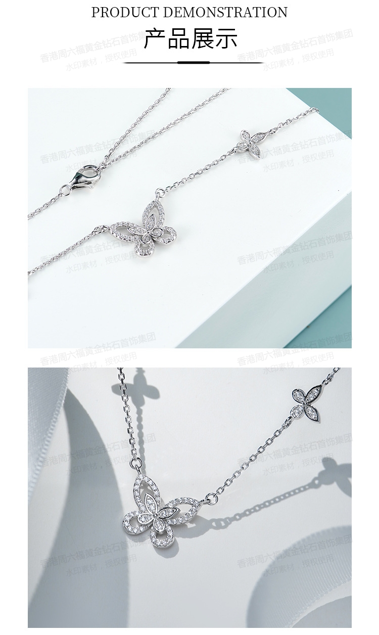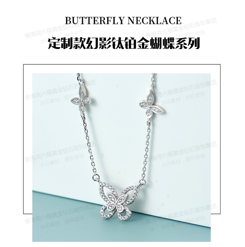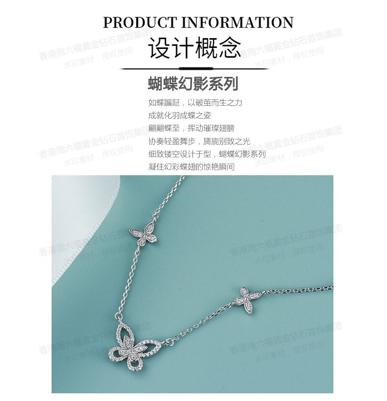 香港周六福铂金钻石蝴蝶项链(5只)(钛铂金、锆钻)