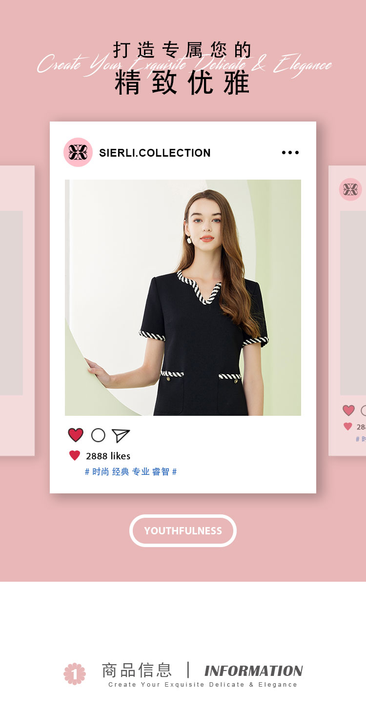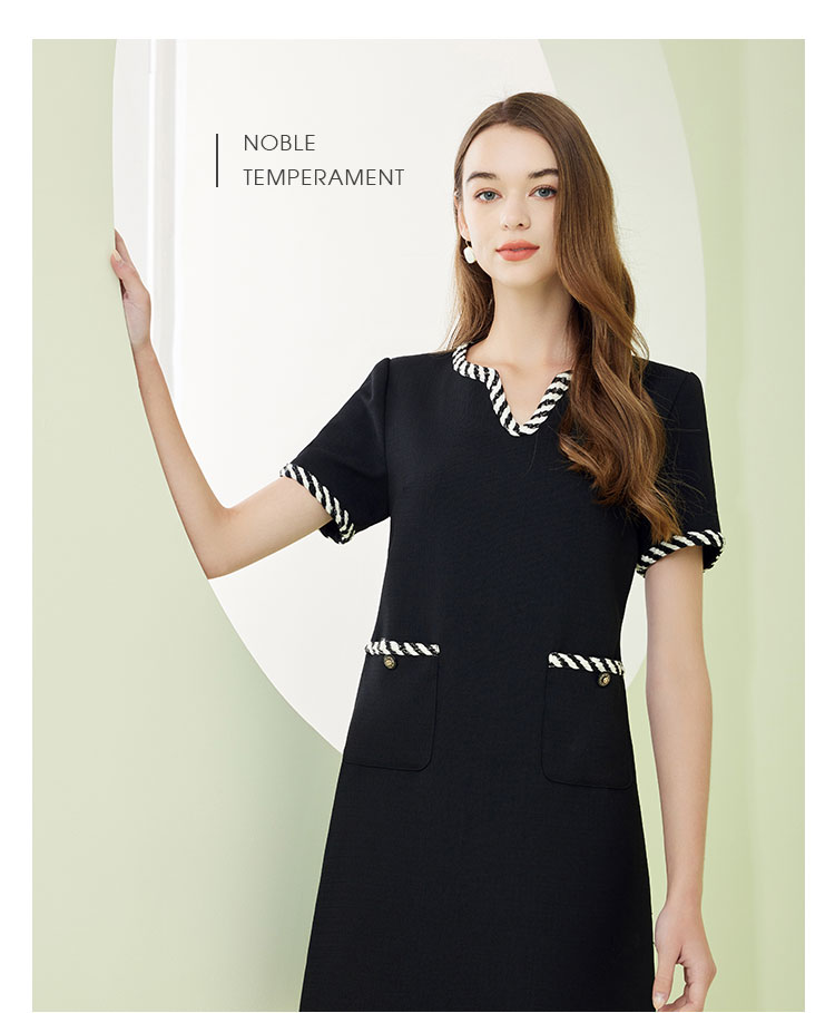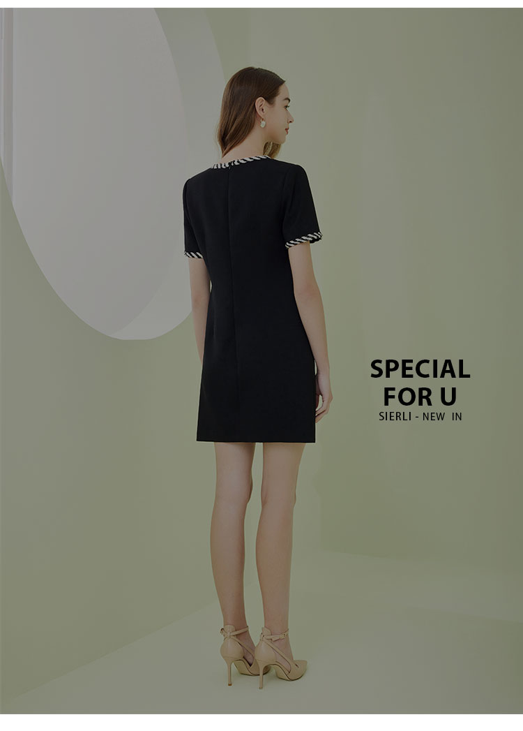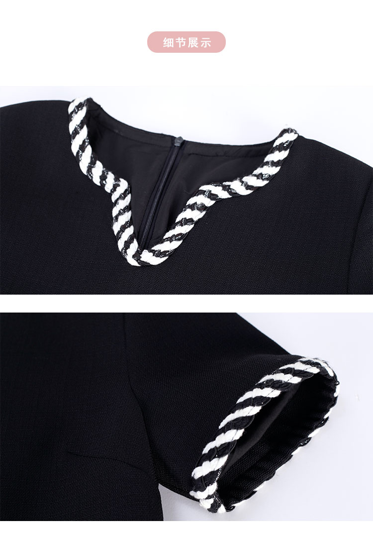 商品名称:[小V领撞色织带小香风]春夏时尚简约气质宽松连衣裙 184607