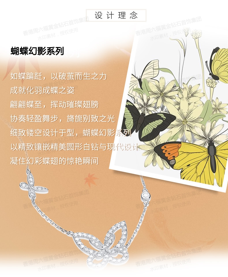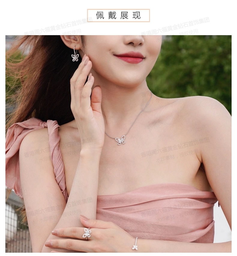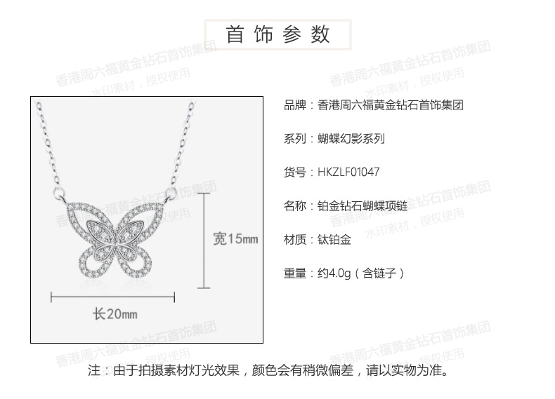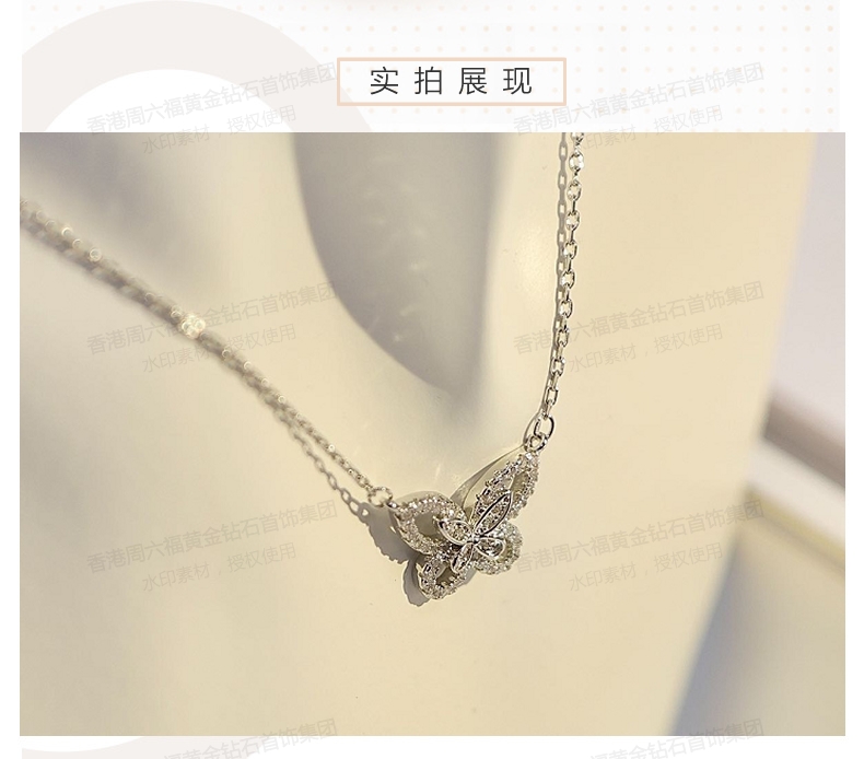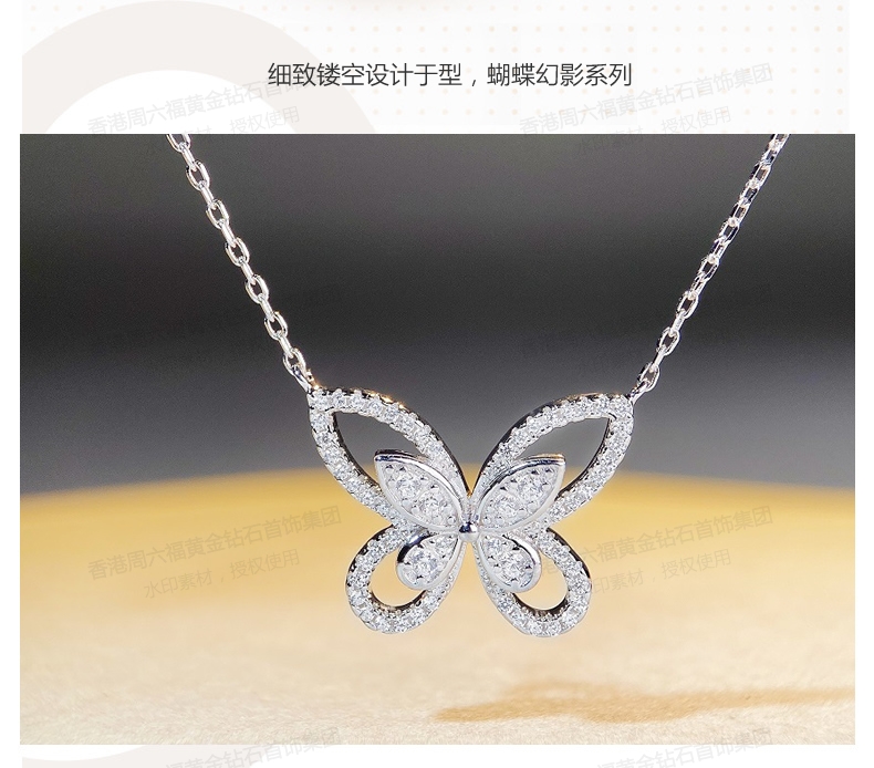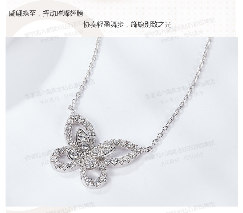 商品名称:香港周六福铂金钻石蝴蝶项链(钛铂金、锆钻)