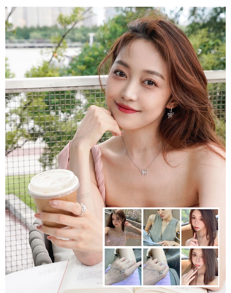 香港周六福铂金钻石蝴蝶项链(钛铂金、锆钻)