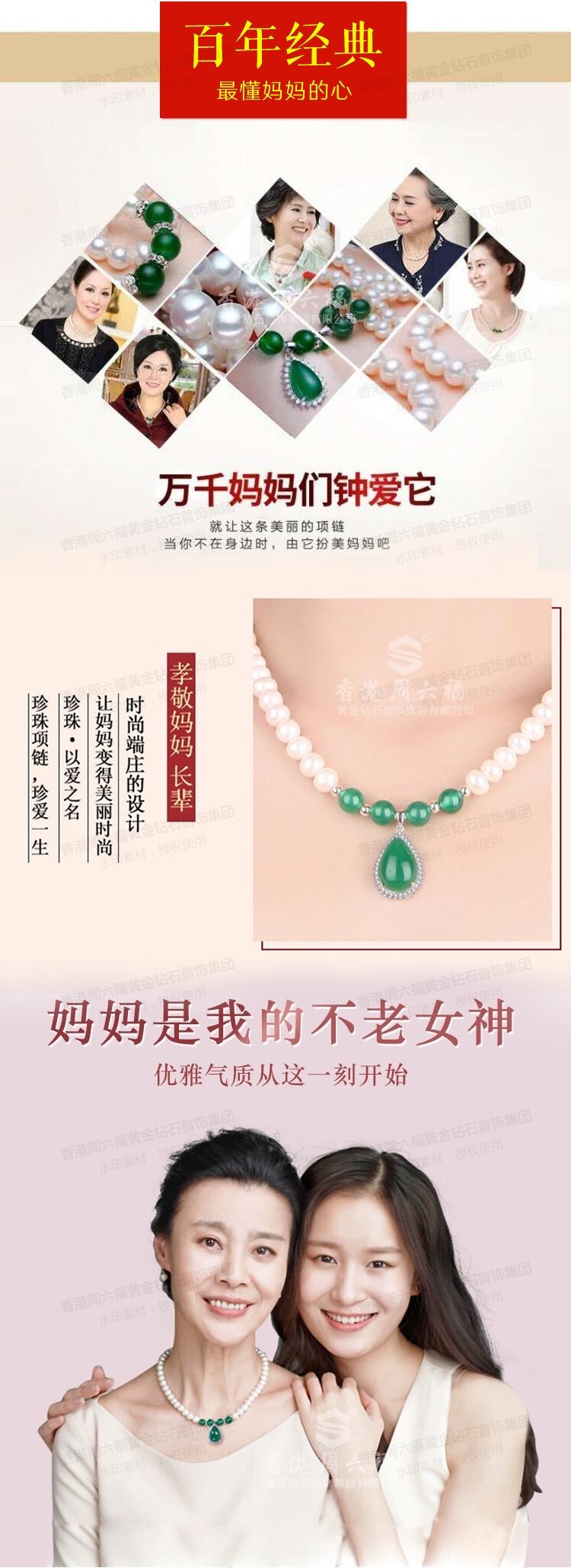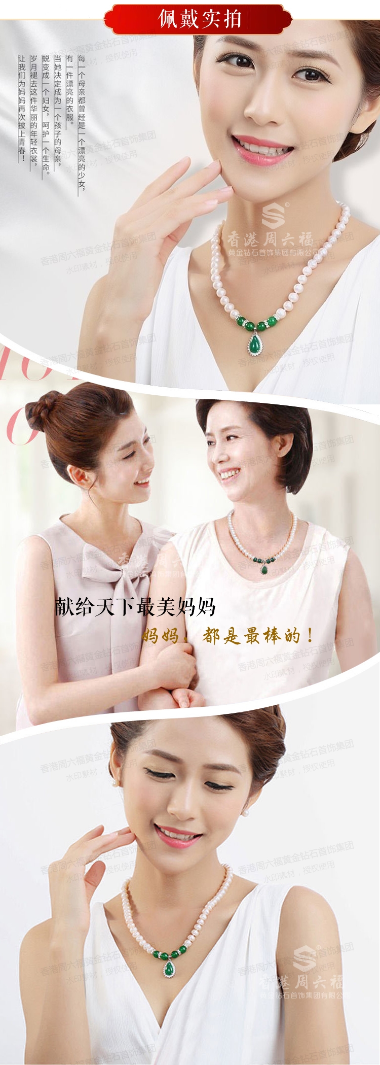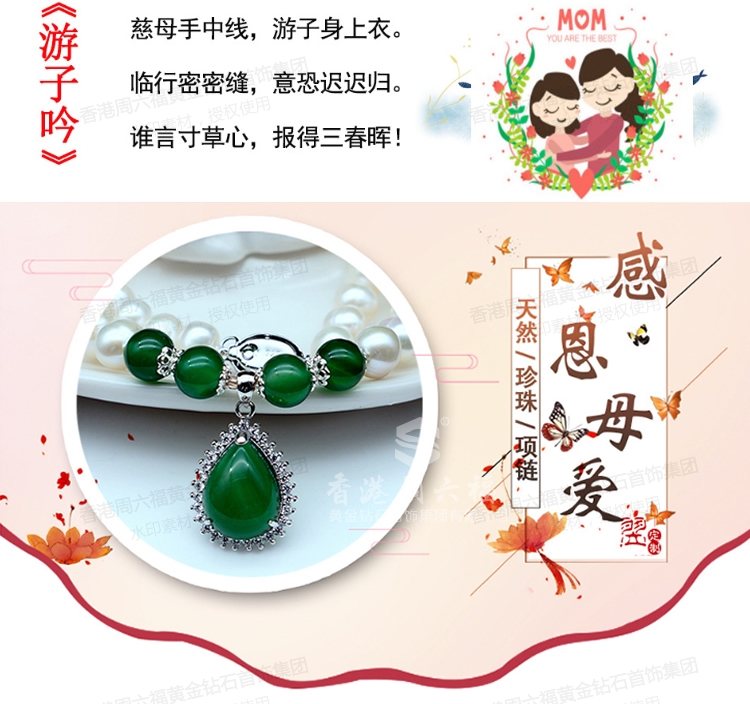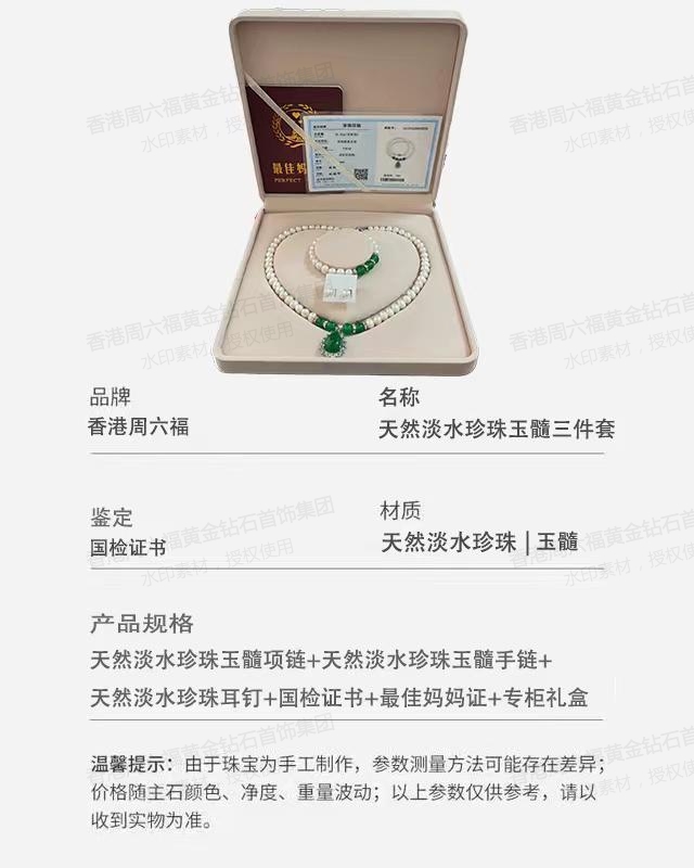 商品名称:香港周六福18KGP-珍珠项链三件套玉髓吊坠
