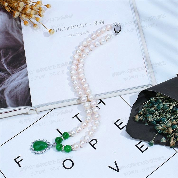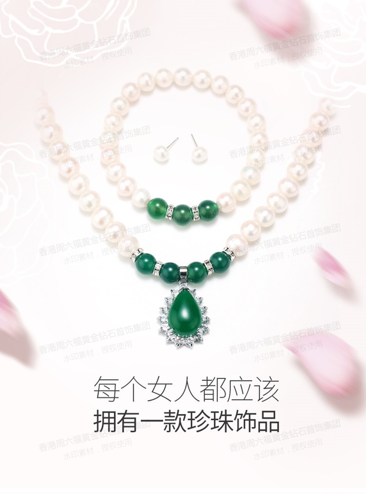 香港周六福18KGP-珍珠项链三件套玉髓吊坠