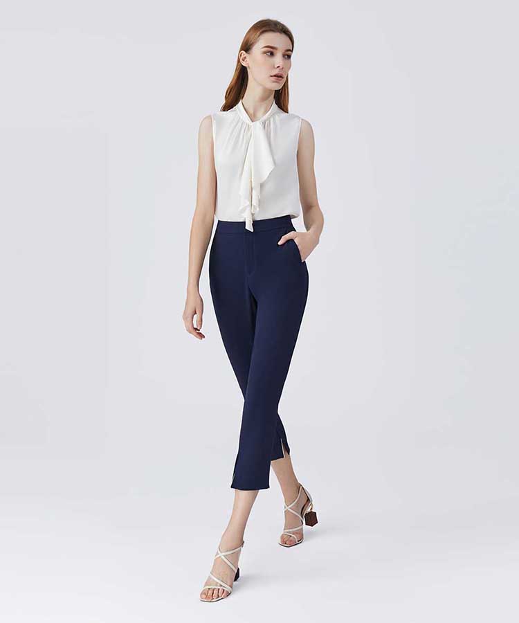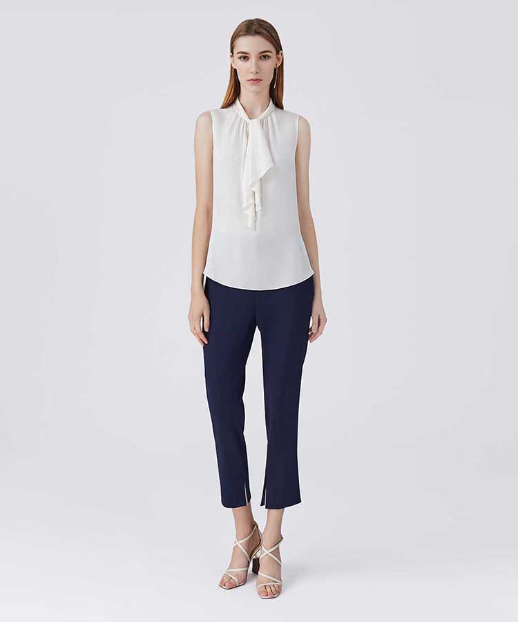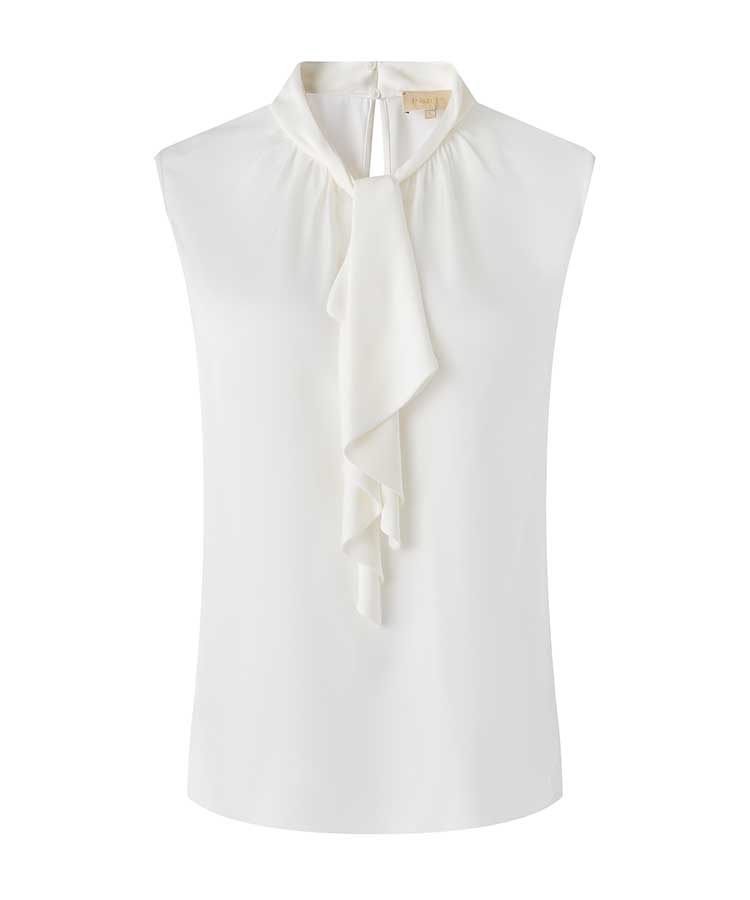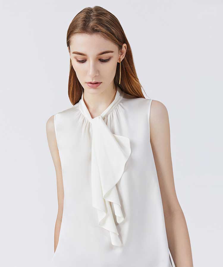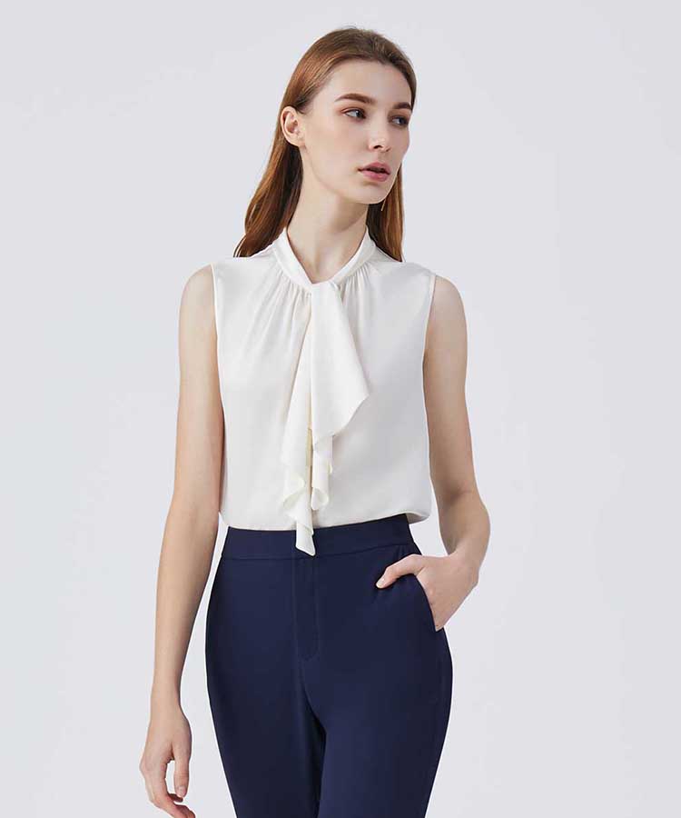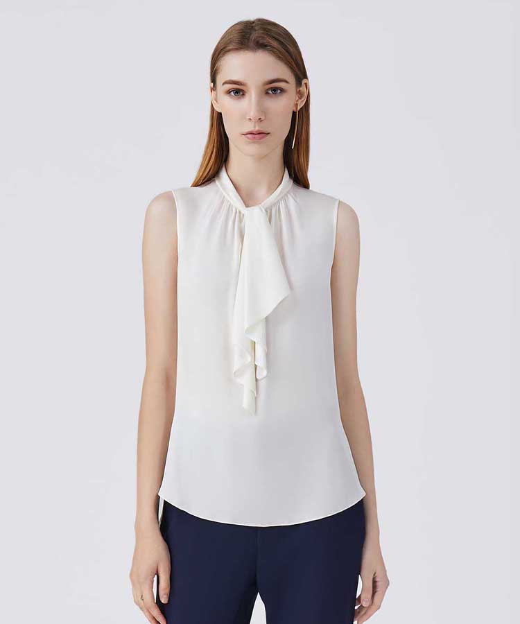 商品名称:宝姿女装春夏复古典雅丝巾领无袖衬衫 946954