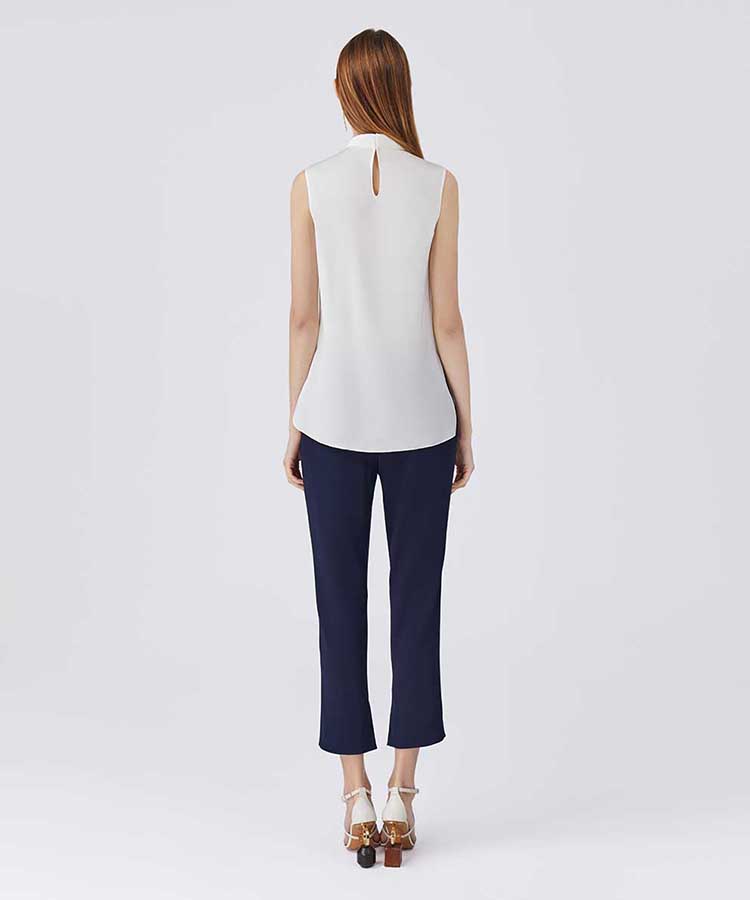 宝姿女装春夏复古典雅丝巾领无袖衬衫 946954