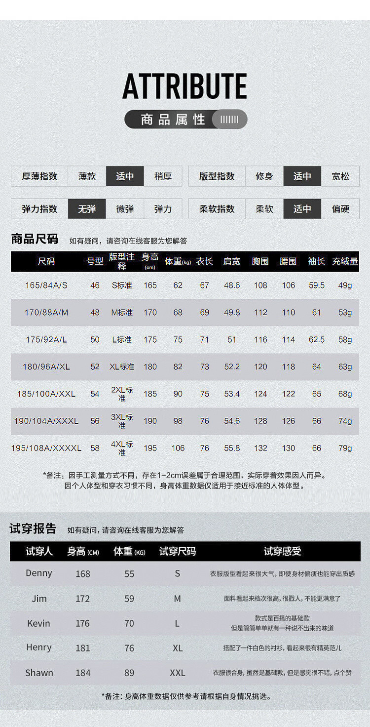 | 尺码 | 衣长(cm) | 肩宽(cm) | 腰围(cm) | 袖长(cm) | 胸围(cm) | 号型 |