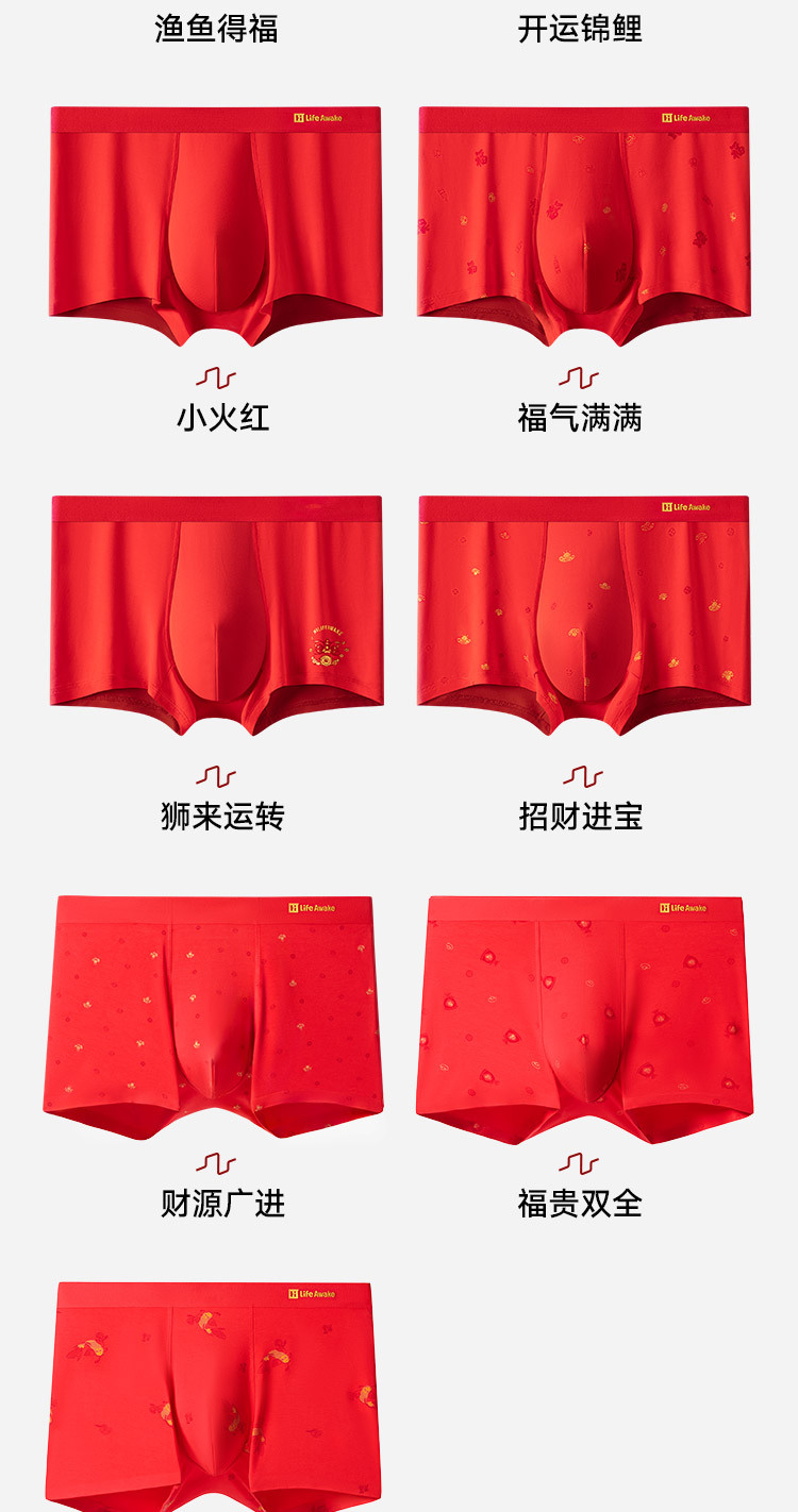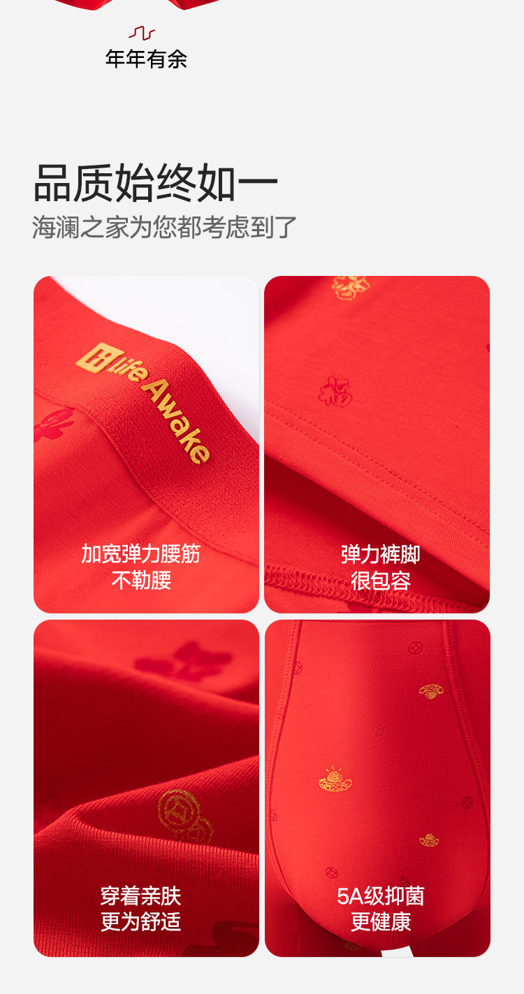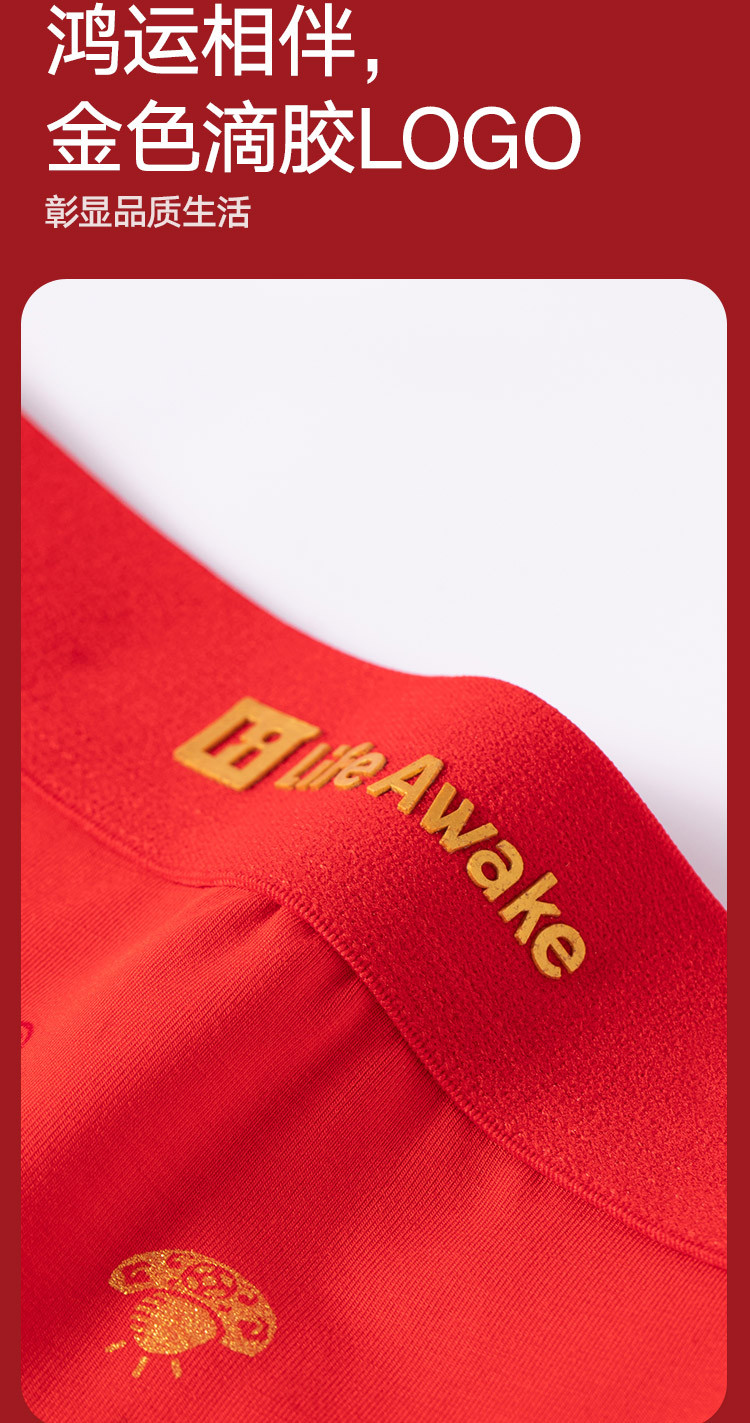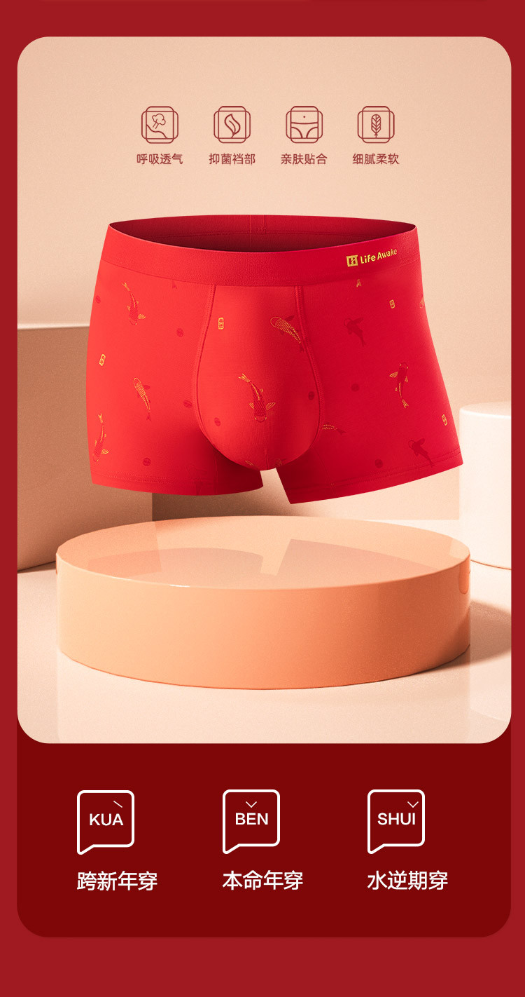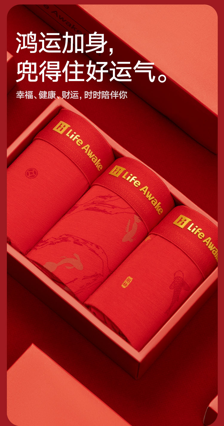 商品名称:【鸿运礼盒】3条装5A抑菌男士内裤男平角红色本命蛇年四角短裤 541210