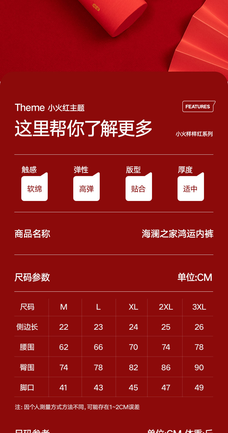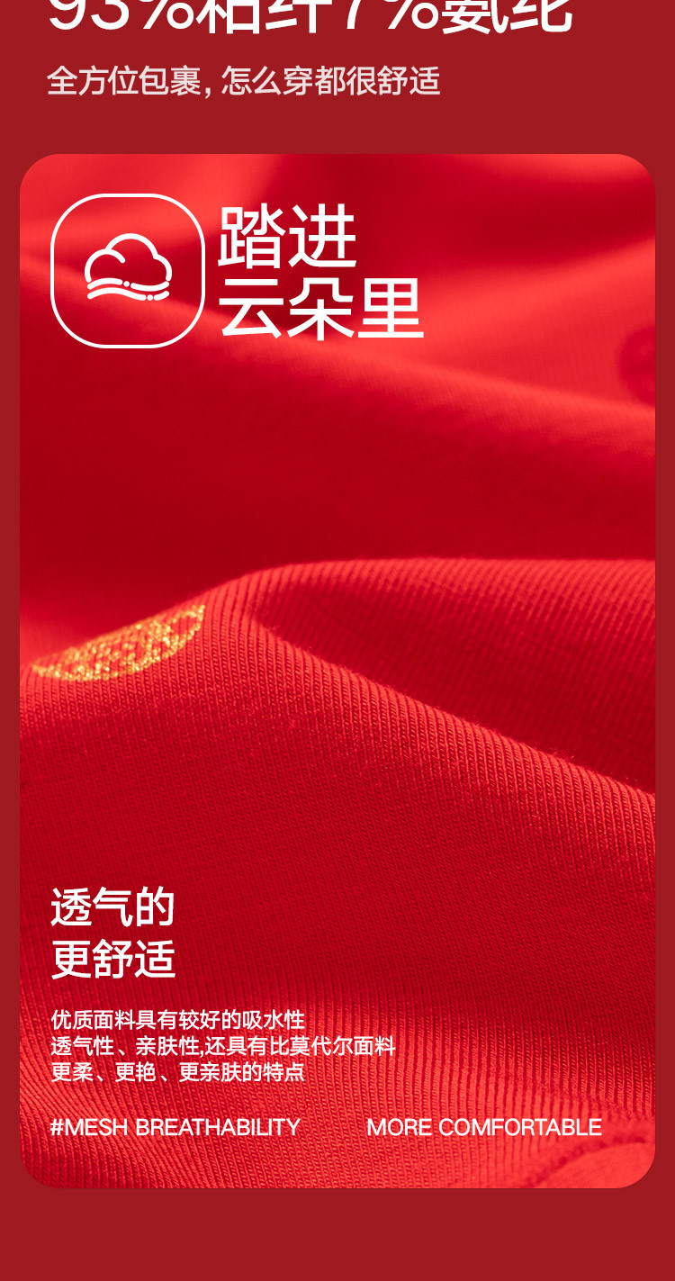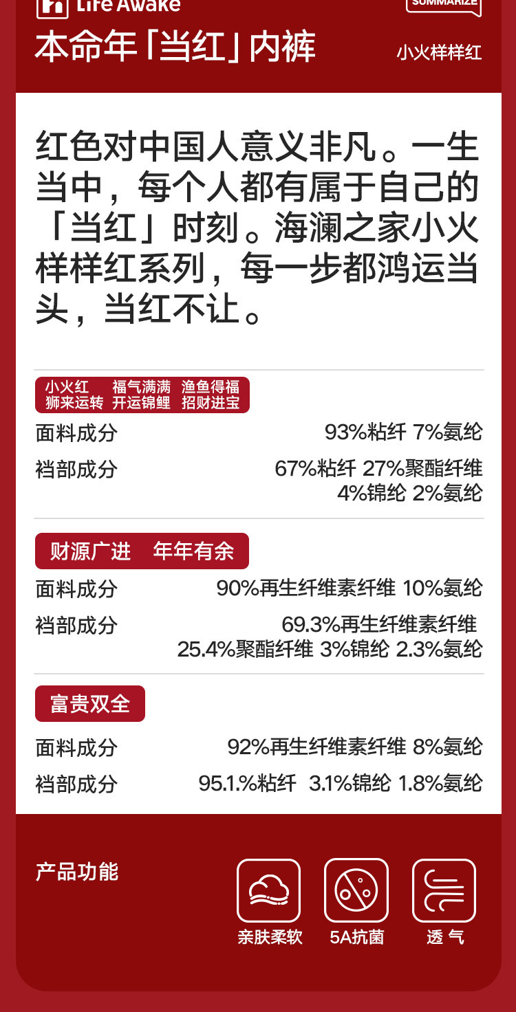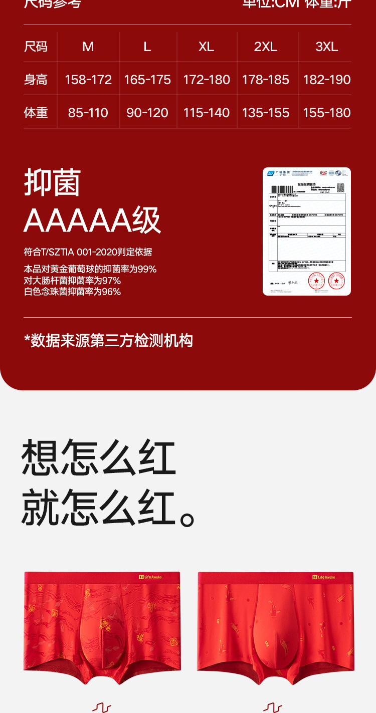 商品名称:【鸿运礼盒】3条装5A抑菌男士内裤男平角红色本命蛇年四角短裤 541210