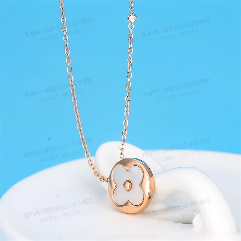 香港周六福天然南非真钻项链-四叶草圆白贝 净重约2克