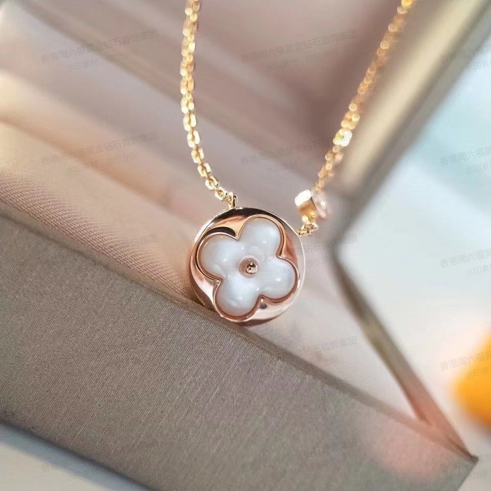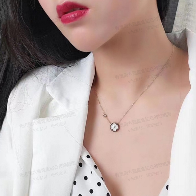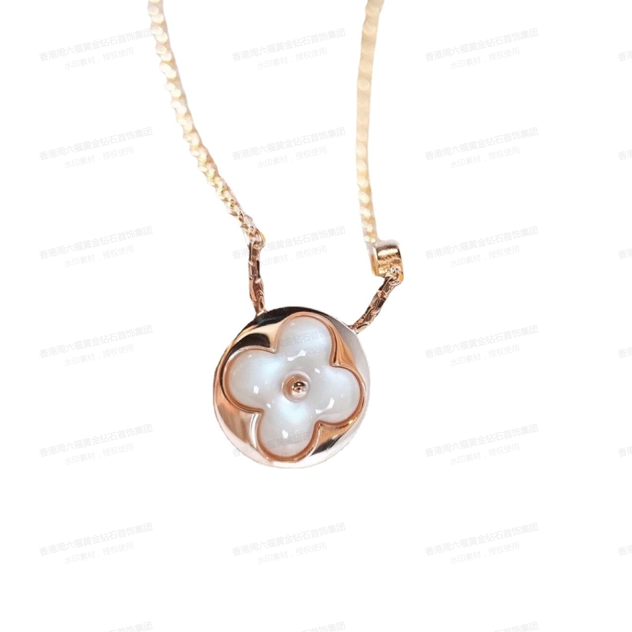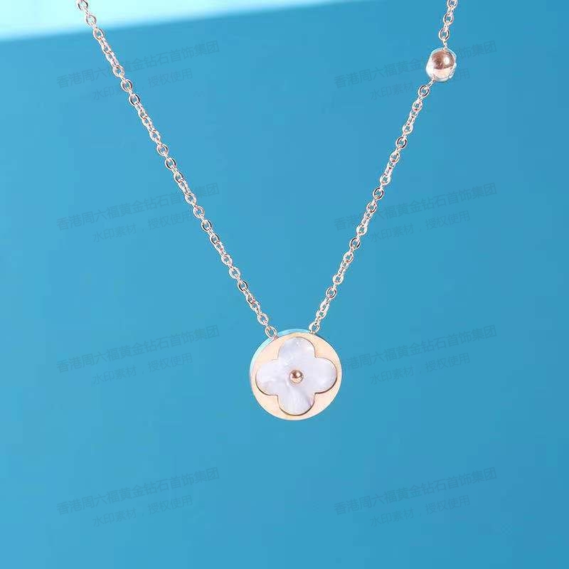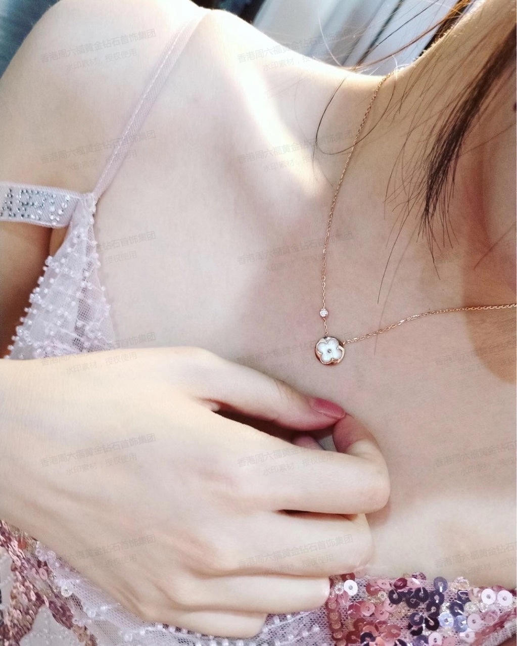商品名称:香港周六福天然南非真钻项链-四叶草圆白贝 净重约2克