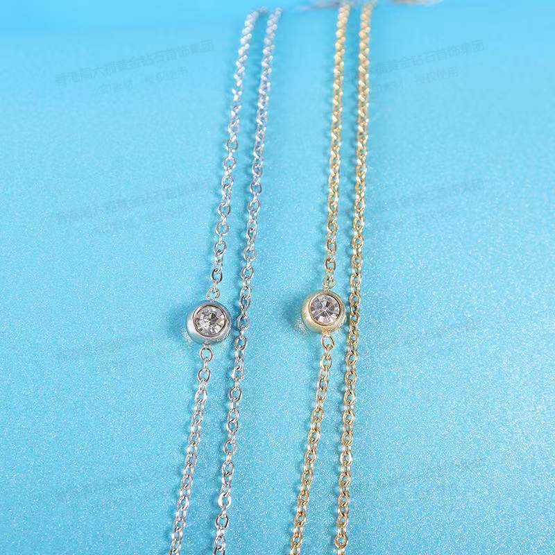 规格:链长约400mm,净重约2克 钻石规格:1分南非真钻 贵金属范围:18KGP