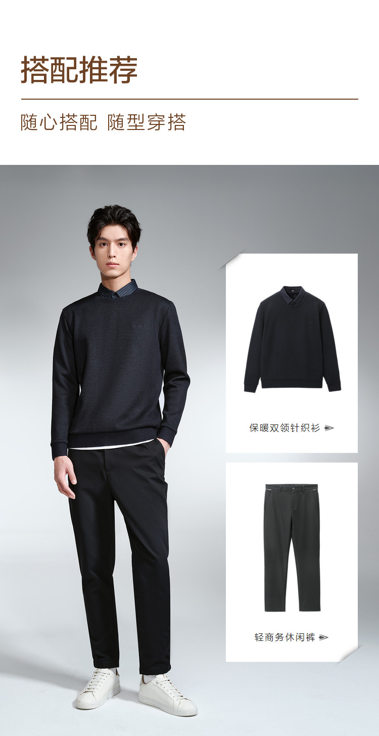 商品名称:【暖+加绒】冬季轻商务加厚保暖假两件长袖男士针织衫 719368