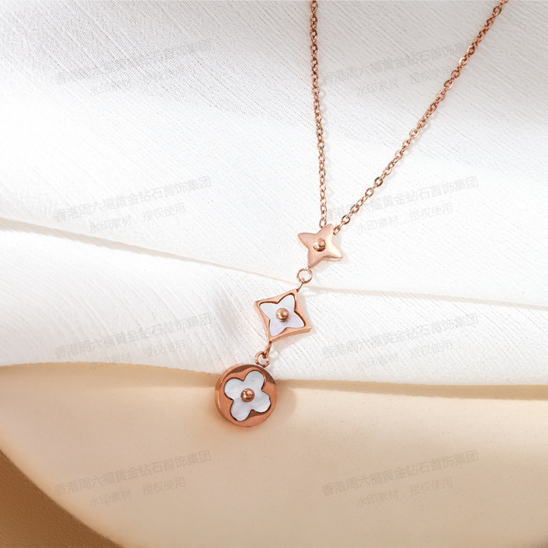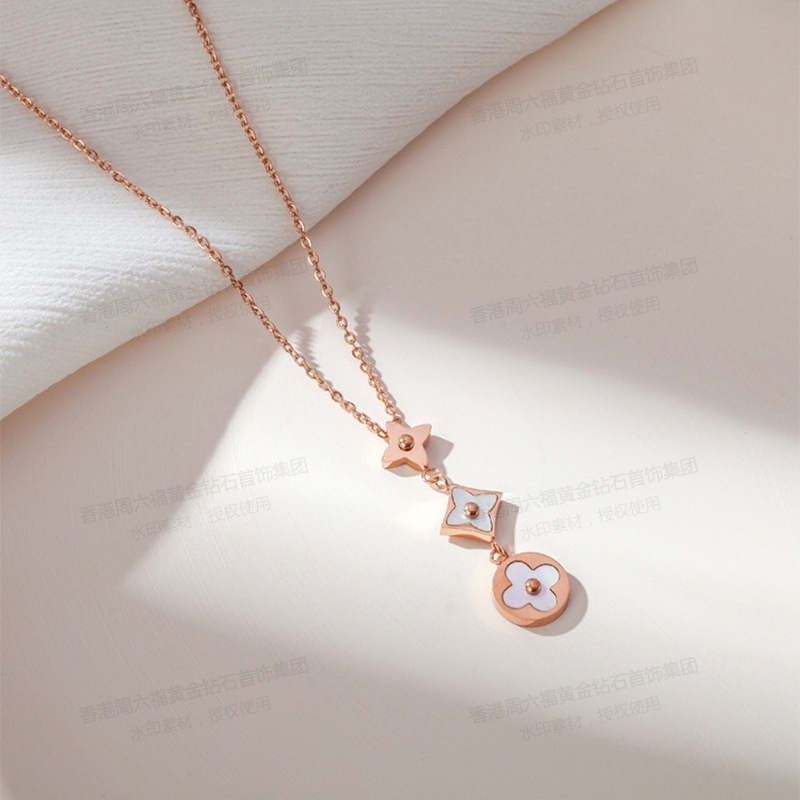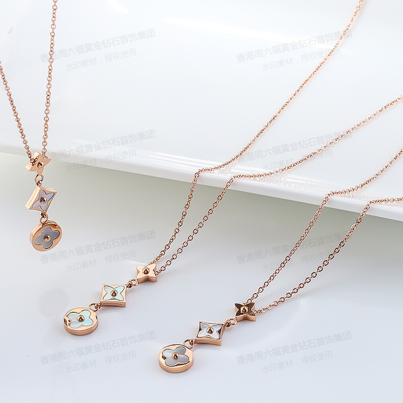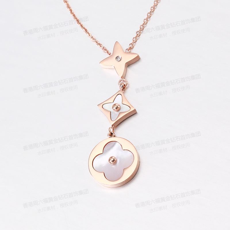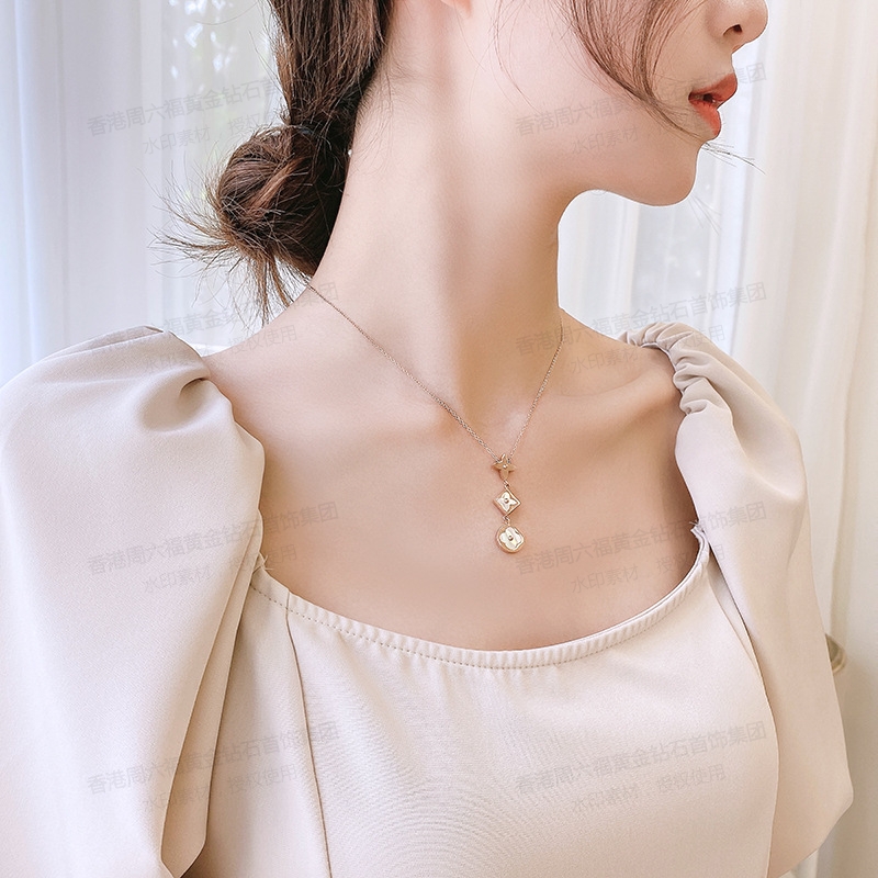 商品名称:香港周六福天然南非真钻-四叶草全家福项链 净重约2克