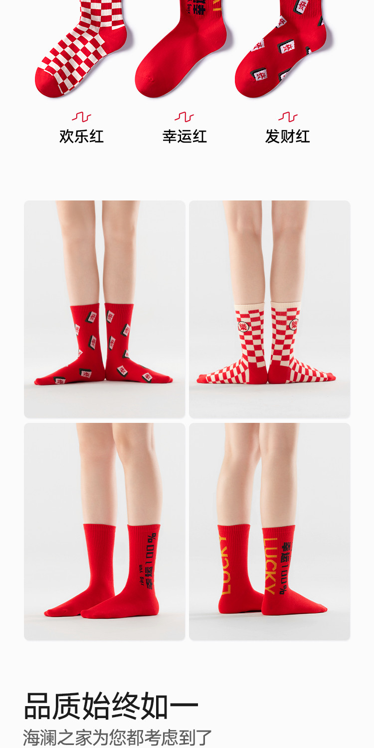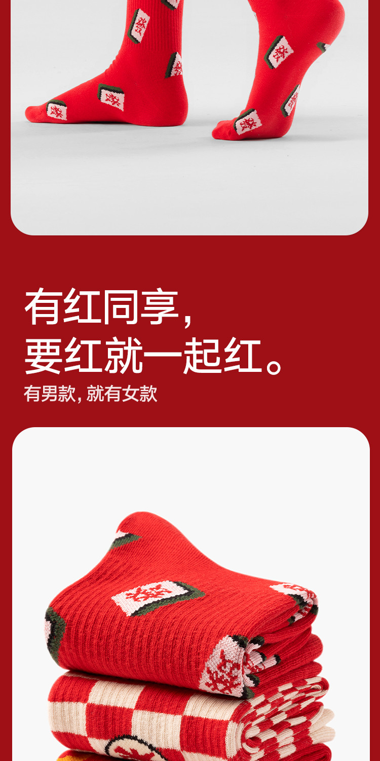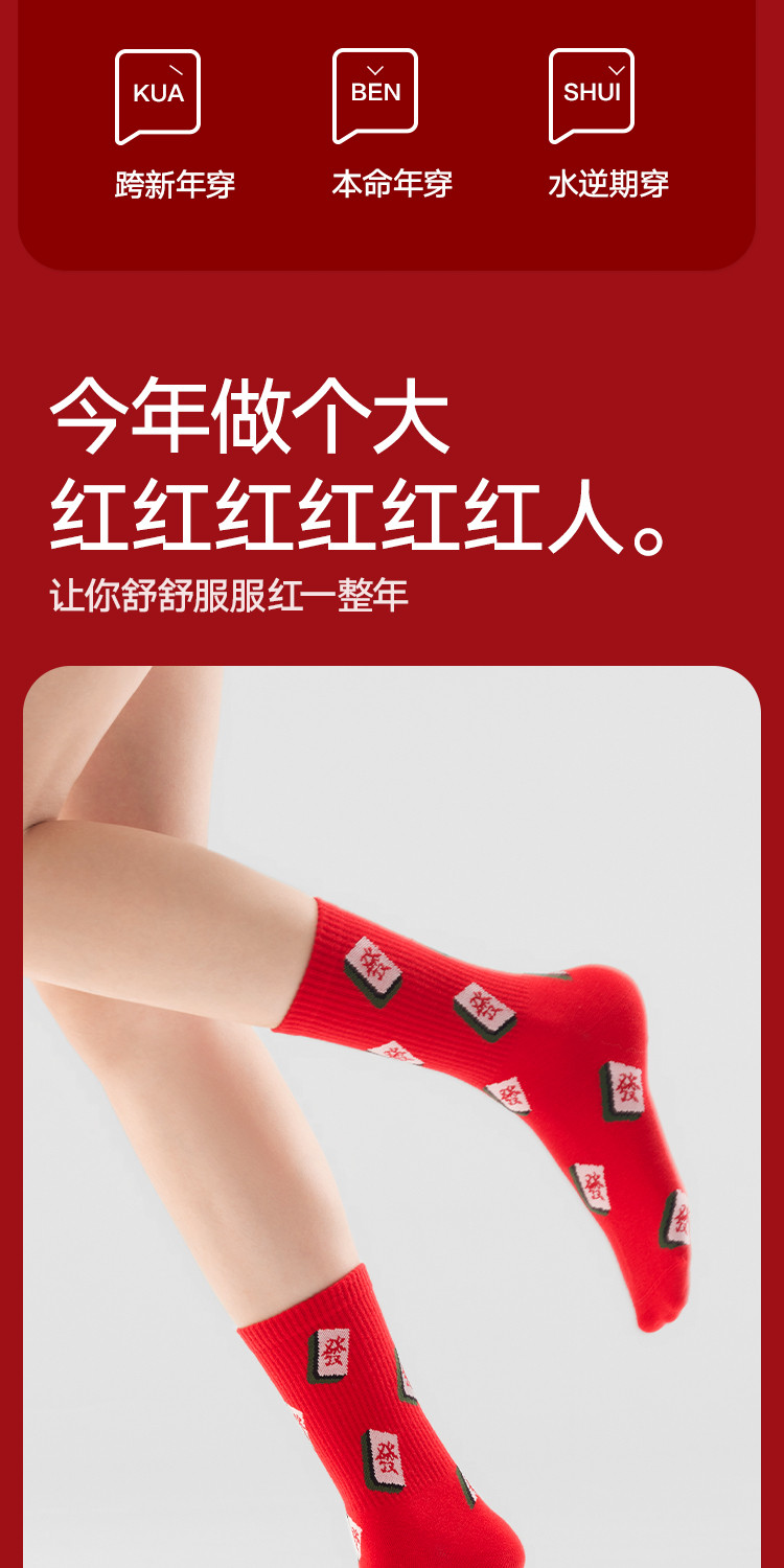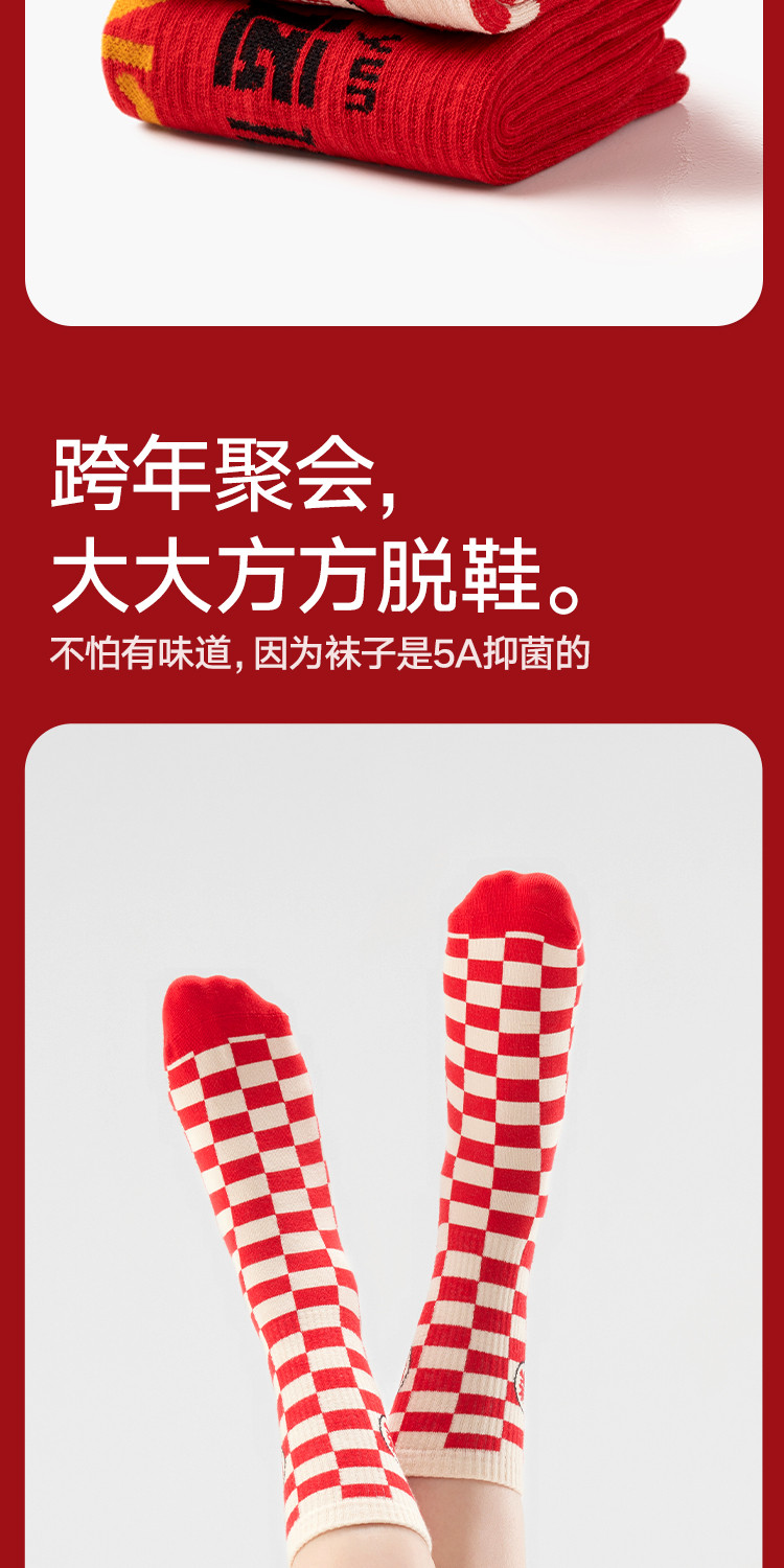 商品名称:【鸿运礼盒】3双装女士袜子抑菌防臭本命新年红色婚假中筒袜女袜 264858