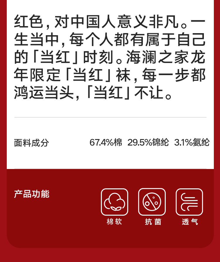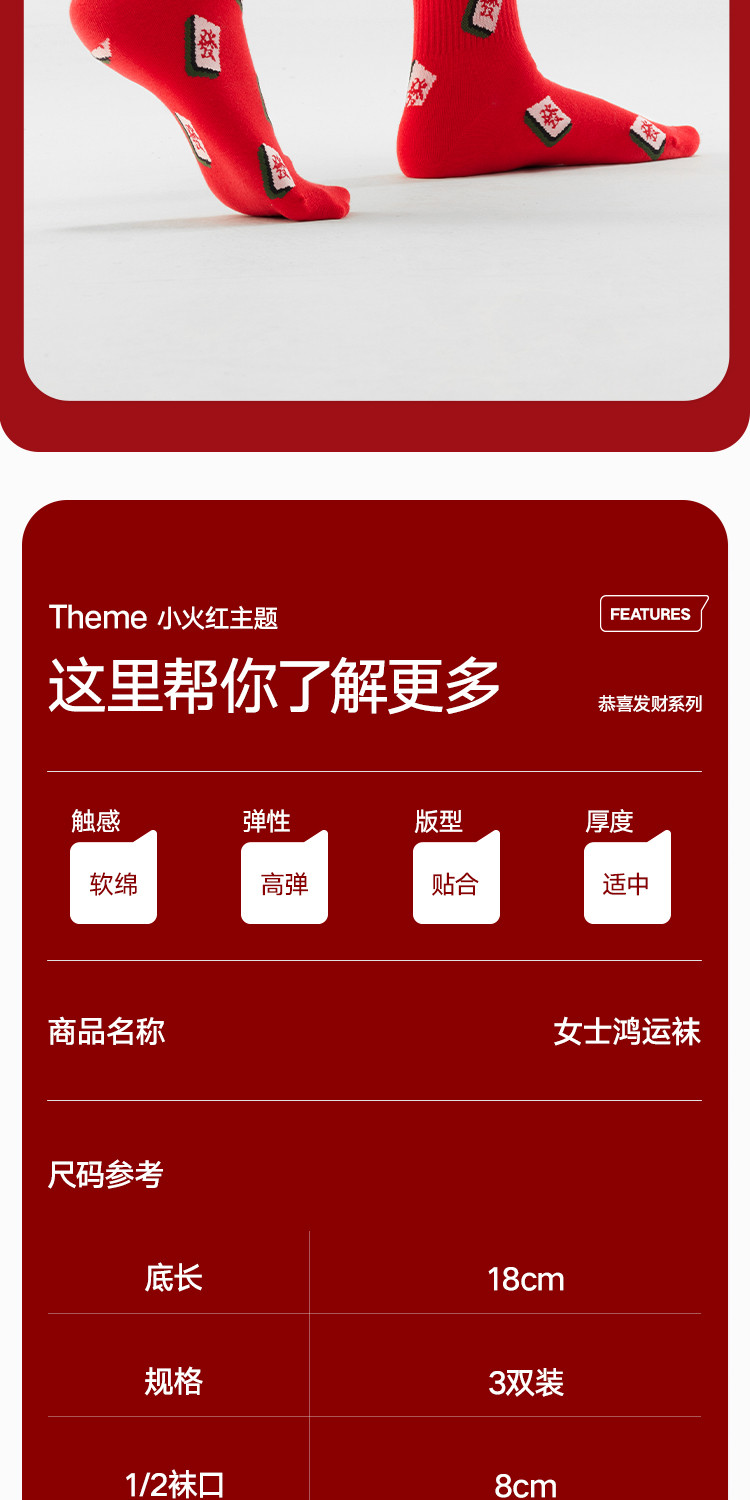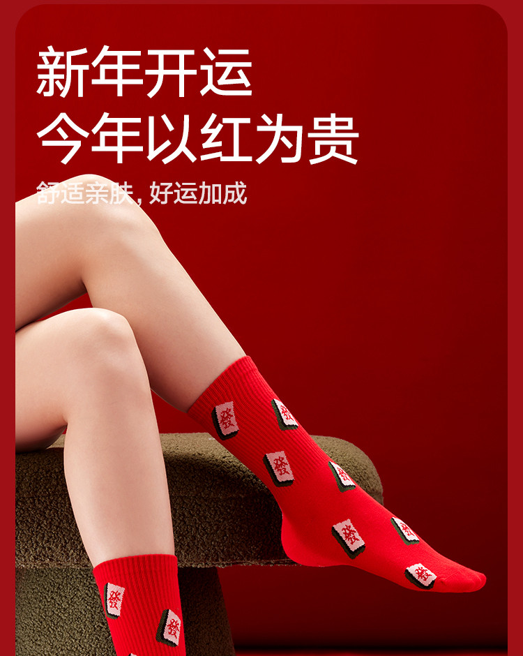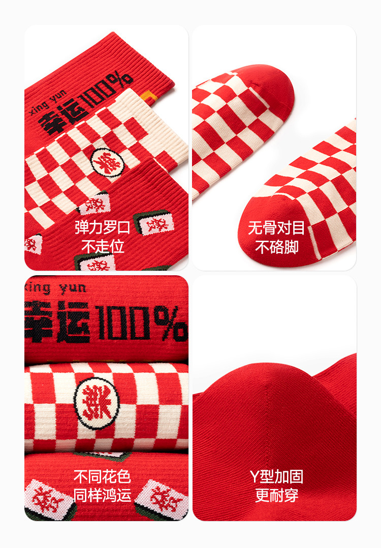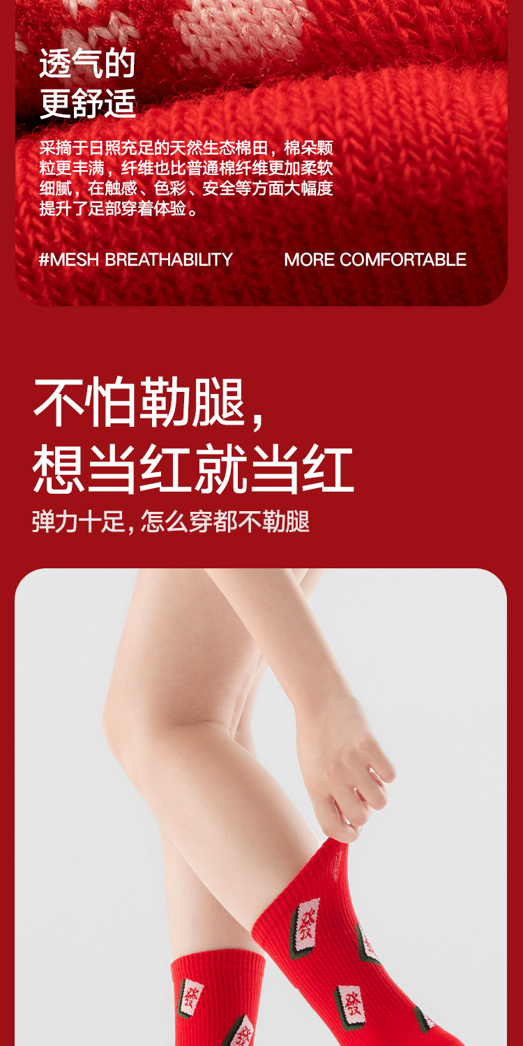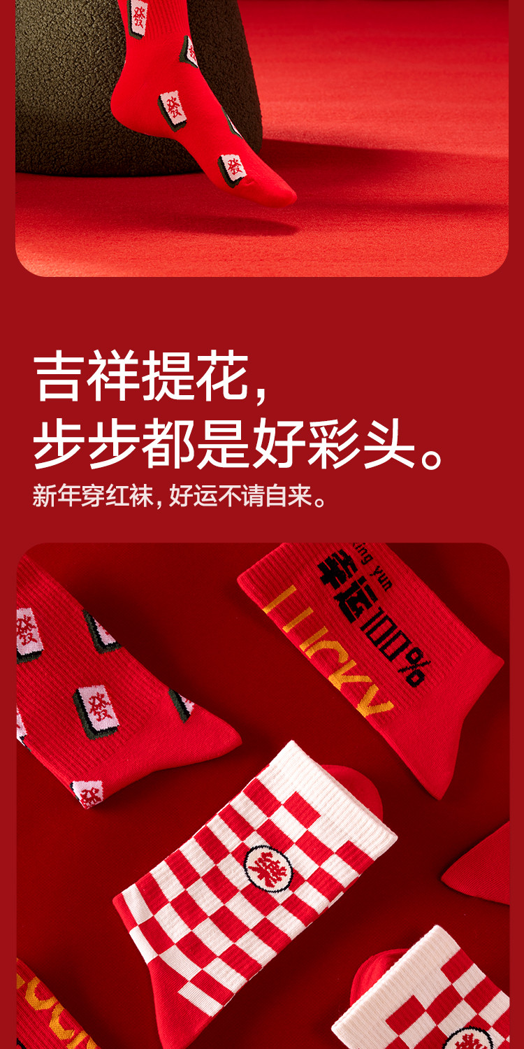 商品名称:【鸿运礼盒】3双装女士袜子抑菌防臭本命新年红色婚假中筒袜女袜 264858