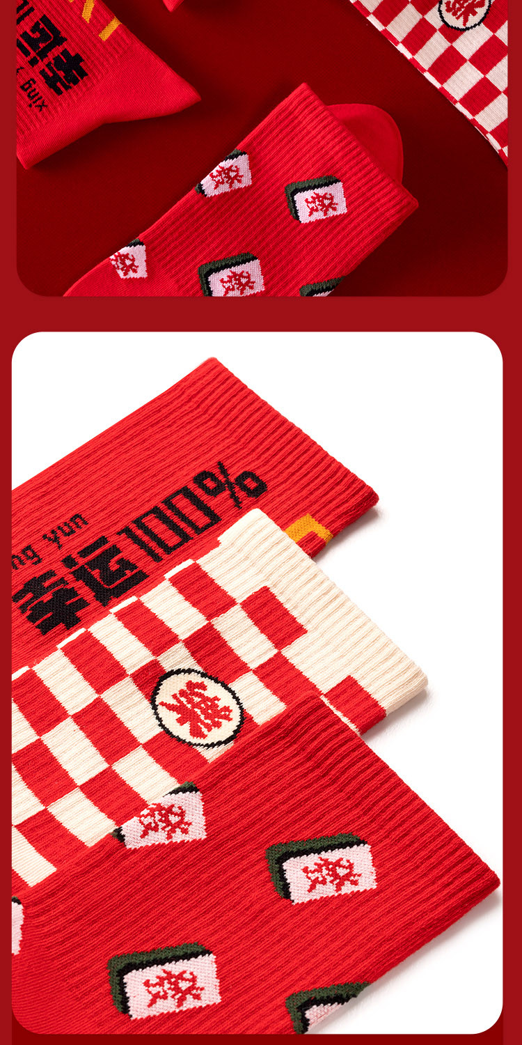 【鸿运礼盒】3双装女士袜子抑菌防臭本命新年红色婚假中筒袜女袜 264858