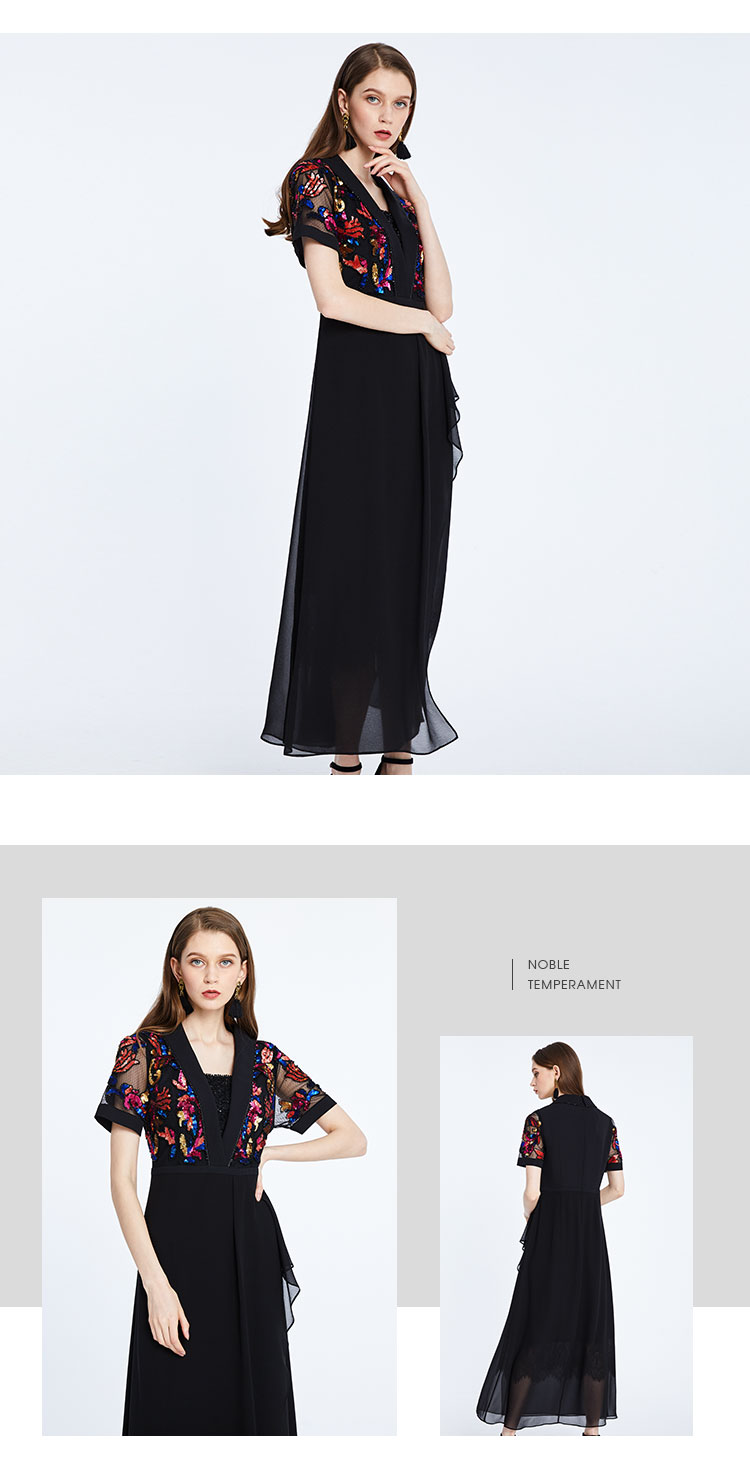 商品名称:商场同款夏季立体手工彩色刺绣高腰节显瘦飘逸连衣裙 687327