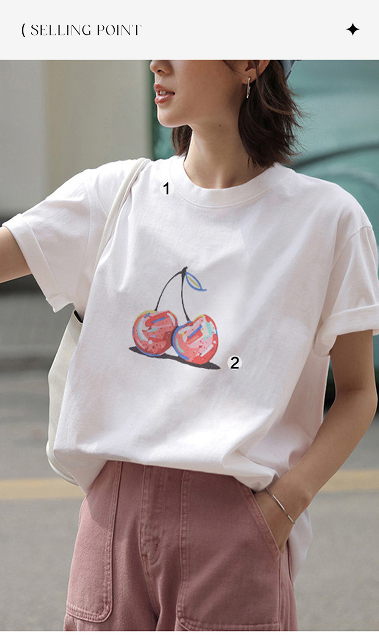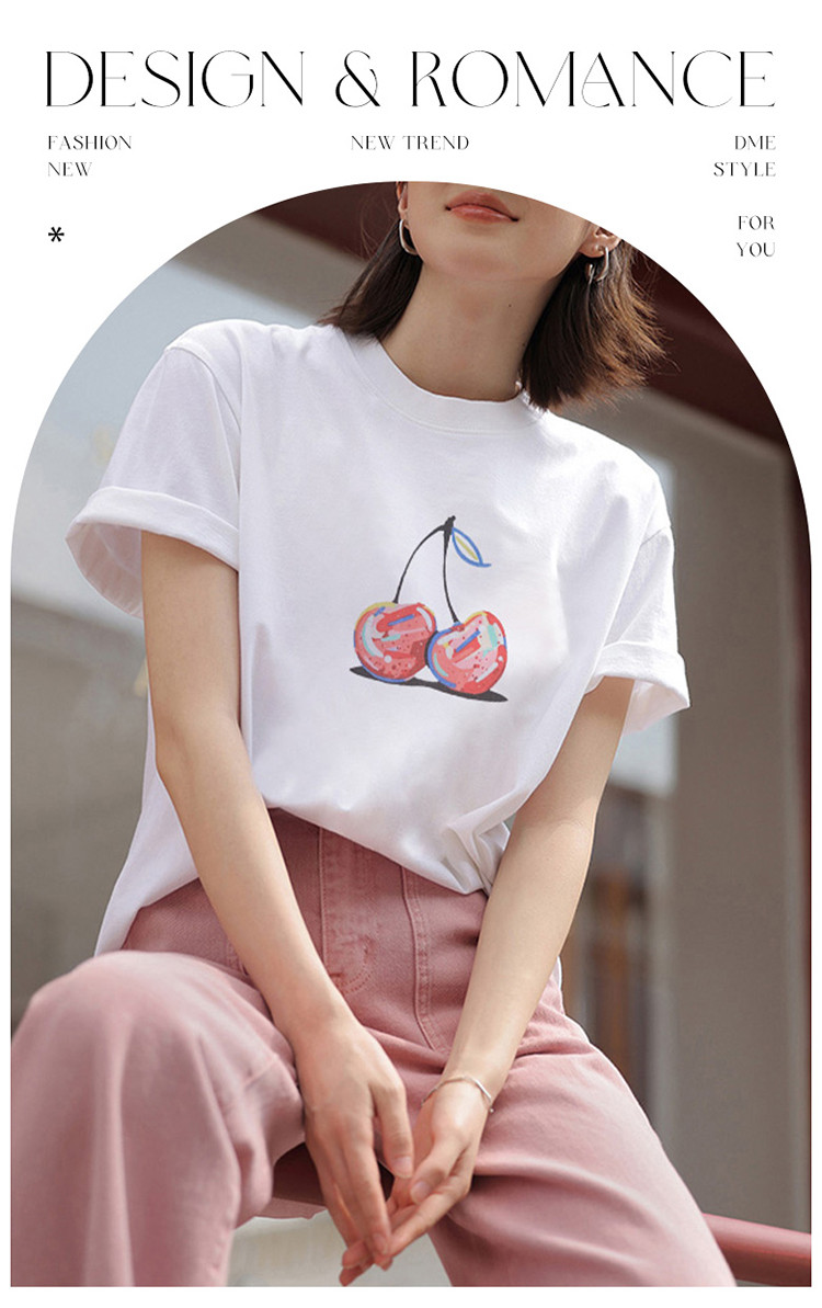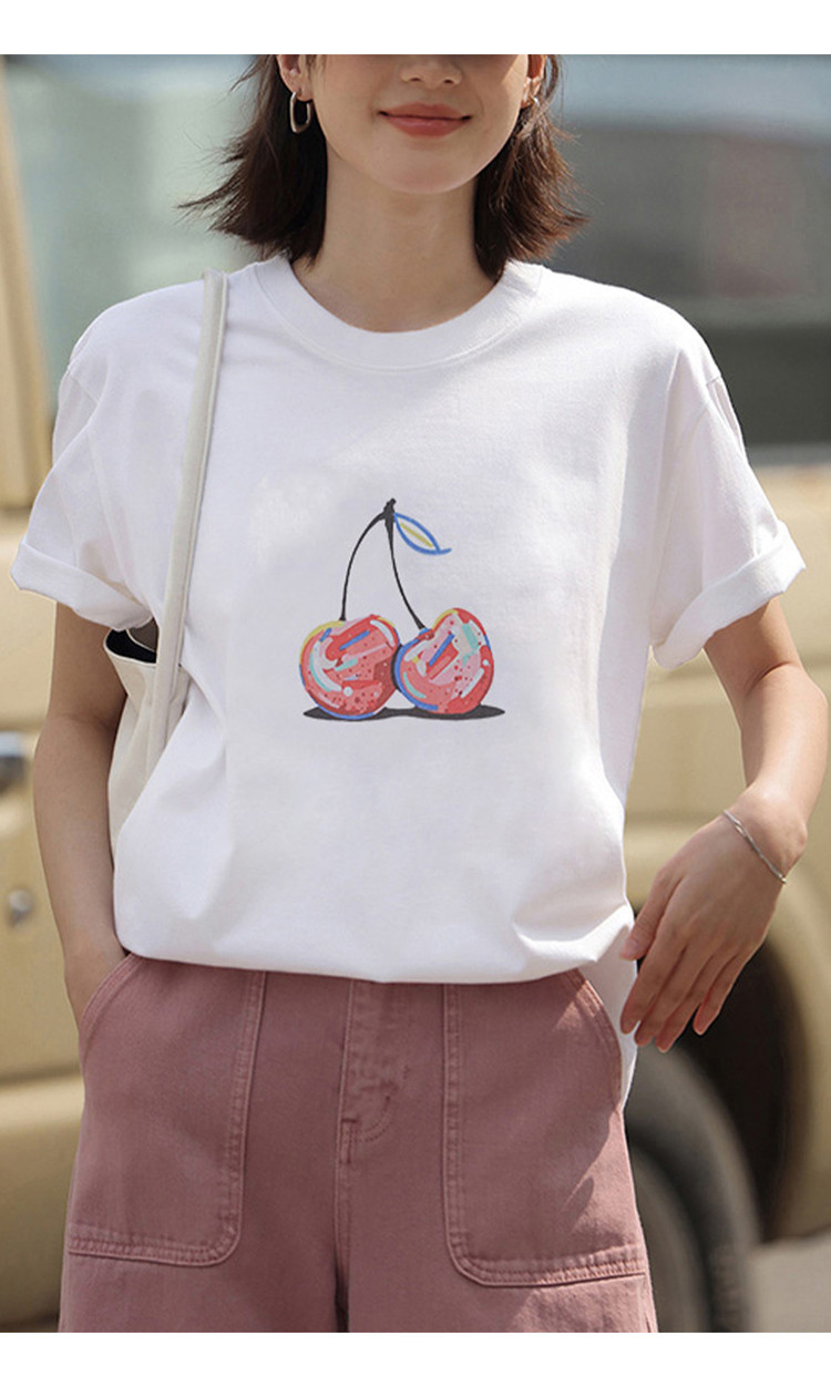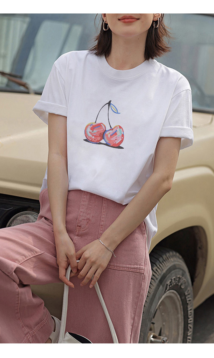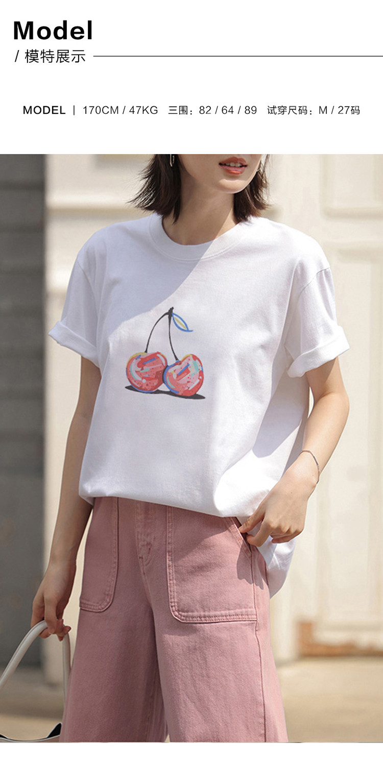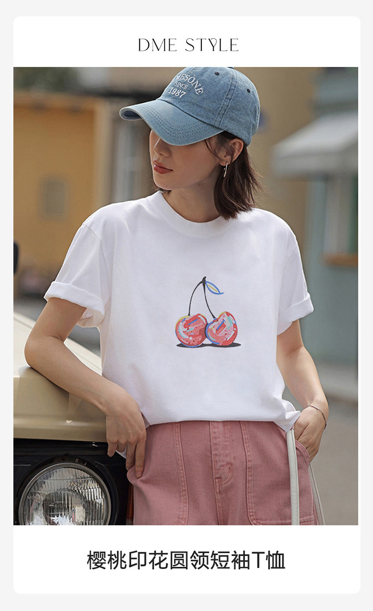 商品名称:【糖果樱桃印花短袖】简约款百搭女式T恤圆领上衣 065730