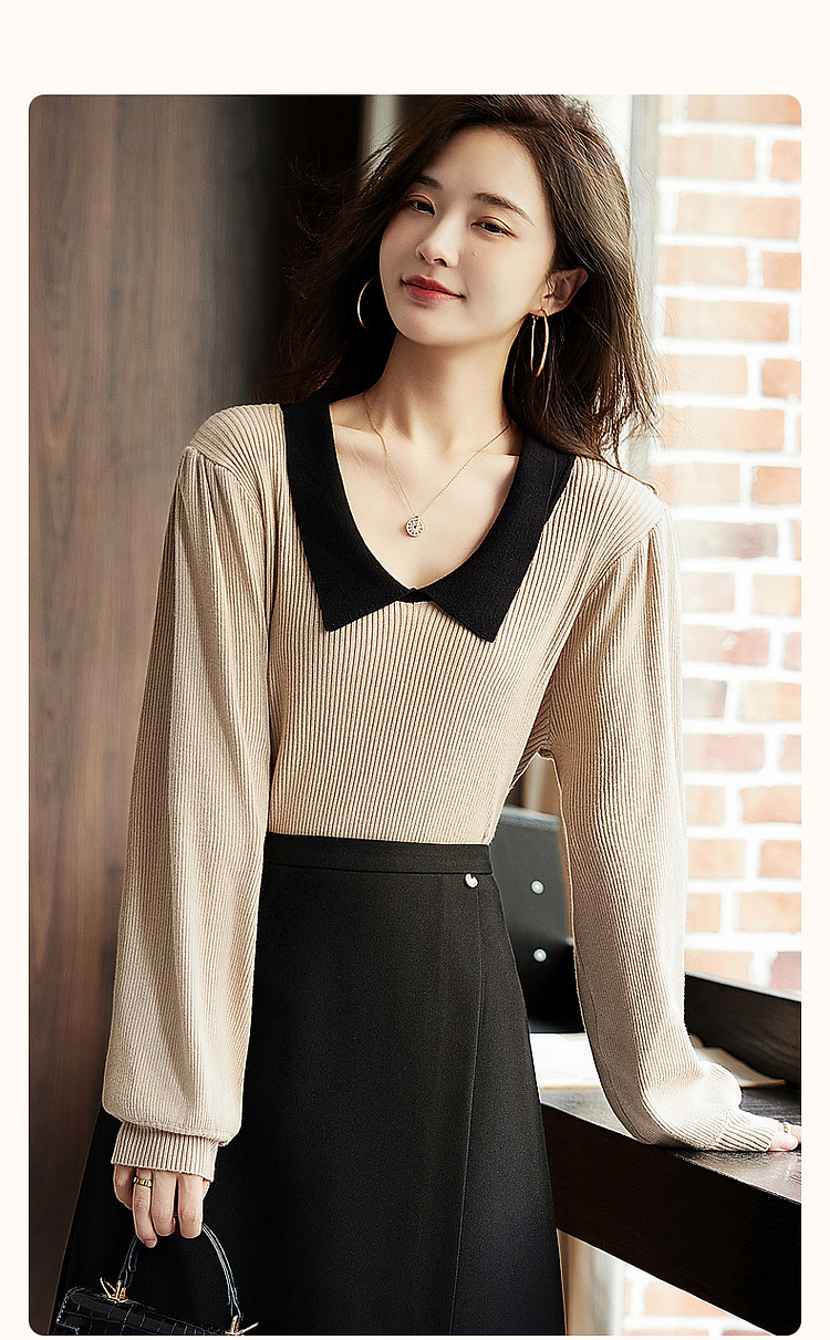 商品名称:【复古小家碧玉】春秋款娃娃领线衫甜美小个子针织衫女上衣 922561