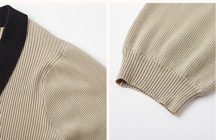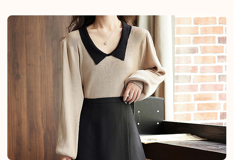 【甜妹日常】春秋季鸡心领长袖淑女撞色针织衫女上衣 160193