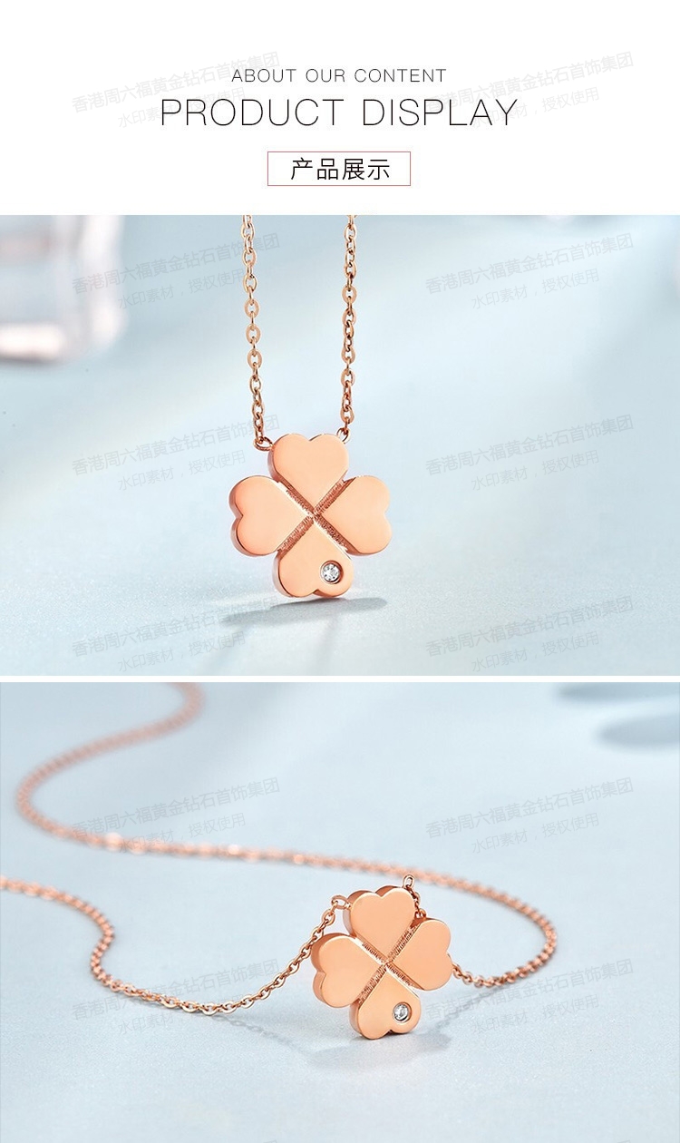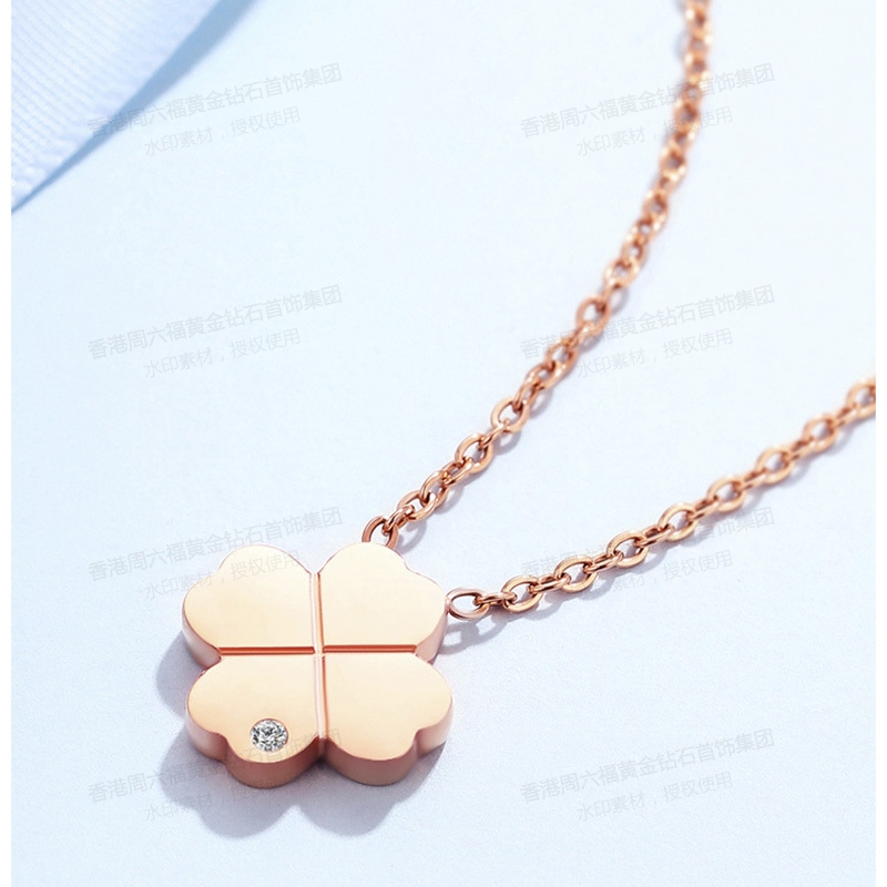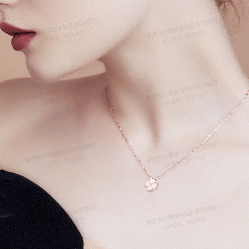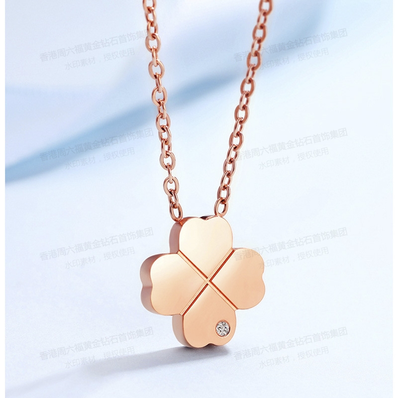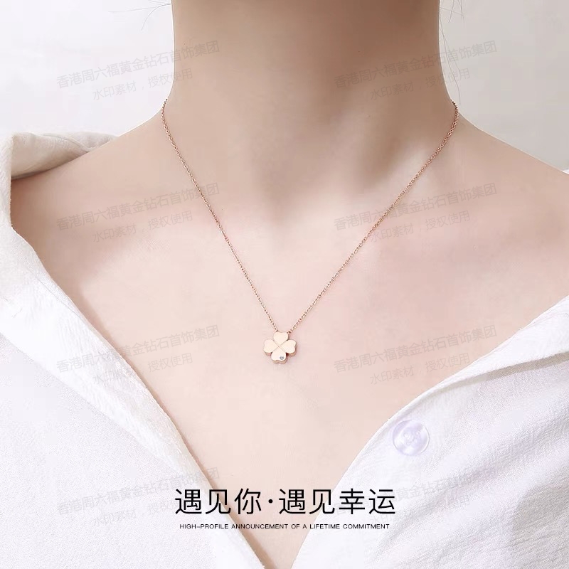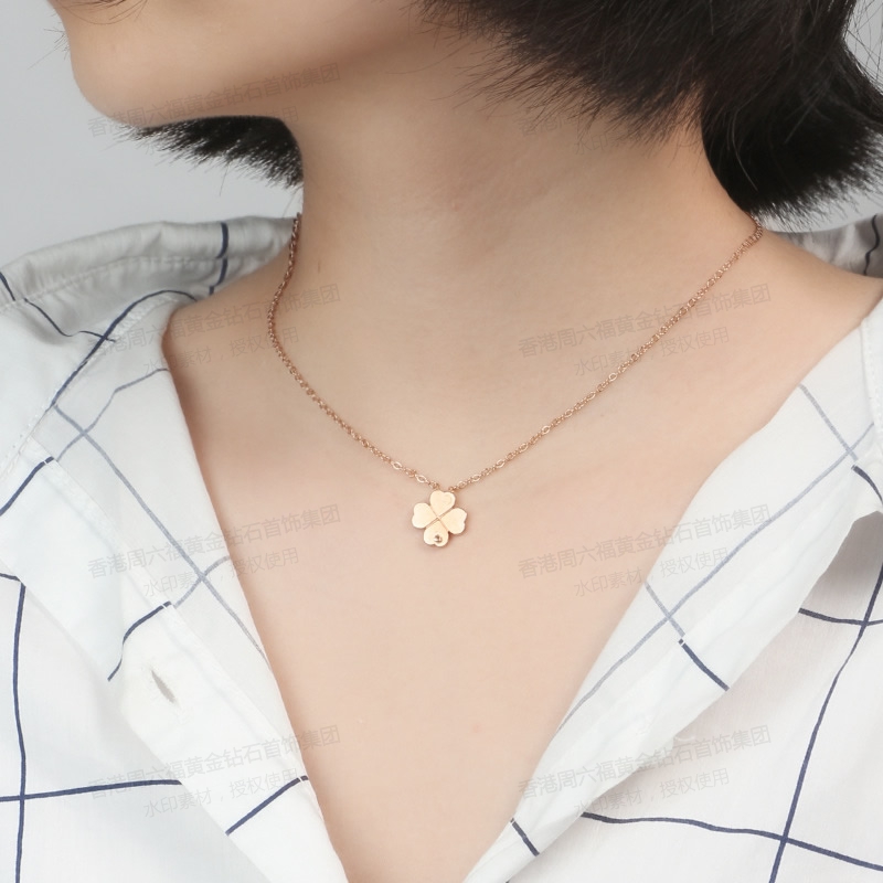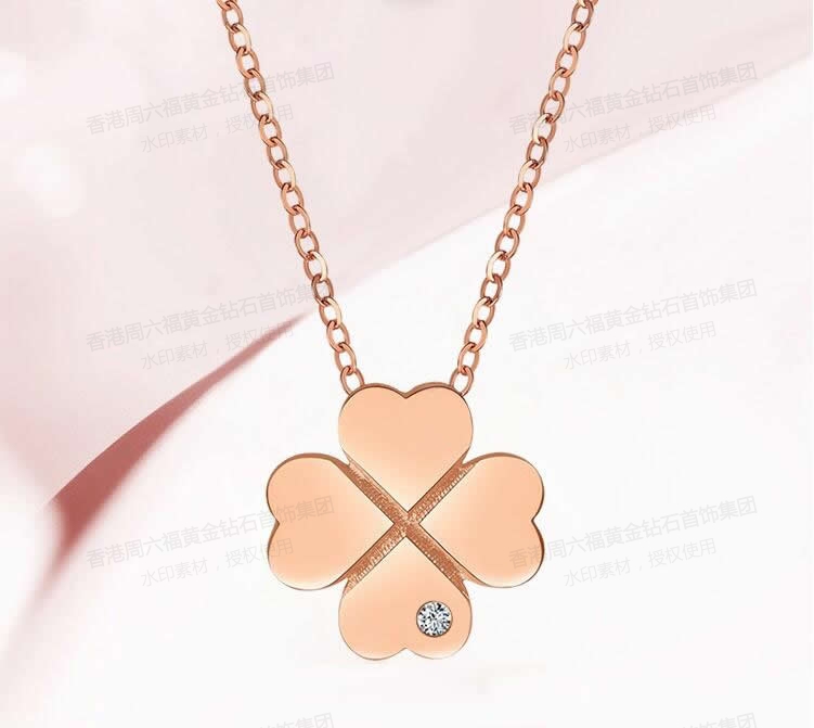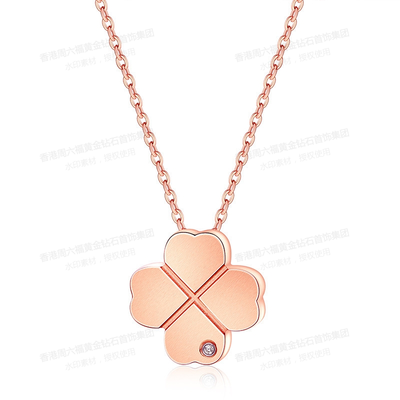 香港周六福天然南非真钻项链-四叶草(光面)净重约2克