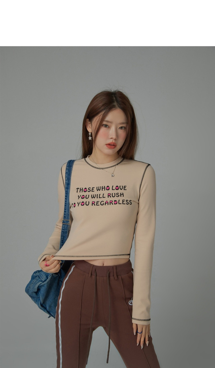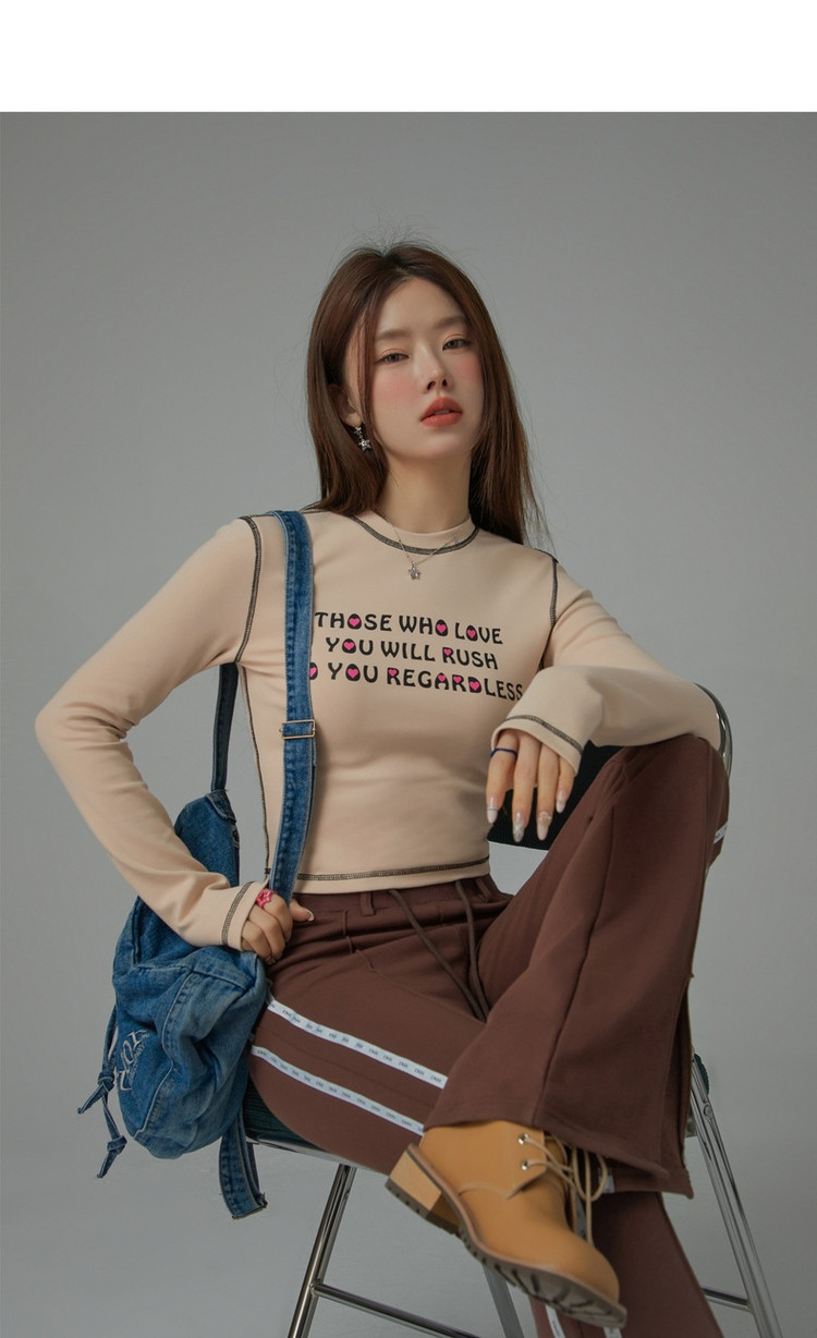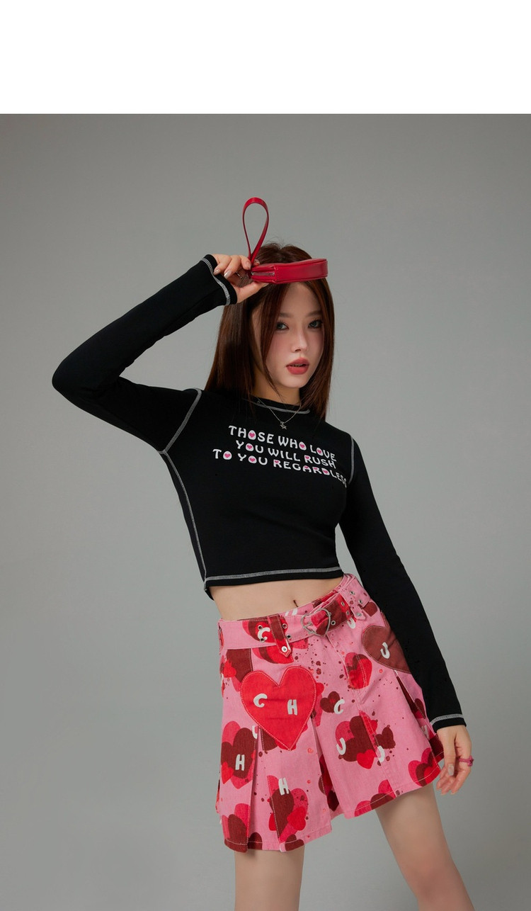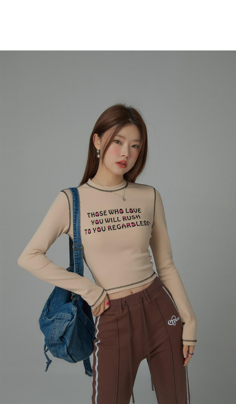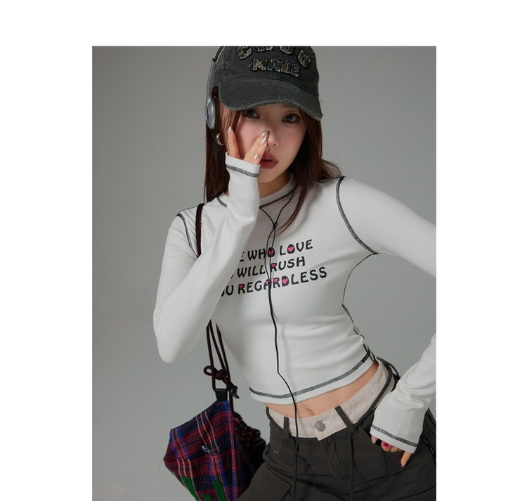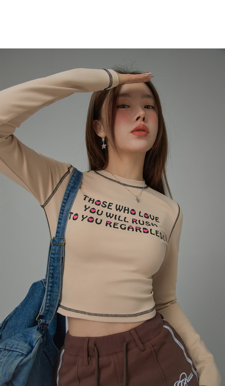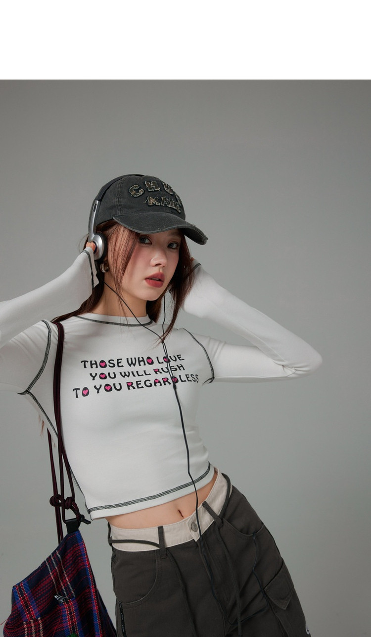 商品名称:辣妹修身T恤女春秋字母爱心时尚百搭长袖上衣 327635