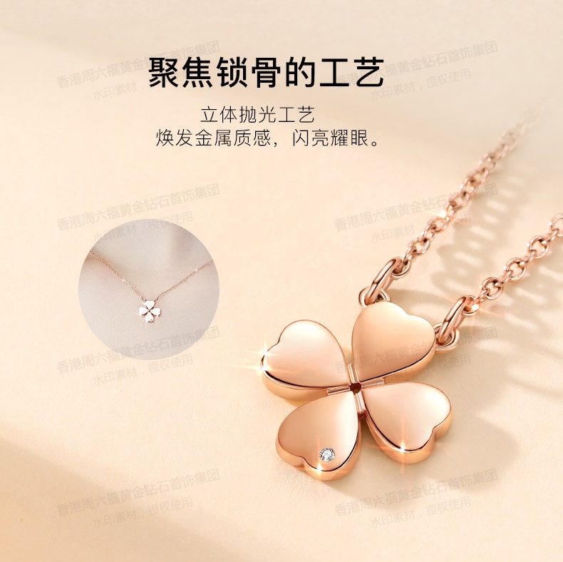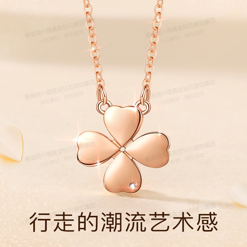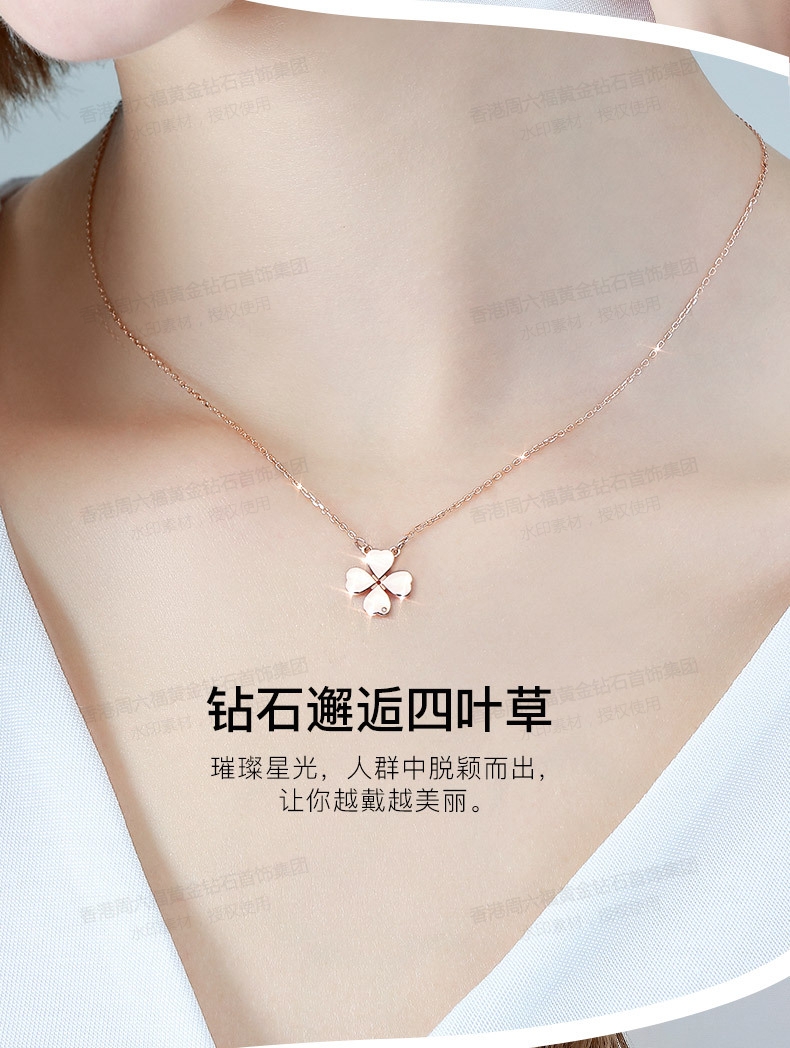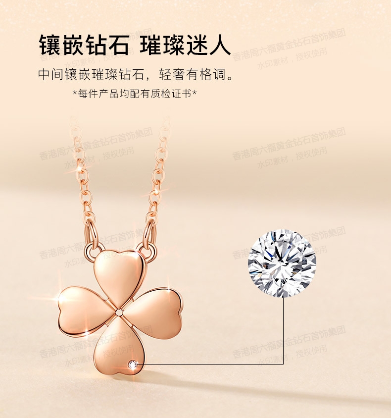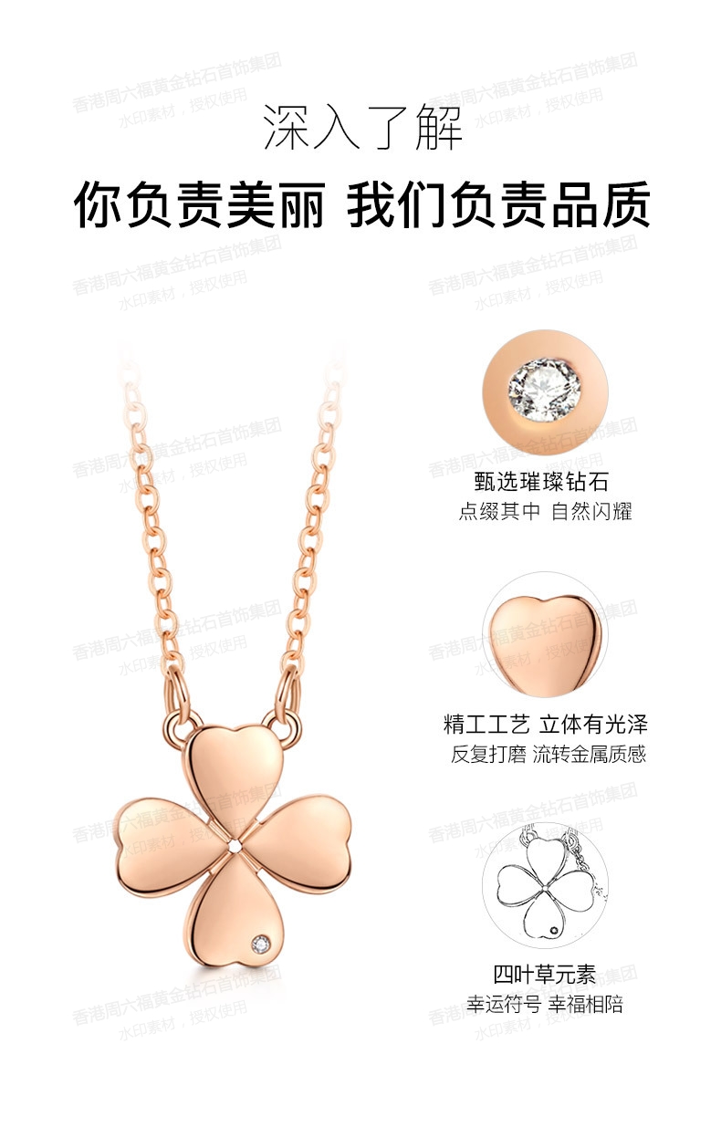 商品名称:香港周六福天然南非真钻项链-四叶草(长条) 净重约2克