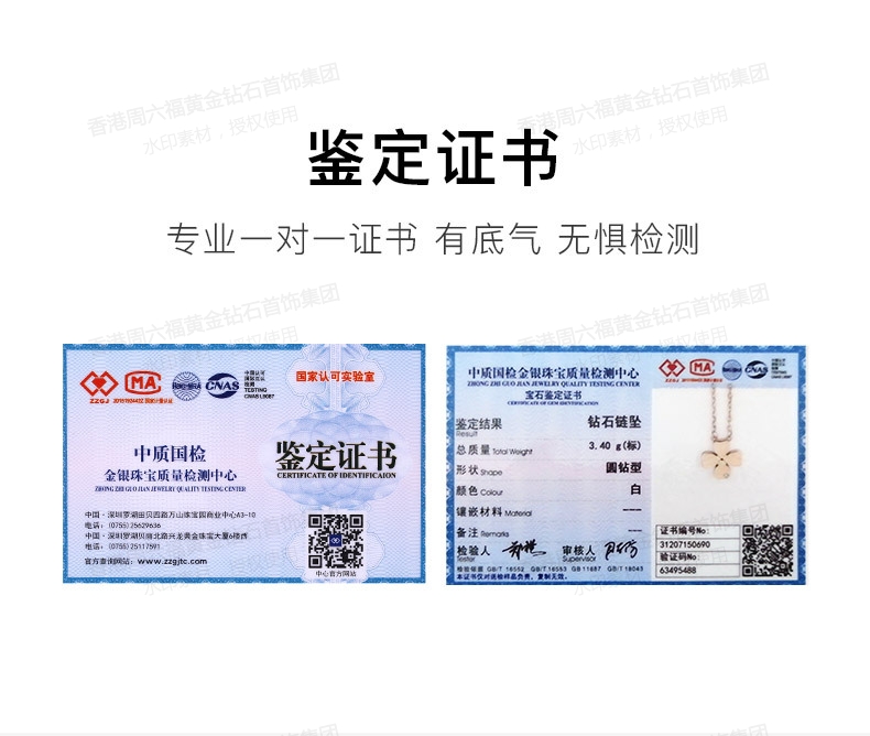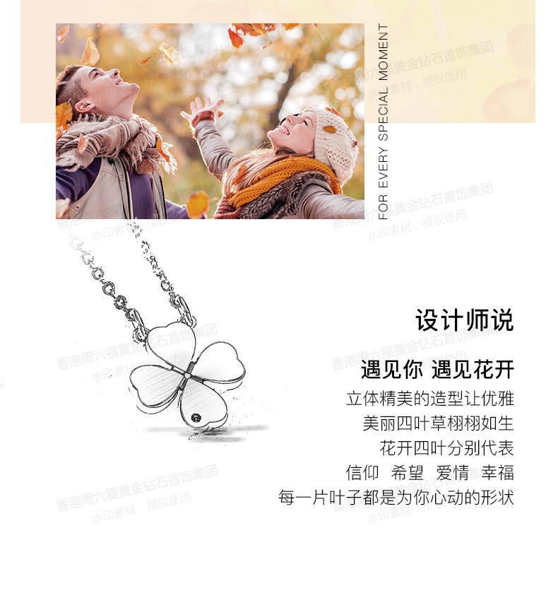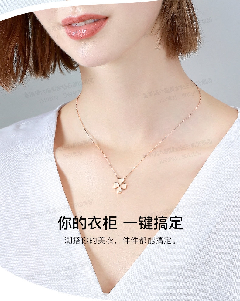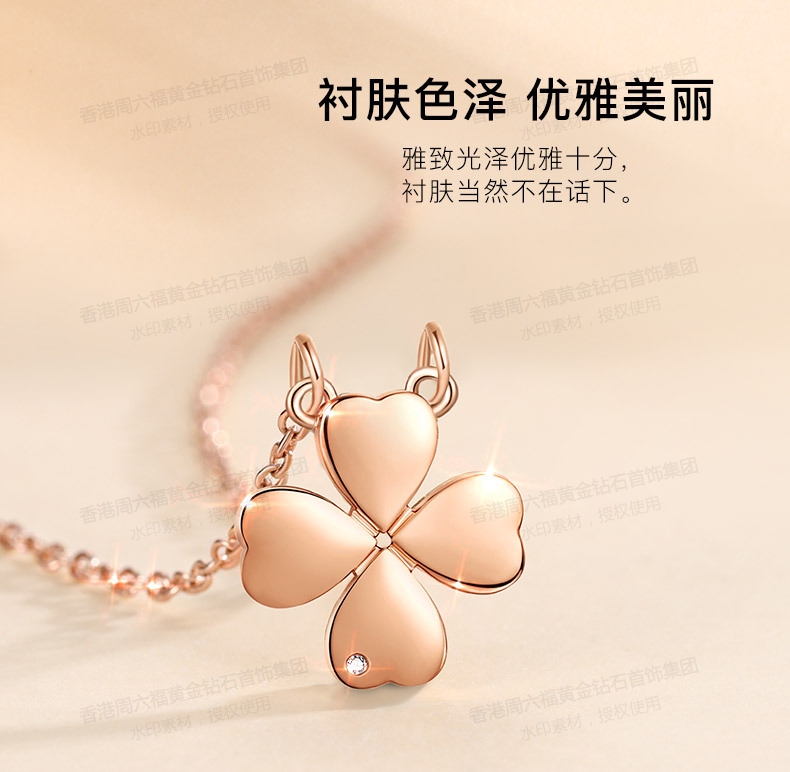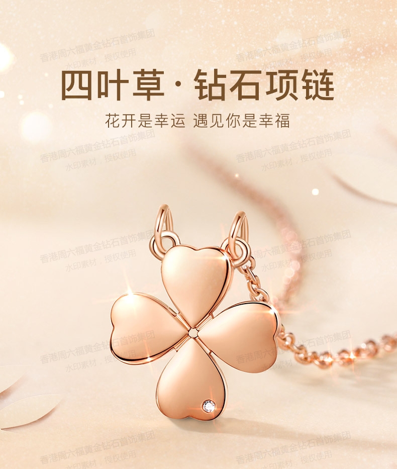 商品名称:香港周六福天然南非真钻项链-四叶草(长条) 净重约2克