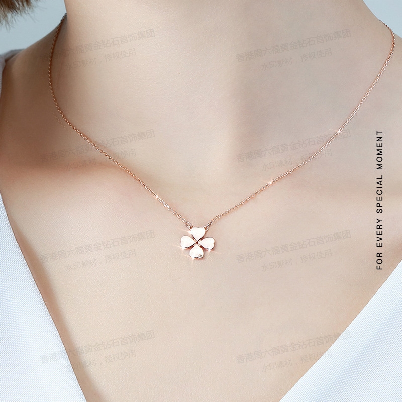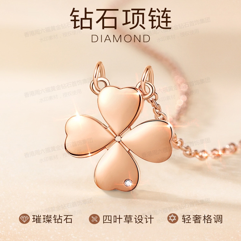 香港周六福天然南非真钻项链-四叶草(长条) 净重约2克