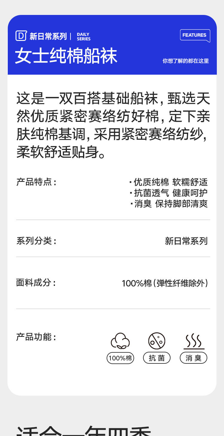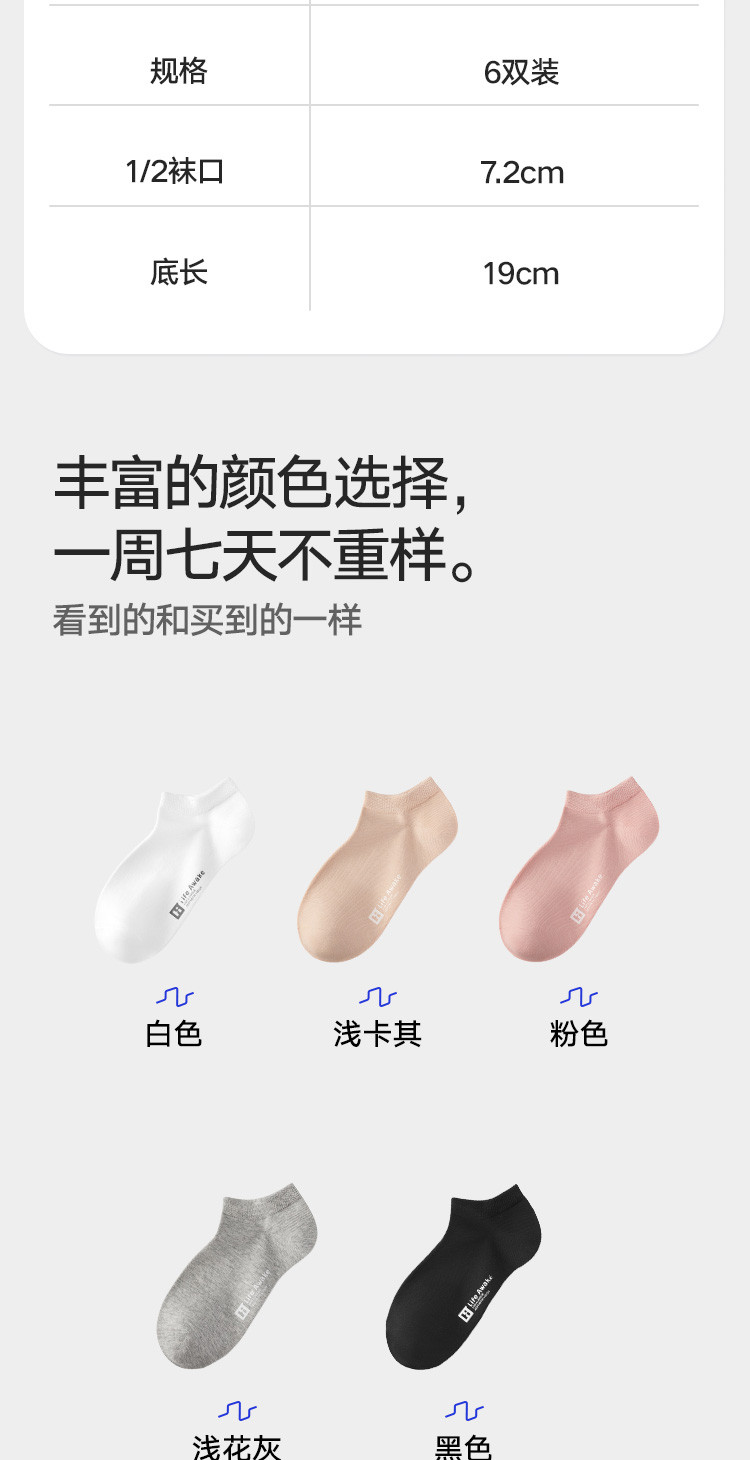 商品名称:【100%棉 5A级抑菌】6双装袜子女透气防臭罗纹短筒袜子女 217690
