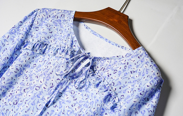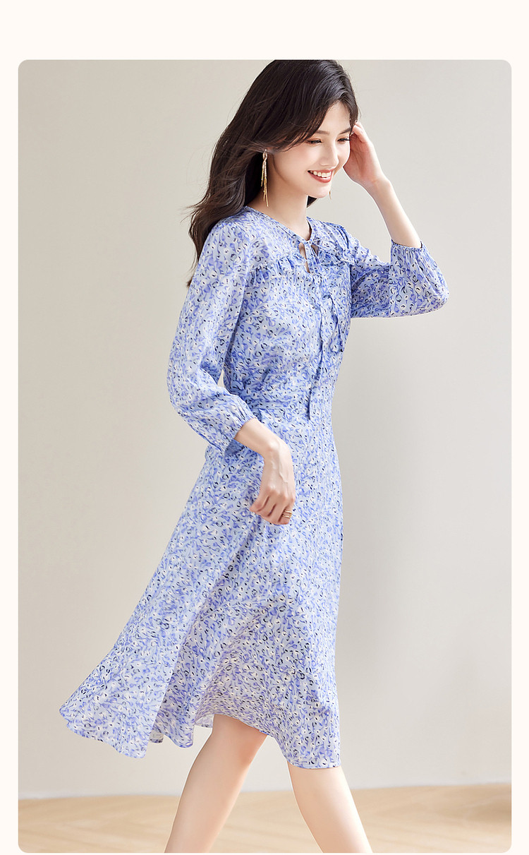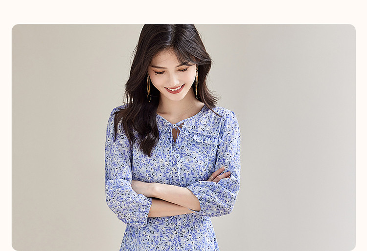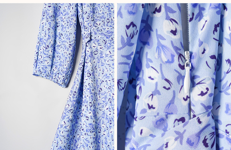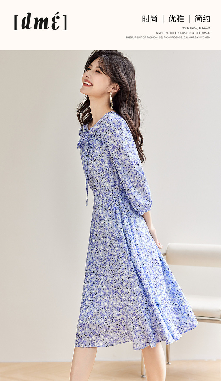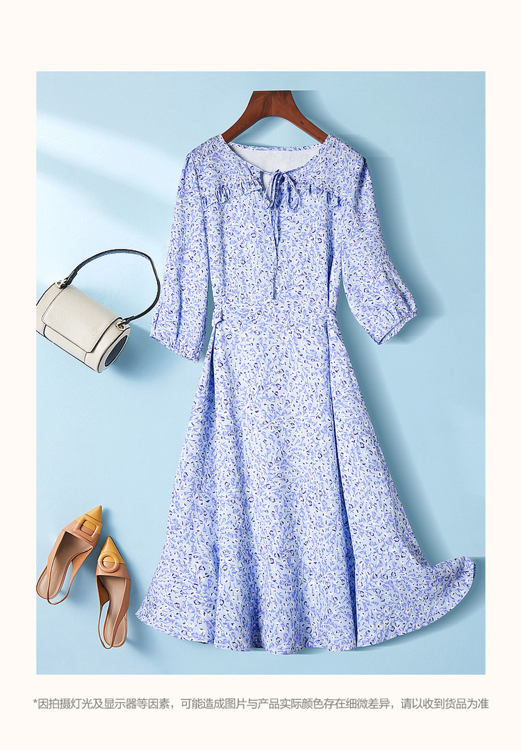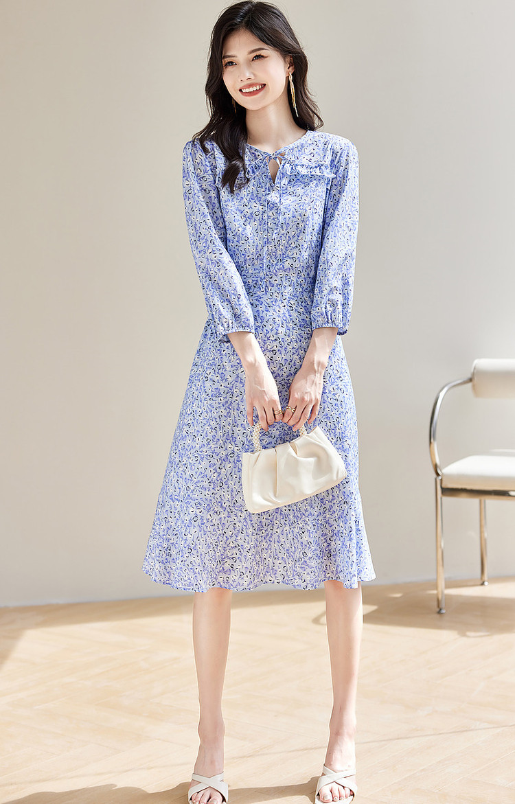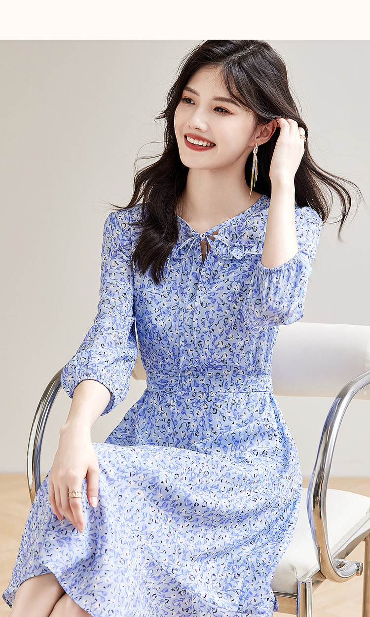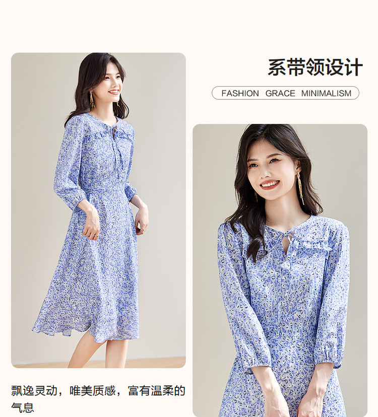 商品名称:【南法仙女裙】秋系带领荷叶边印花九分袖连衣裙女中长款 408257