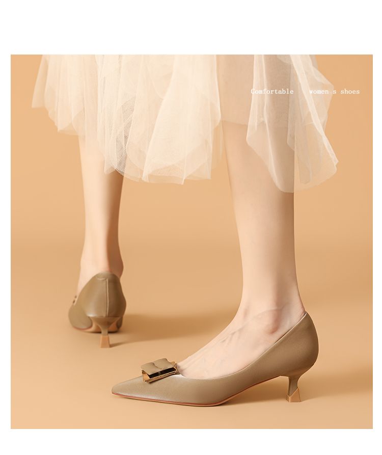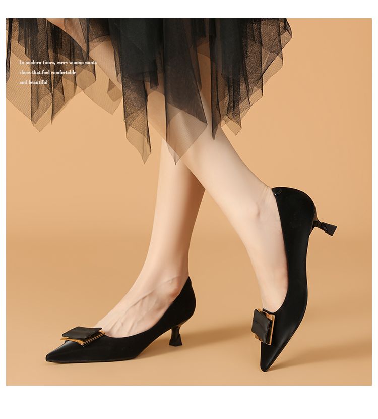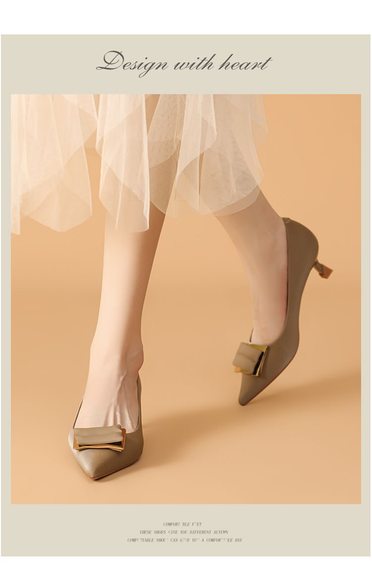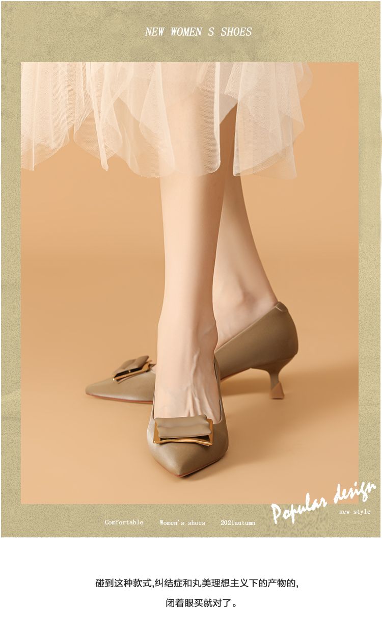 夏季中空高跟鞋细跟女单鞋尖头小香风时装鞋女通勤鞋简约时尚 914007