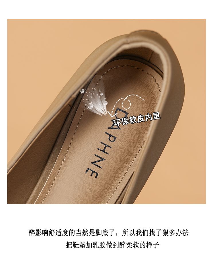 春时尚简约纯色圆头百搭通勤面包乐福鞋女单鞋 444737