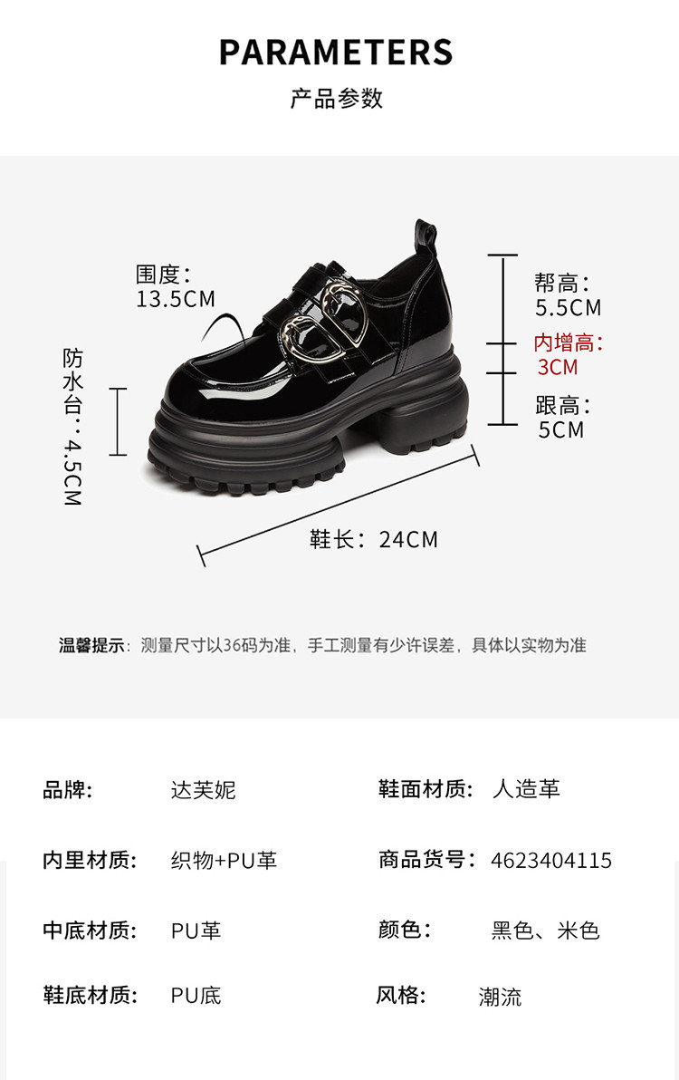 商品名称:【爱心饰扣】内增高厚底乐福鞋单鞋时尚气质女通勤鞋JK制服鞋 433623