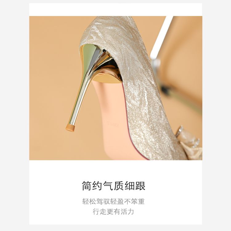 商品名称:夏季气质女单鞋时尚婚鞋高跟鞋潮流时装鞋蝴蝶结搭礼服细高跟鞋 897623