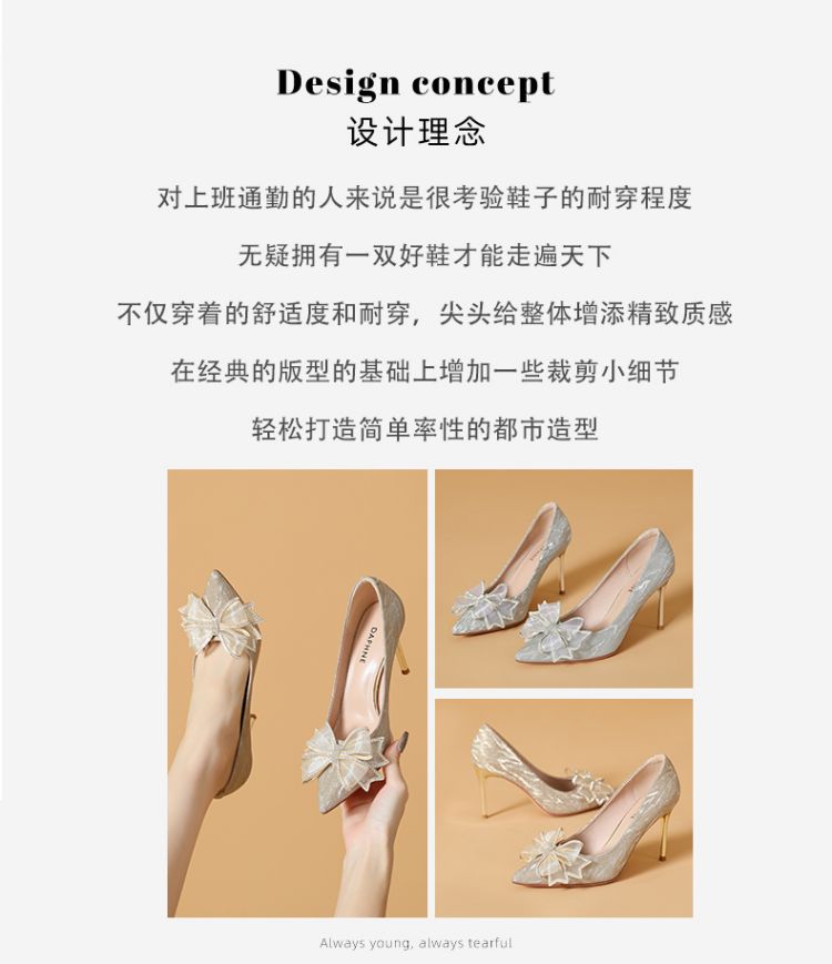 夏季气质女单鞋时尚婚鞋高跟鞋潮流时装鞋蝴蝶结搭礼服细高跟鞋 897623