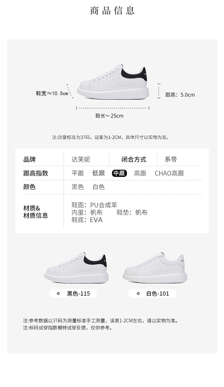 商品名称:小白鞋女春秋款厚底显高经典学院风通勤风舒适百搭休闲运动鞋子女 377434