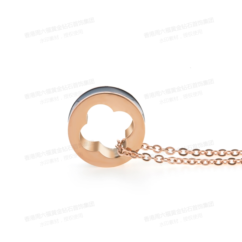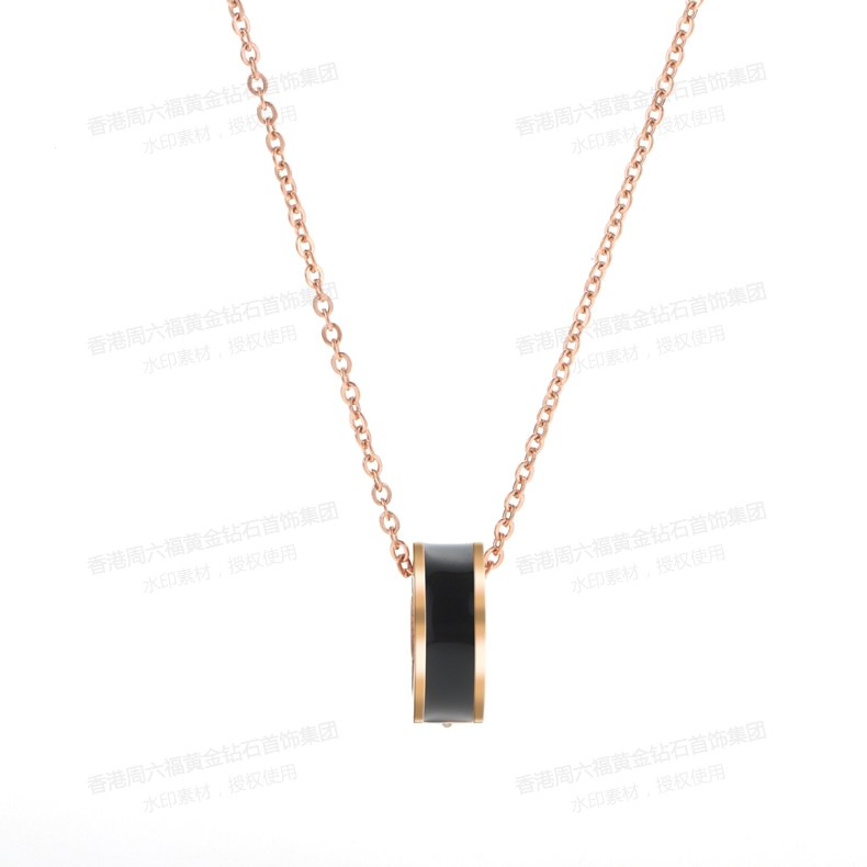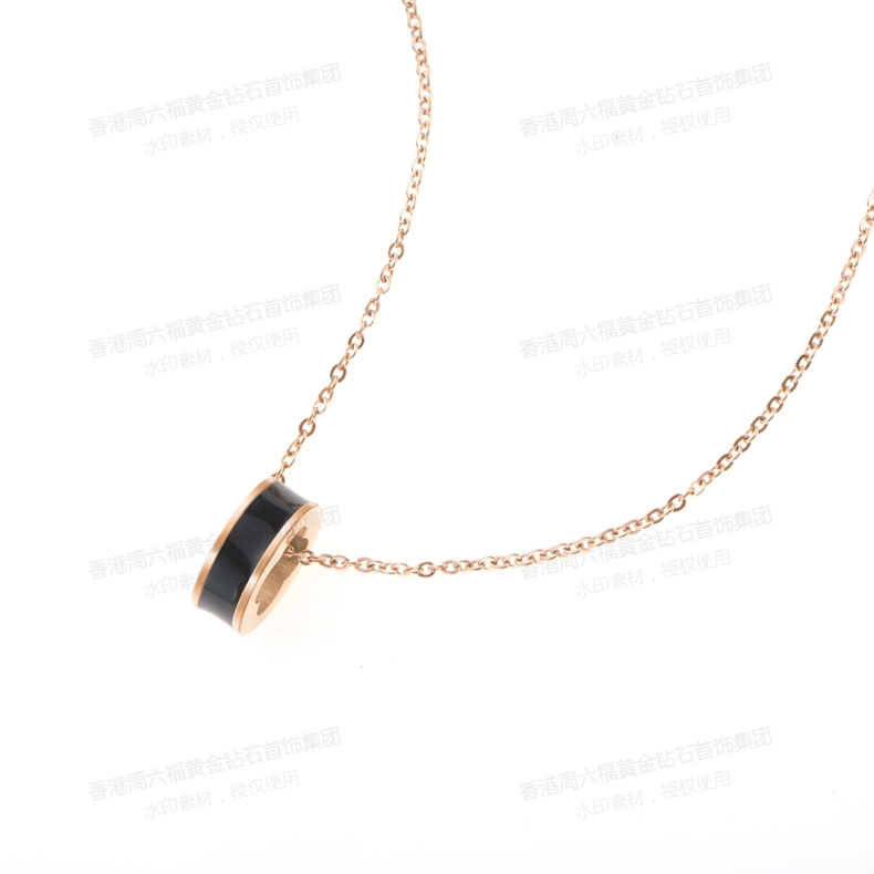 香港周六福天然南非真钻项链-滴胶吊坠黑/白 净重约2克