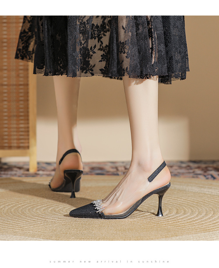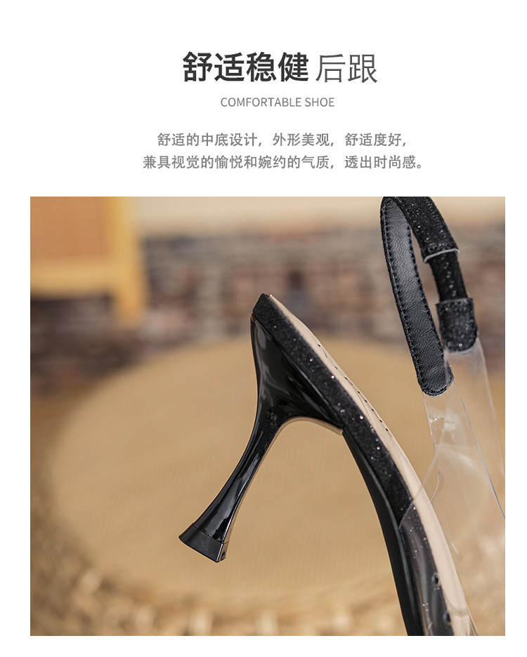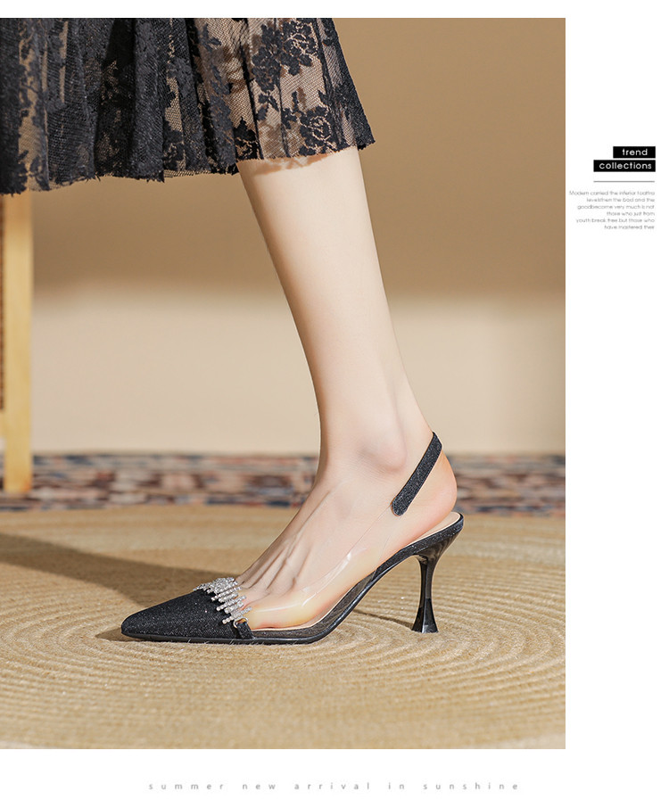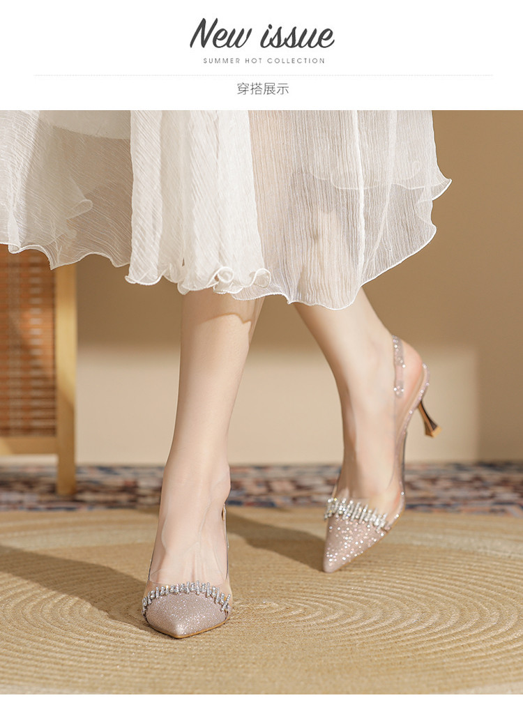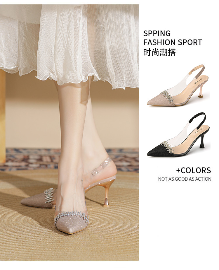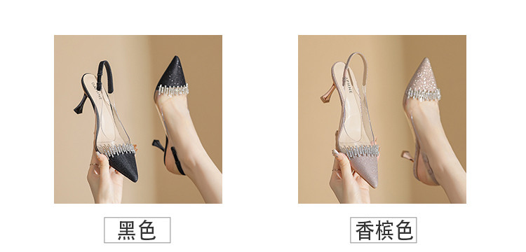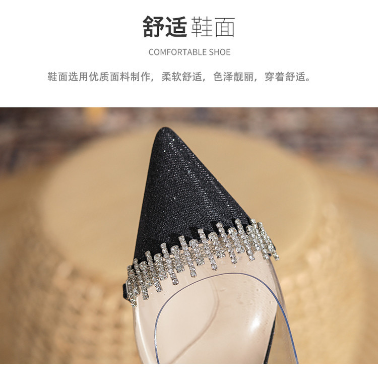 商品名称:时尚高跟鞋女2025新款气质名媛水钻拼接透明尖头后空细跟单鞋 137175