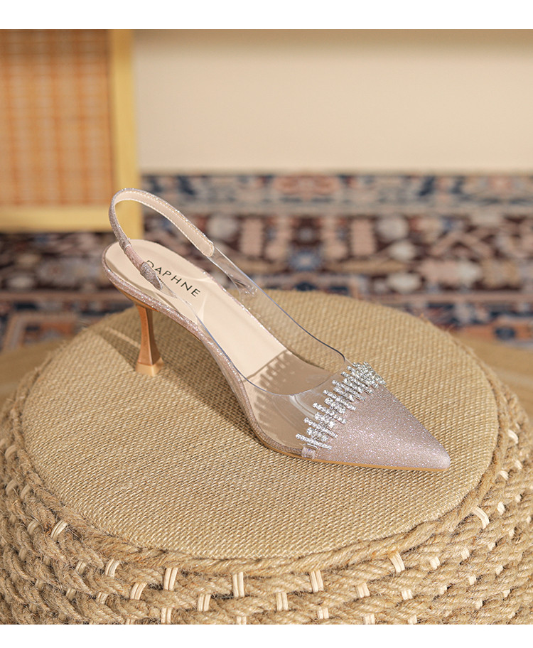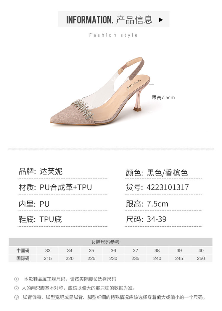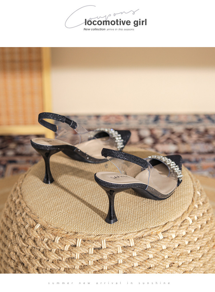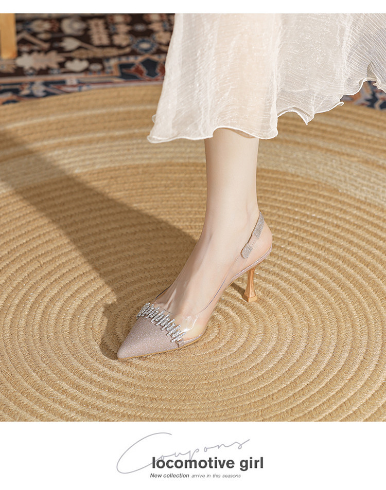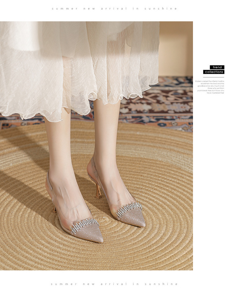 商品名称:时尚高跟鞋女2025新款气质名媛水钻拼接透明尖头后空细跟单鞋 137175