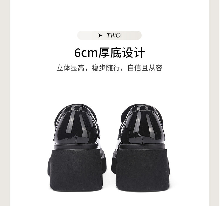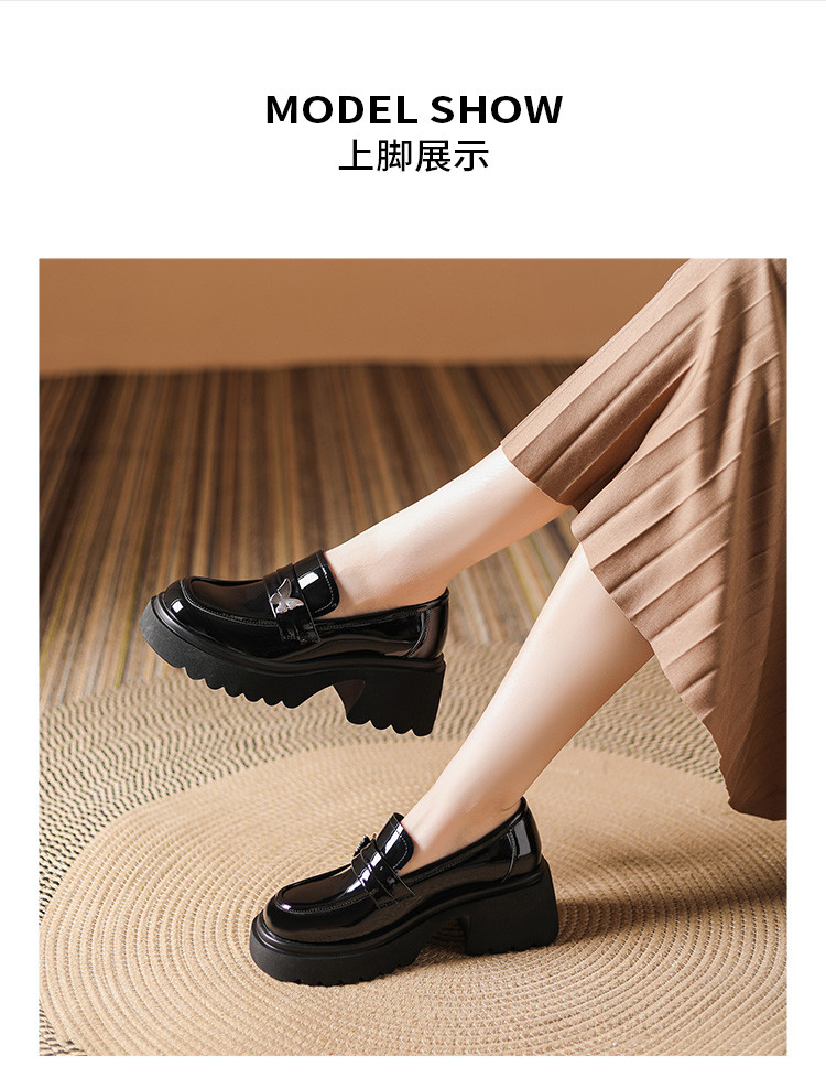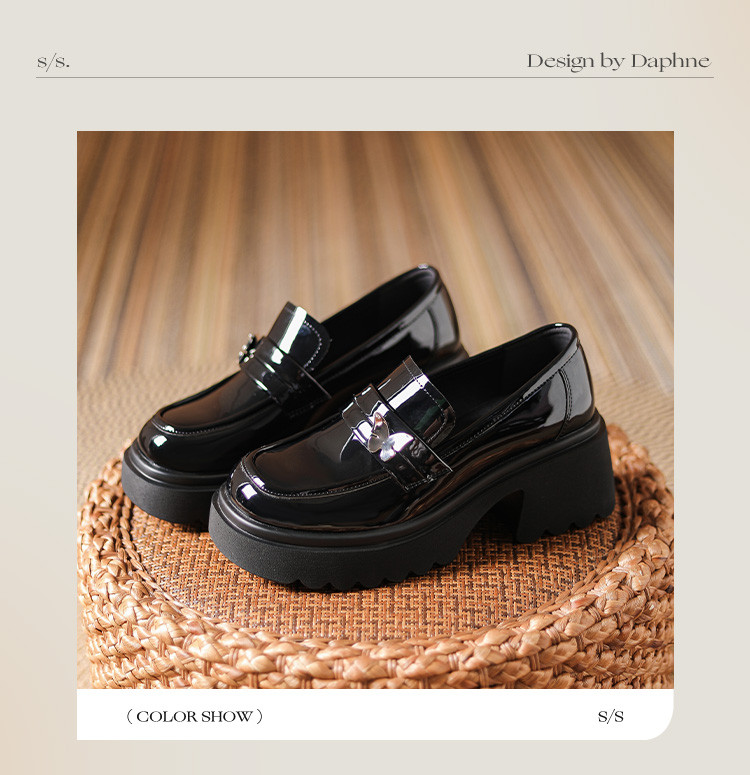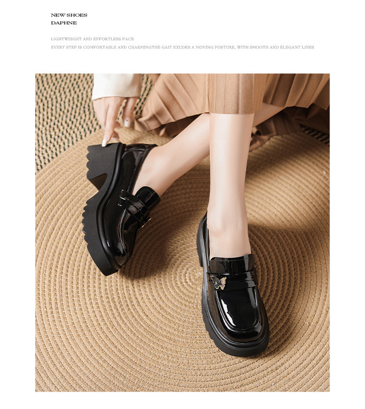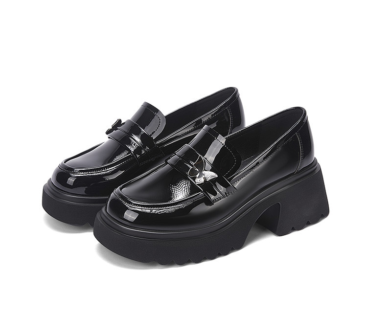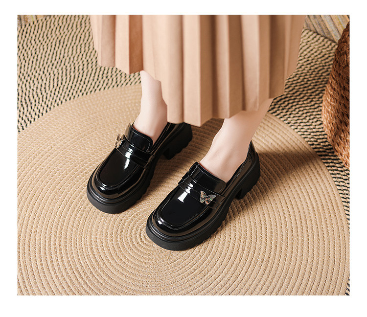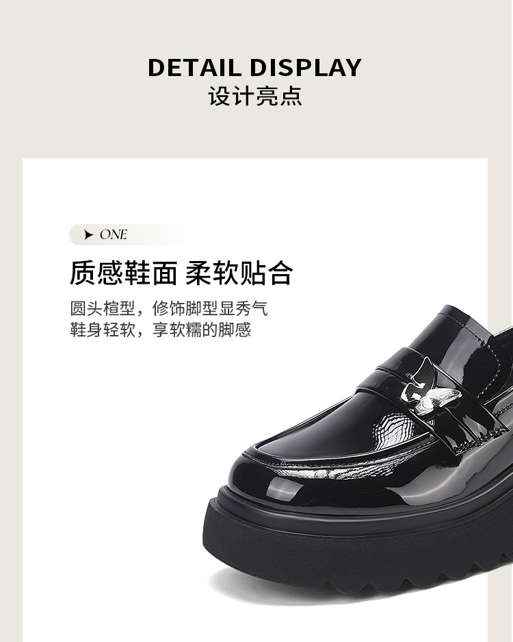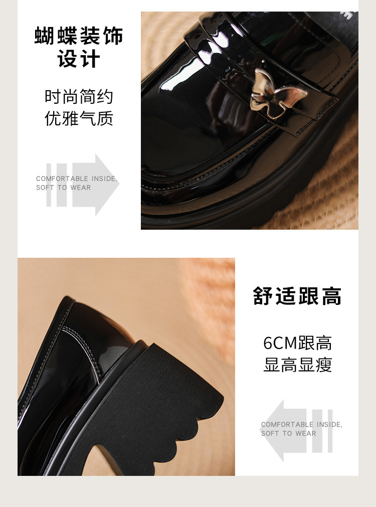 商品名称:黑色百搭厚底乐福鞋女春秋小蝴蝶女鞋子英伦风粗跟增高女单鞋 993306